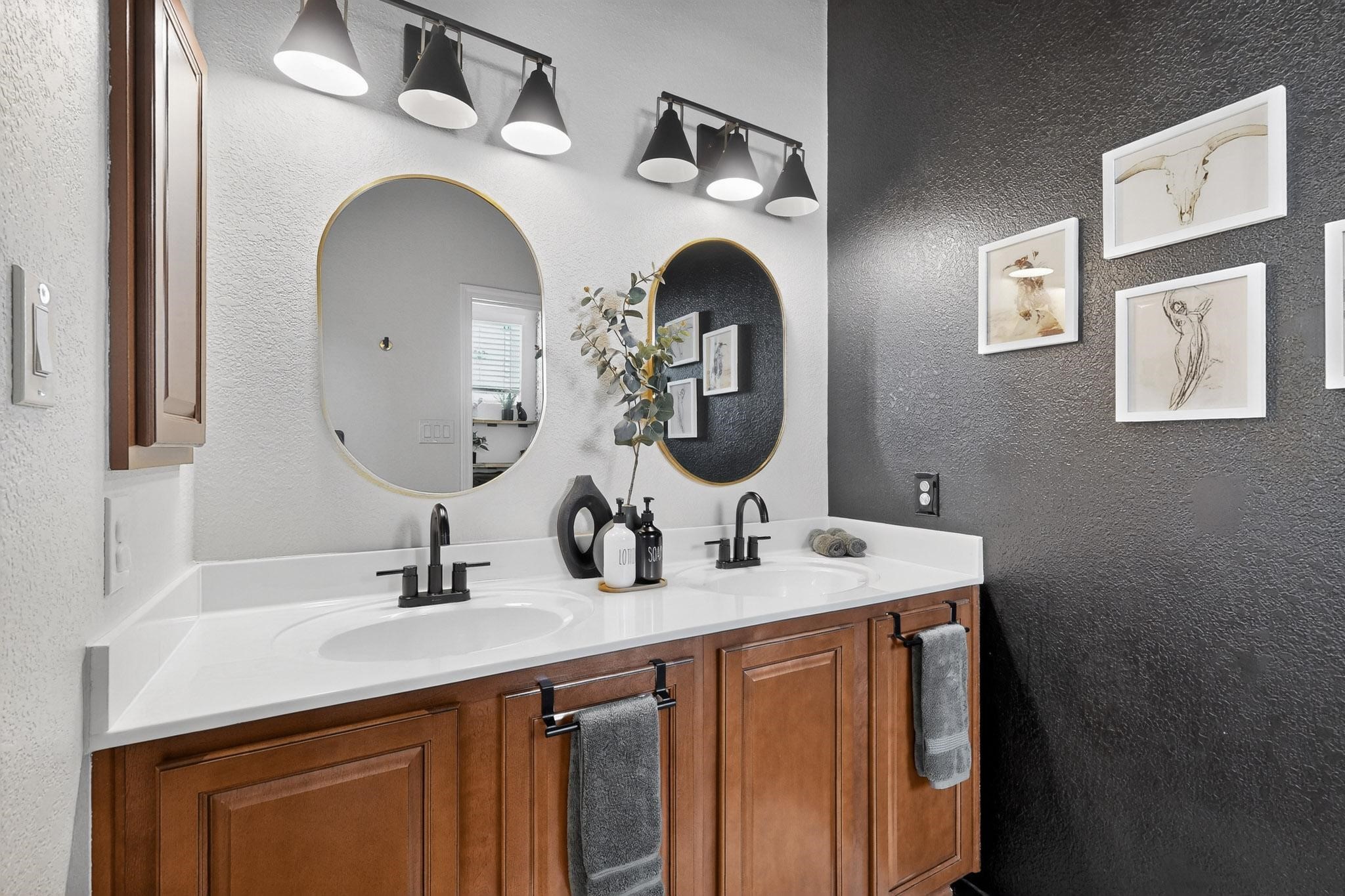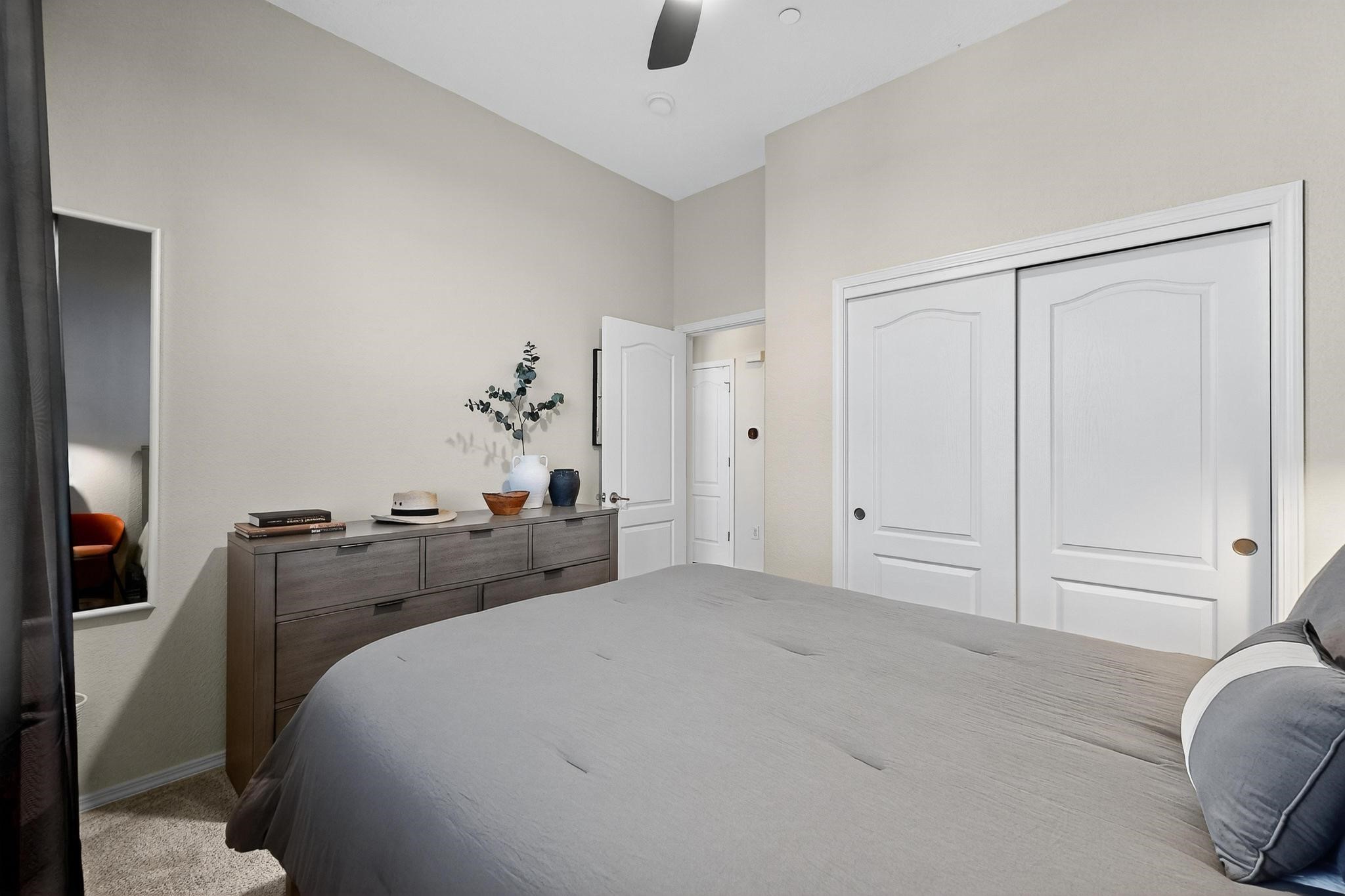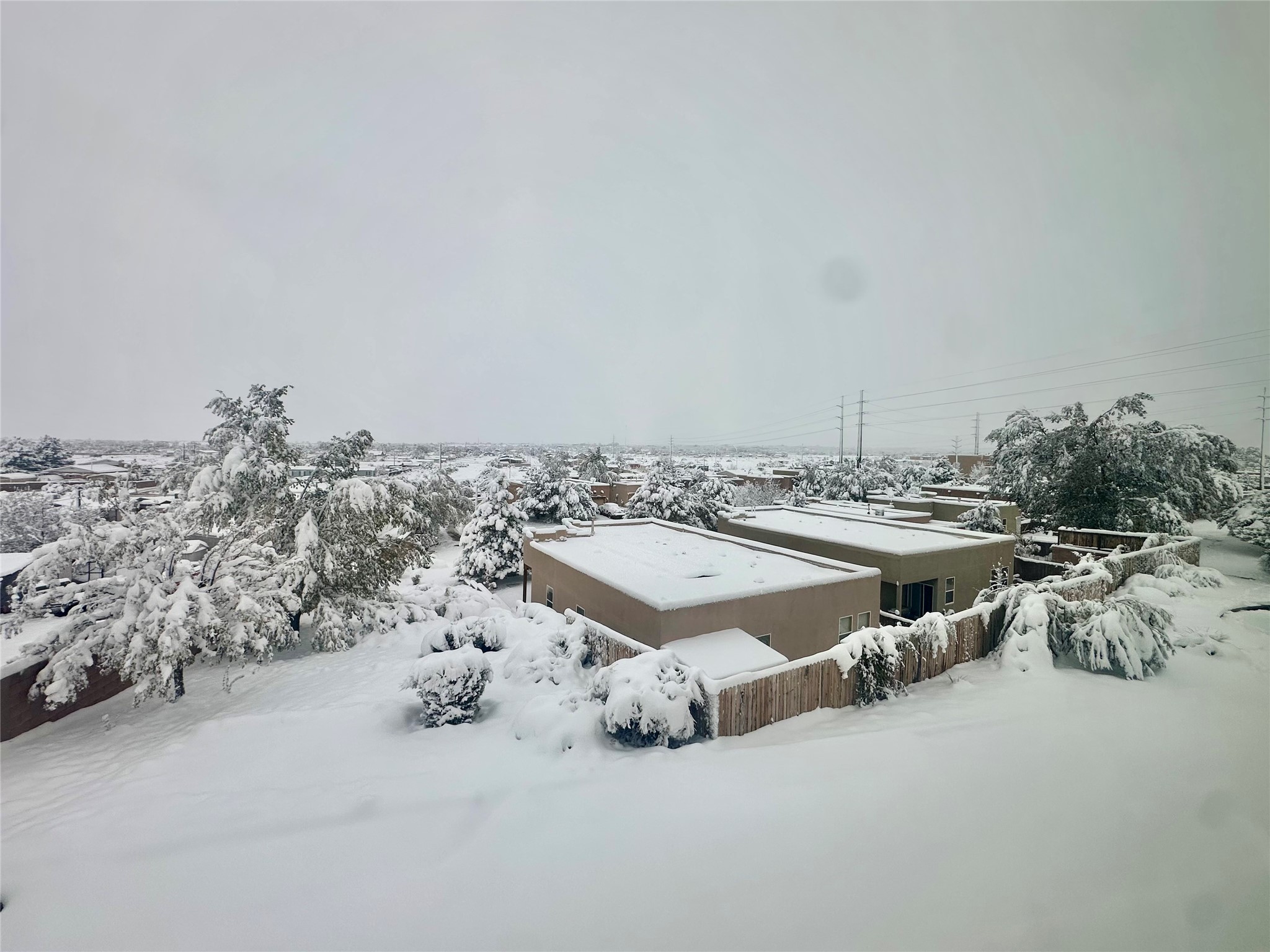 Welcome to this contemporary Southwest-inspired home. This home features modern updates, smart features, and mountain views. It includes a 1-car garage, 10-foot ceilings, updated fixtures, fresh paint, and tile accents throughout the main living, kitchen, and dining areas, with an open floor plan. Engineered vinyl plank flooring extends throughout the main areas. The kitchen has a generous island, pendant lighting, and stainless steel appliances. Both bedrooms feature plush carpet, and the primary bedroom includes a well-organized closet system, with additional shelving in the second bathroom. A dedicated laundry room includes an LG WiFi-enabled washer and dryer. Smart home features include a Yale front door lock, MyQ garage system, Ring doorbell, and Ecobee thermostat. Situated on a quiet cul-de-sac, the elevated corner lot provides views of the Jemez Mountains, sunsets, seasonal snowfall, and summer monsoons. The home receives abundant natural light and airflow throughout. This home is being sold fully furnished, including kitchen, bathroom, and bedroom essentials, along with coordinated furniture and dcor--ready for immediate occupancy (including quality kitchen items such as Calphalon cookware and knives, and OXO utensils). The home is located near a local park, shopping, and dining options, with access to I-25 and US-599.