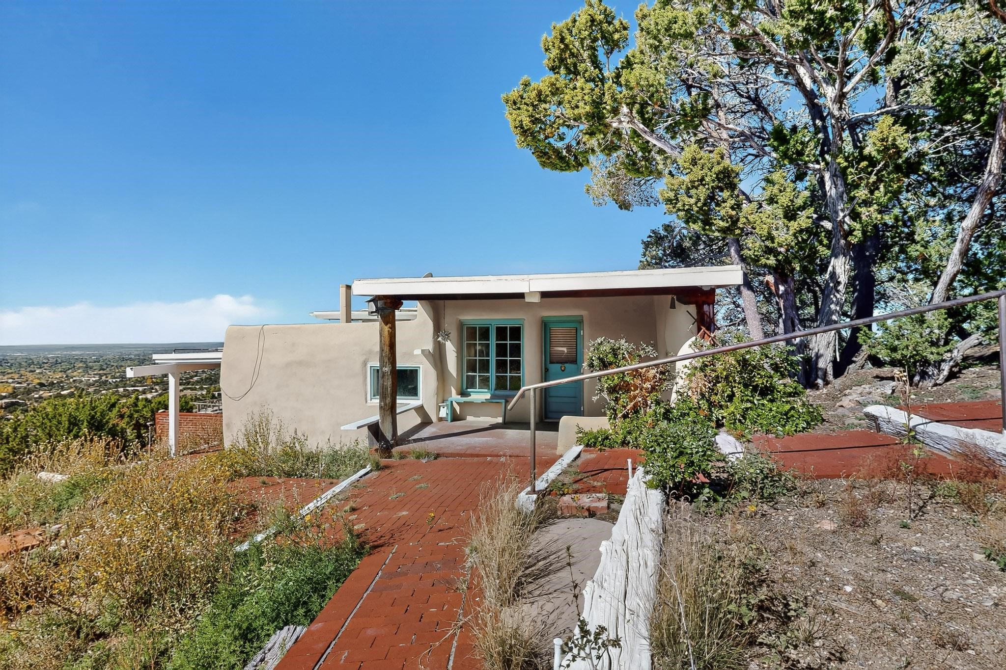 Just minutes from the Historic Plaza, this original 1930s rock home is nestled in the Santa Fe foothills, offering panoramic sunset and sparkling city-light views considered among the best in Santa Fe. The main residence features 2 bedrooms and 2 bathrooms, complemented by an attached 1-bedroom, 1-bath apartment/greenhouse, ideal for guests, rental, or studio space. Set on 1.2 acres, the property includes an oversized deck perfect for entertaining or simply enjoying the spectacular scenery. With its prime location and unparalleled views, this home is ready for a new owner to transform it into a truly remarkable Santa Fe retreat.