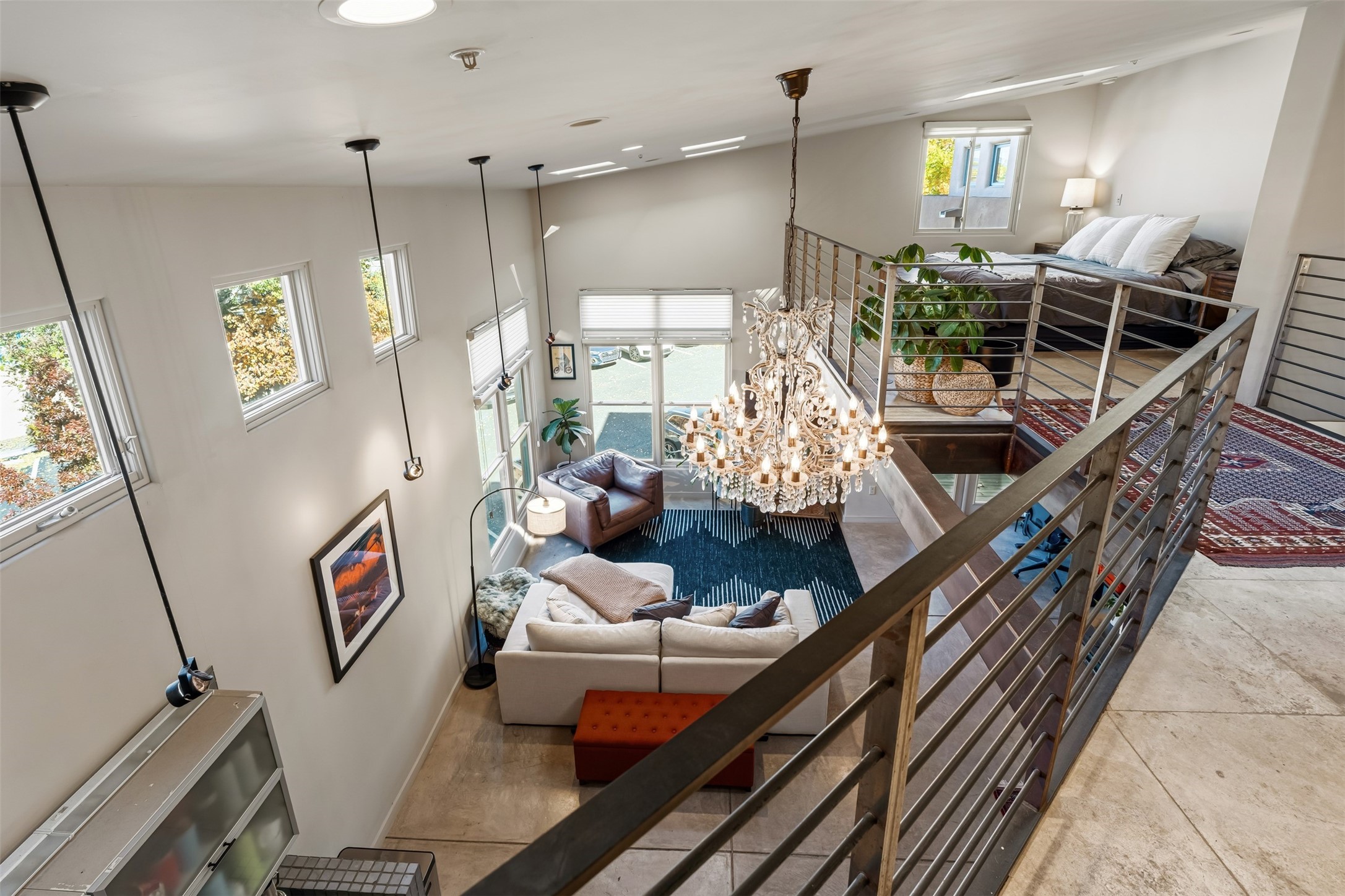 Contemporary live/work condo located in the highly sought-after South Capitol neighborhood--just a short walk to the Santa Fe Plaza and less than a mile from the Railyard District. Enjoy easy access to Whole Foods, Trader Joe's, Natural Grocers, popular restaurants, and a variety of local amenities. This two-level, second-floor residence offers 1 bedroom and 2 baths (1 full, 1 half) and is quietly tucked away at the back of the complex for added privacy. Expansive windows frame views of the Sangre de Cristo Mountains, while clerestory windows and soaring 17' ceilings fill the space with natural light.The open floor plan features a modern kitchen, sleek concrete floors with in-floor radiant heat, and new evaporative cooler. Step out from the living area onto a spacious deck to enjoy outdoor living and mountain views. Upstairs, the lofted bedroom offers generous closet space, a bath with a steam shower, and stackable laundry. Don't miss this unique opportunity to own a stylish and light-filled home in one of Santa Fe's most desirable neighborhoods.