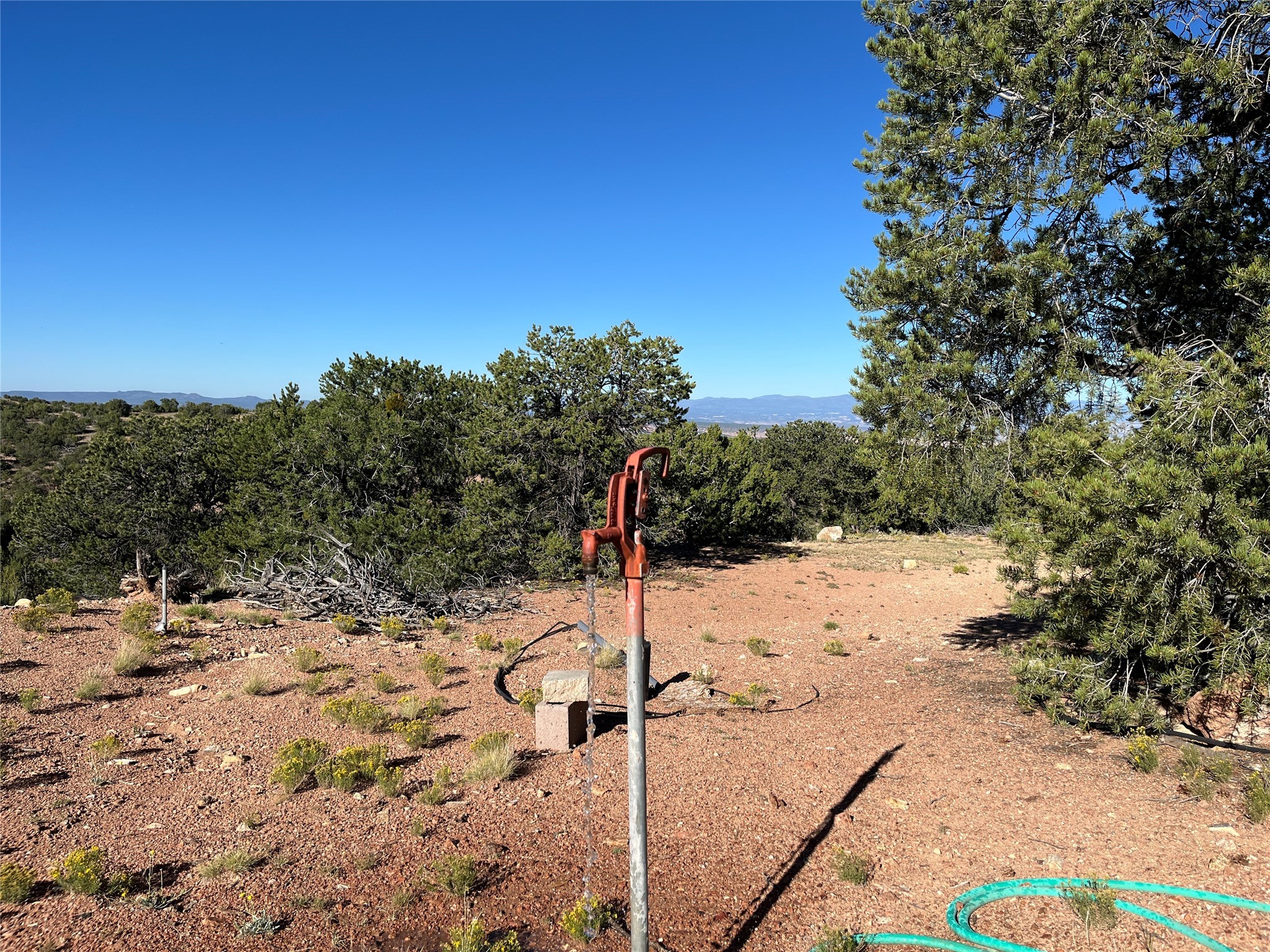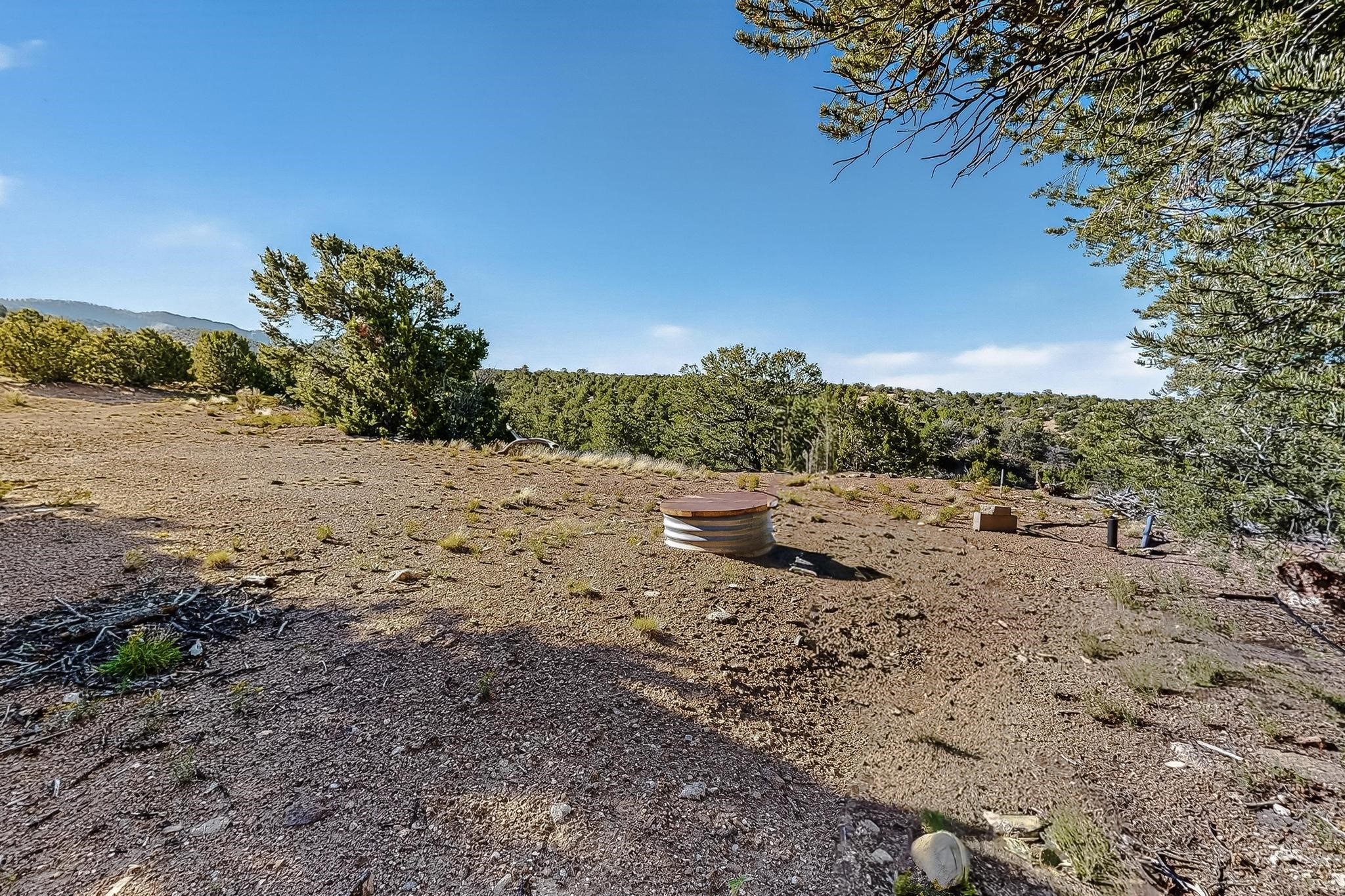 This 4+ acre lot perched high in the Sangre De Cristo foothills provides wonderful mountain and western views in all directions and is only ~ 12 1/2 paved miles to the Santa Fe Plaza. With many improvements including a private well that produced 30 gallons per minute when drilled along with usable power, a propane tank, and septic system the only thing missing is your imagination and plans. There is also a large metal container that will convey for secure storage to help while develops this rare property. The Rio En Medio trailhead is only a short walk from this property which leads to waterfalls inside the Santa Fe National Forest. A must see for the explorer in you!