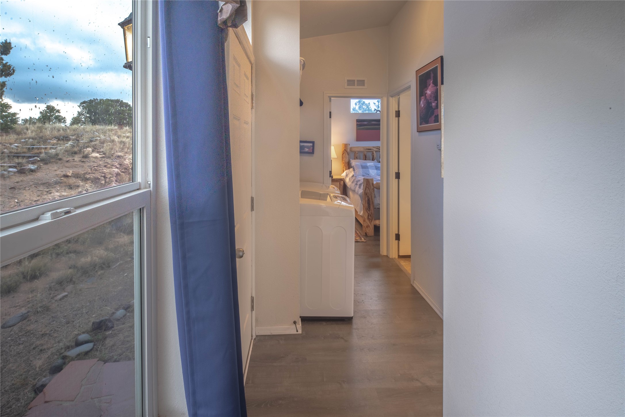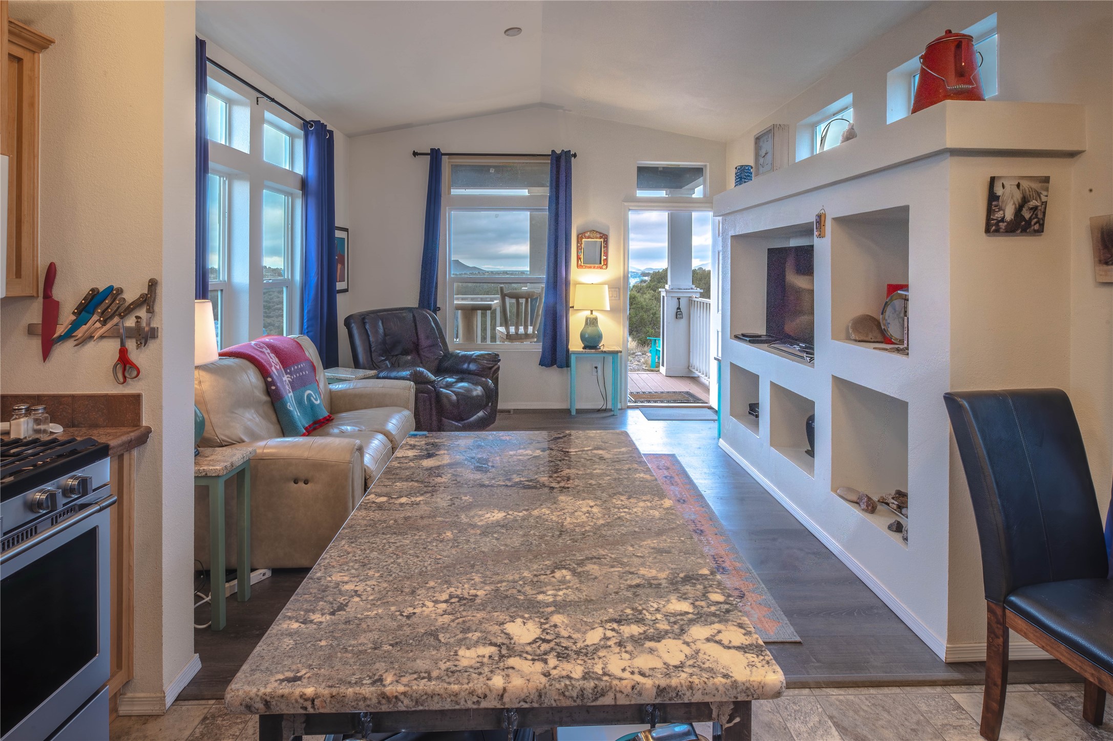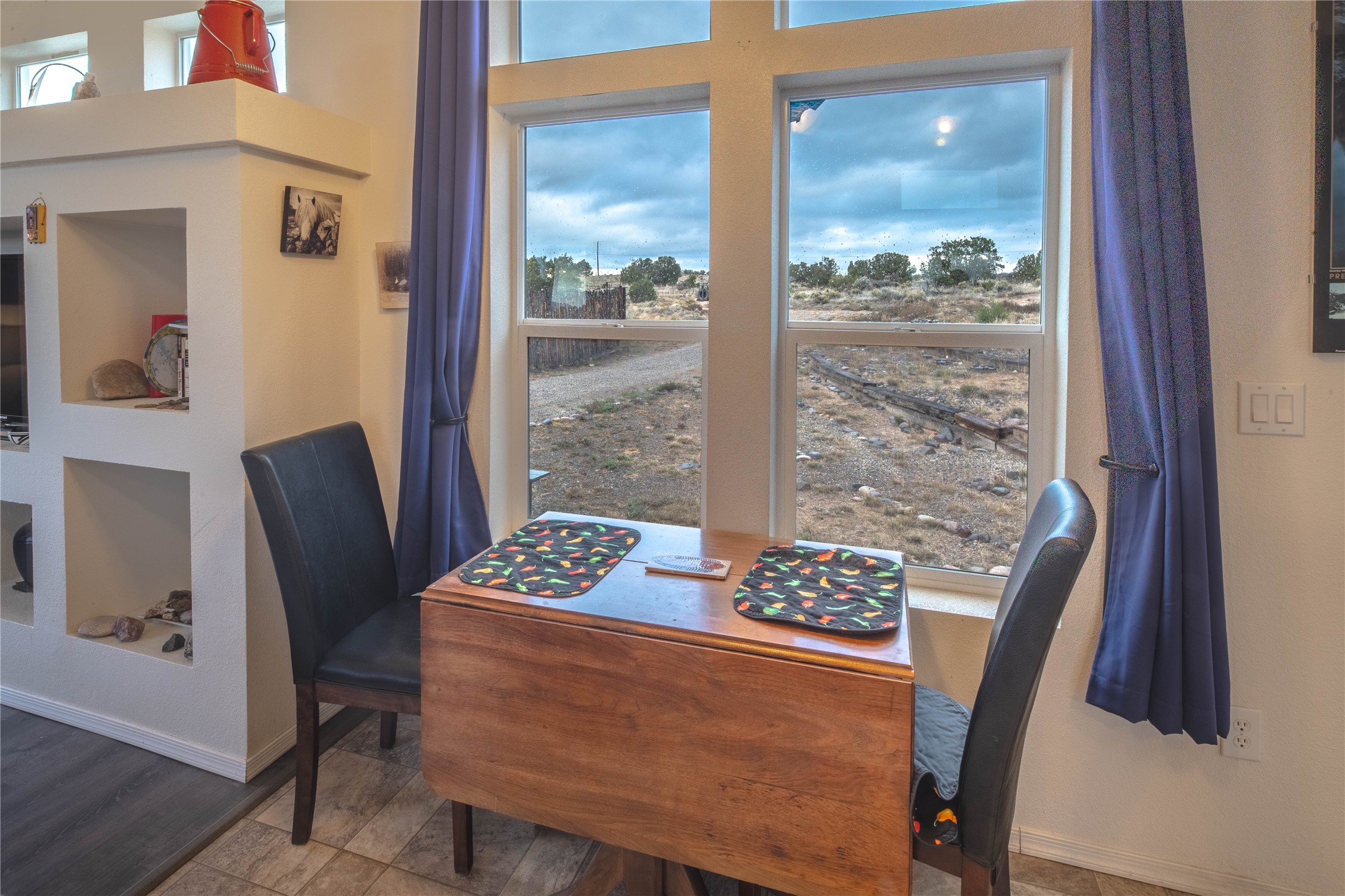 Welcome to this serene 28-acre property--ready for your horses, long walks with your dogs, and quiet mornings with coffee as you gaze at the Mesa Vibora, Cerro Azul, Black Mesa and iconic Pedernal. The property features a charming and cozy home of approximately 720 square feet with a welcoming front deck and thoughtful updates throughout. Interior enhancements include 2x6 construction, added insulation for climate efficiency, new lajinate flooring, recently replaced appliances, and a beautiful new center island. With both forced air heat and cooling, you'll enjoy comfort in every season. The home rests on a permanent foundation with a crawl space for easy access and peace of mind. Affectionately known as The Blue House, this successful Airbnb offers flexibility as a cozy primary residence, income property, or transitional home while you build your dream retreat on the surrounding acreage. The 28 acres have already been surveyed and thoughtfully divided into three plots: Plot 1: Includes the home and a 12x30 workshop with electricity (wired for a welder) and a large roll-up door--perfect for projects, storage, or creative work while taking in expansive mountain views.The workshop has been insulated and professionally wired. Plots 2 & 3: The first is 10 acres and the second consists of 8 acres, with electrical boxes. Check with Kit Carson for final electrical hook-up. Each parcel can accommodate two homes, offering the potential to create a small development, family compound, or multi-home retreat. Modular homes allowed with some protective covenants in place. Additional property features include three RV spaces--two with electricity and one with full hookups including water, sewer and wifi as well as 30 amp electricity--ideal for guests, rental opportunities, or future expansion. Water capacity is plentiful with two 1,600-gallon storage tanks, reducing the need for frequent water deliveries. Stay connected with Kit Carson high-speed fiber optic internet and enjoy reliable comfort year-round with a large propane tank serving the home. An established, recorded recreational easement ( hiking and horseback--no vehicles) through the adjacent 40-acre tract leads directly into the Carson National Forest, where you'll find scenic trails perfect for horseback riding, hiking, and peaceful walks with your dogs. The setting is private yet ideally located--just minutes from Ojo Caliente Mineral Springs Resort & Spa for soaking, massages, and fine dining.Private electric gate makes access easy and split rail fenced to keep cows from the house, the property also has six acres fenced for a horse pasture and panels for easy penning. You're also within easy reach of historic Taos, where you can explore the Taos Pueblo, Taos Plaza, and enjoy the area's grocery stores, shops, and medical services--not to mention exceptional dining options for every taste and occasion.The backroad to El Rito and Abiqui offers great views and recreational opportunities plus dining variety in El Rito and Abiqui. Only one hour to board the historic Cumbres and Toltec train!