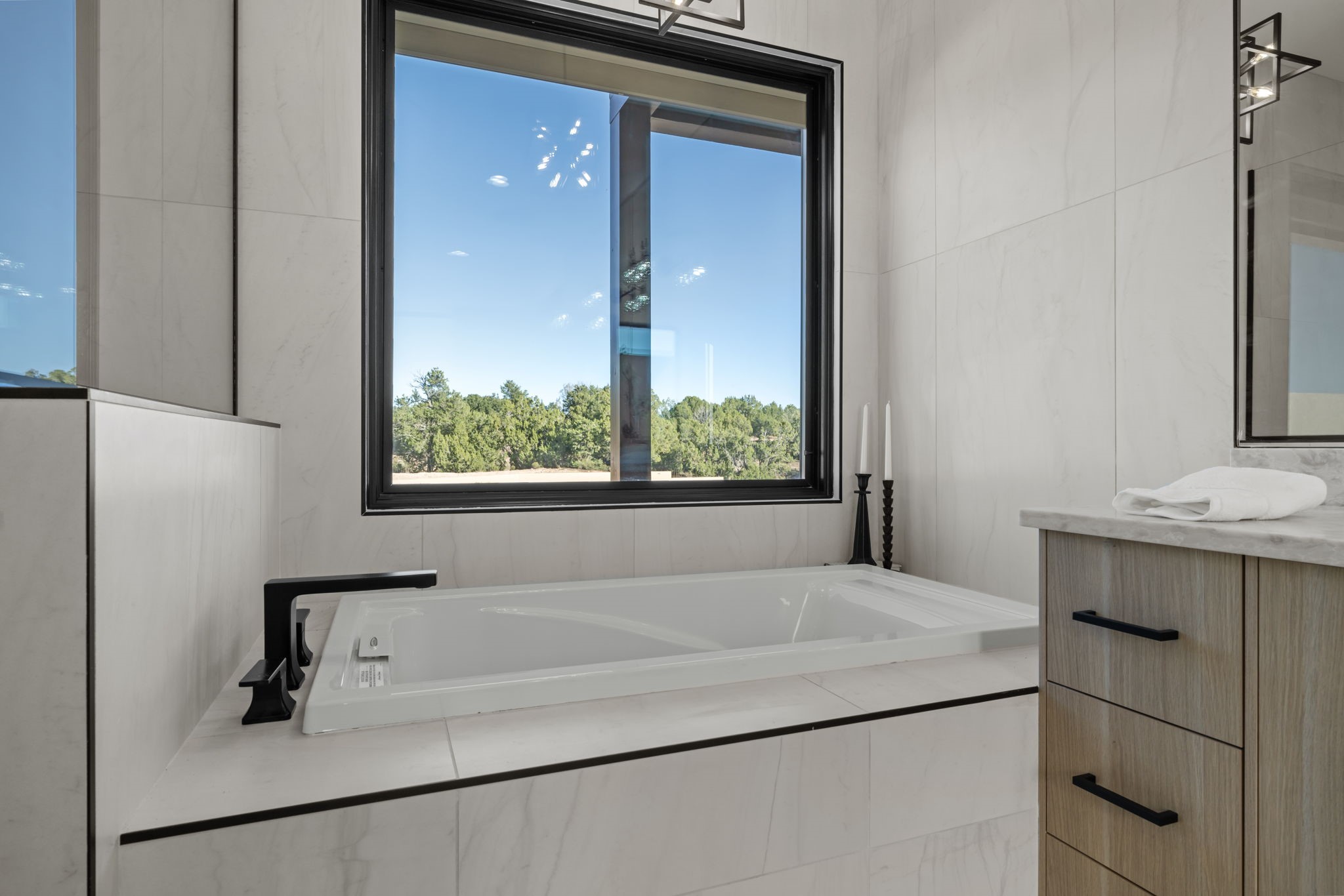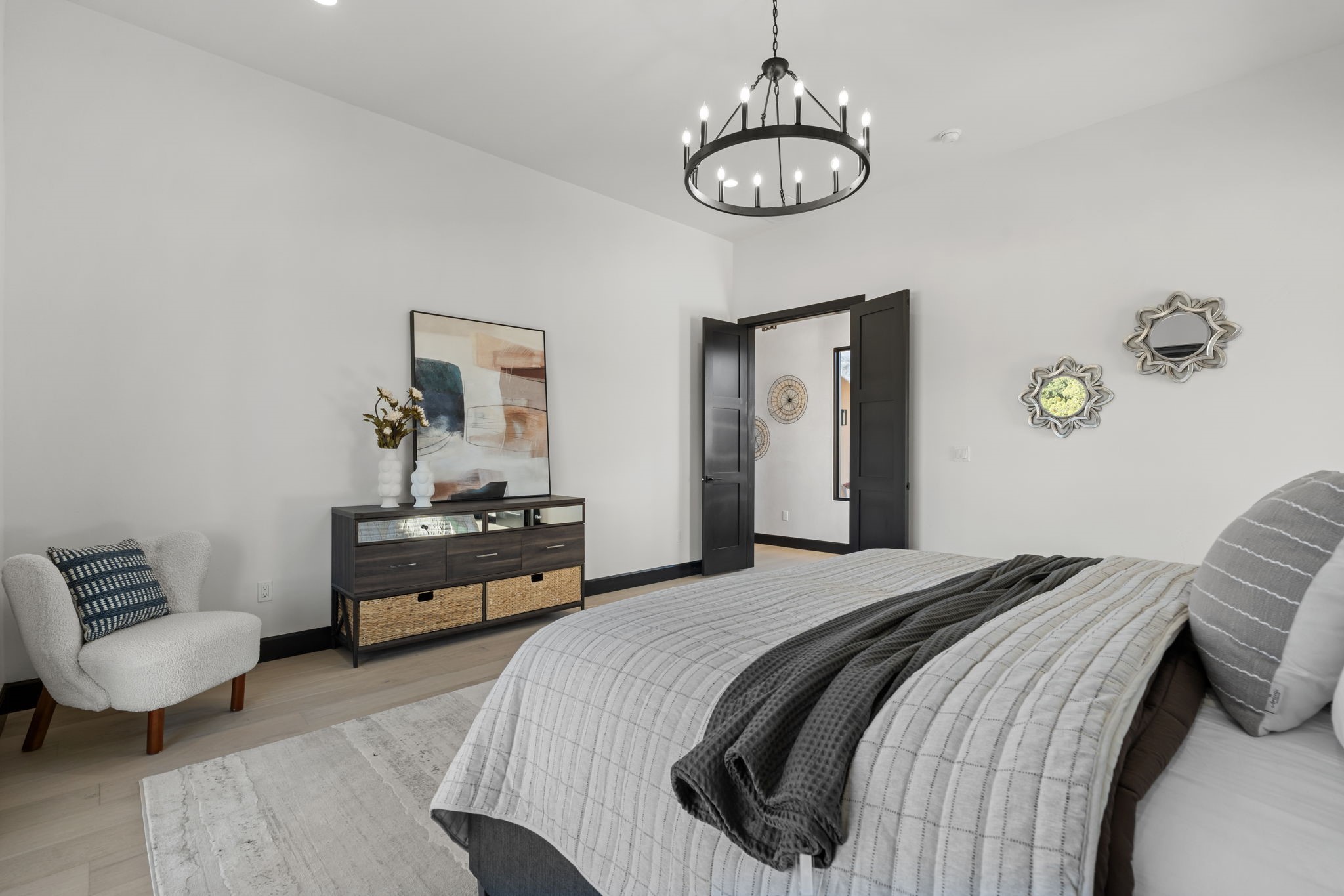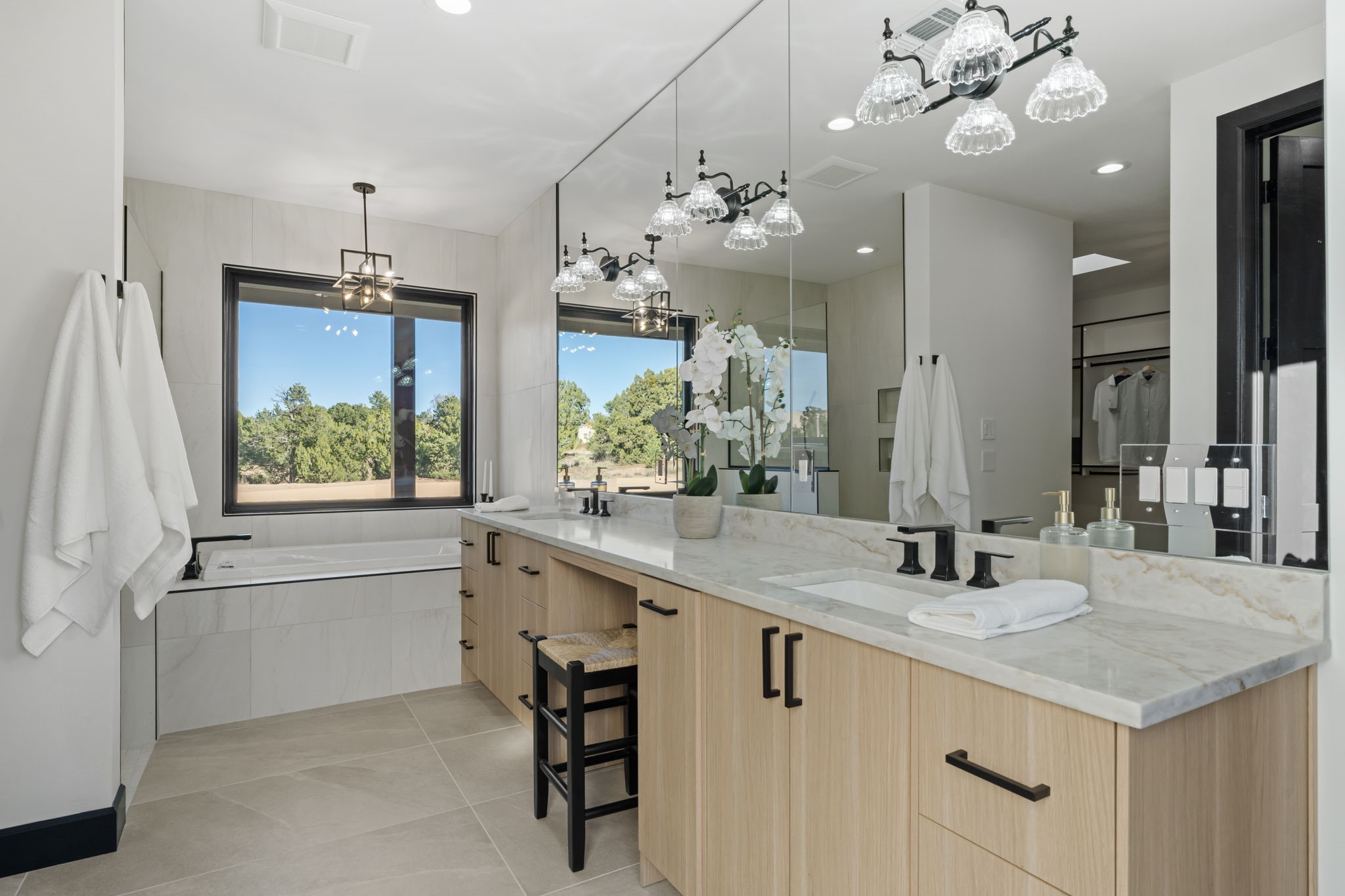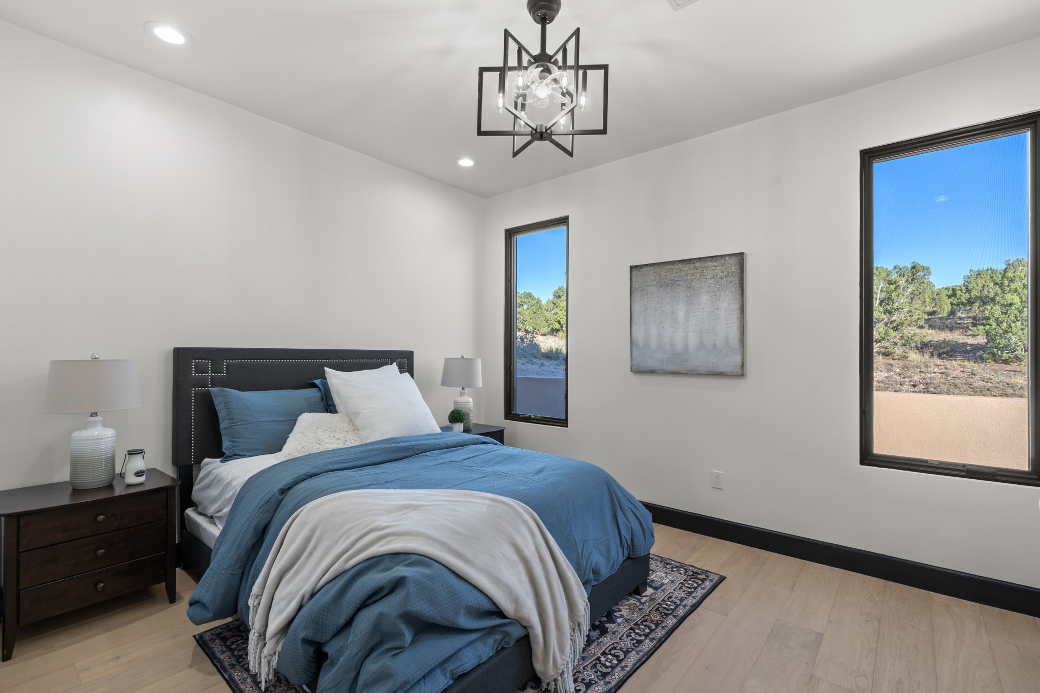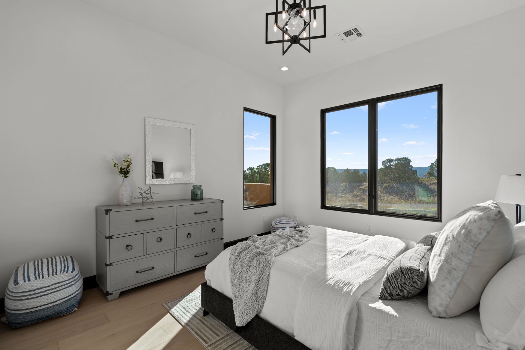 $50,000 SELLERS CREDITS TO BUYER WITH A FULL PRICE OFFER. Nestled in the prestigious Las Campanas community of Santa Fe, this newly built custom estate blends modern architecture with timeless New Mexican charm. Situated on a 1.64-acre homesite overlooking two picturesque golf holes, the home captures breathtaking views of both the fairways and surrounding mountains.Built by Candelaria Homes, one of New Mexico's most respected luxury builders, this residence reflects exceptional craftsmanship and attention to detail in every corner--from its open floor plan to its refined finishes.Designed for comfort and sophistication, the single-story layout features heated floors throughout the main living and family areas, creating warmth and luxury in every season. A beautifully designed detached one-bedroom Casita offers the perfect retreat for guests, extended family, or a private studio.The gourmet kitchen impresses with bold dark finishes, high-end Sub-Zero appliances, a spacious center island, and a large butler's pantry, seamlessly combining style and function.A versatile bonus living area provides flexibility as a children's playroom, home library, or secondary living space. Expansive picture windows fill the home with natural light, framing Santa Fe's stunning landscape and creating a seamless indoor-outdoor connection.With its open-concept great room, spacious patios, and sweeping golf course and mountain views, this Las Campanas masterpiece defines elevated desert living. Golf course views are of holes 14 and 15.