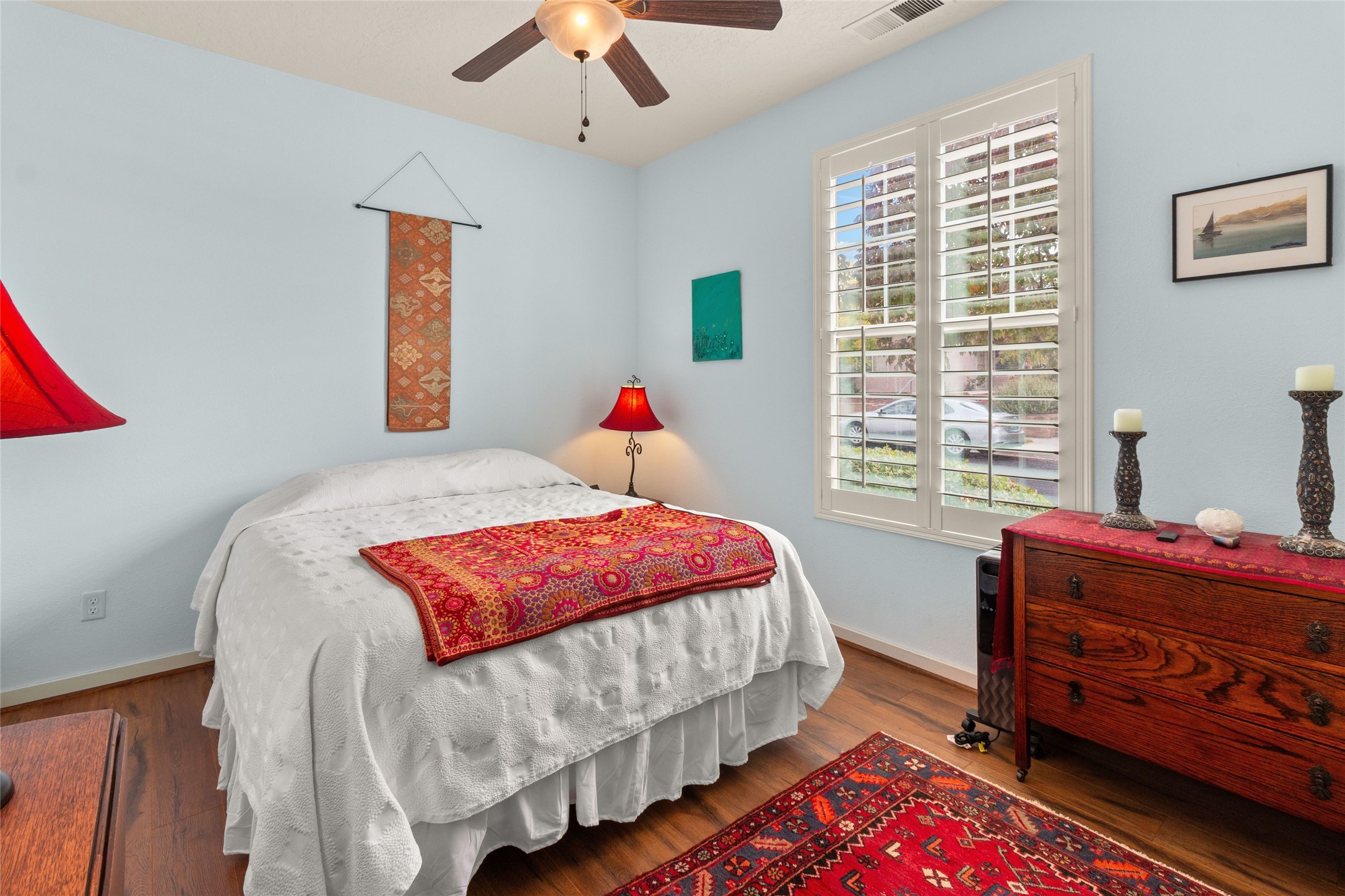 Beautifully upgraded and meticulously maintained single-level home blending exceptional comfort, style, and privacy. Recent improvements include a TPO roof, stucco, HVAC compressor, new appliances, and more -- providing true peace of mind. This 3-bedroom, 2-bath residence features a desirable open floor plan with high ceilings, arched thresholds and abundant natural light throughout.The living room is anchored by a wood-burning kiva fireplace, white plantation shutters frame the dining area's corner windows, and sliding doors lead to the inviting portal. The open-concept kitchen is ideal for both daily living and entertaining, featuring stainless steel appliances, custom cabinetry, pantry and functional island.The spacious primary suite offers a custom-organized walk-in closet and a well-appointed spa bath with double sinks, soaking tub and separate shower. A flexible studio space functions perfectly as a third bedroom, home office or den.Outdoor living is enhanced by a generous covered portal equipped with a built-in heater for year-round enjoyment, and the fully enclosed, landscaped yard features colorful, mature plantings and a recently upgraded drip irrigation system. Ideally situated on a premium lot adjacent to open space, the home enjoys exceptional privacy.Warm, inviting and truly move-in ready, this home is located in the thoughtfully planned Rancho Viejo community, renowned for preserved open spaces, greenbelts and miles of paved trails.