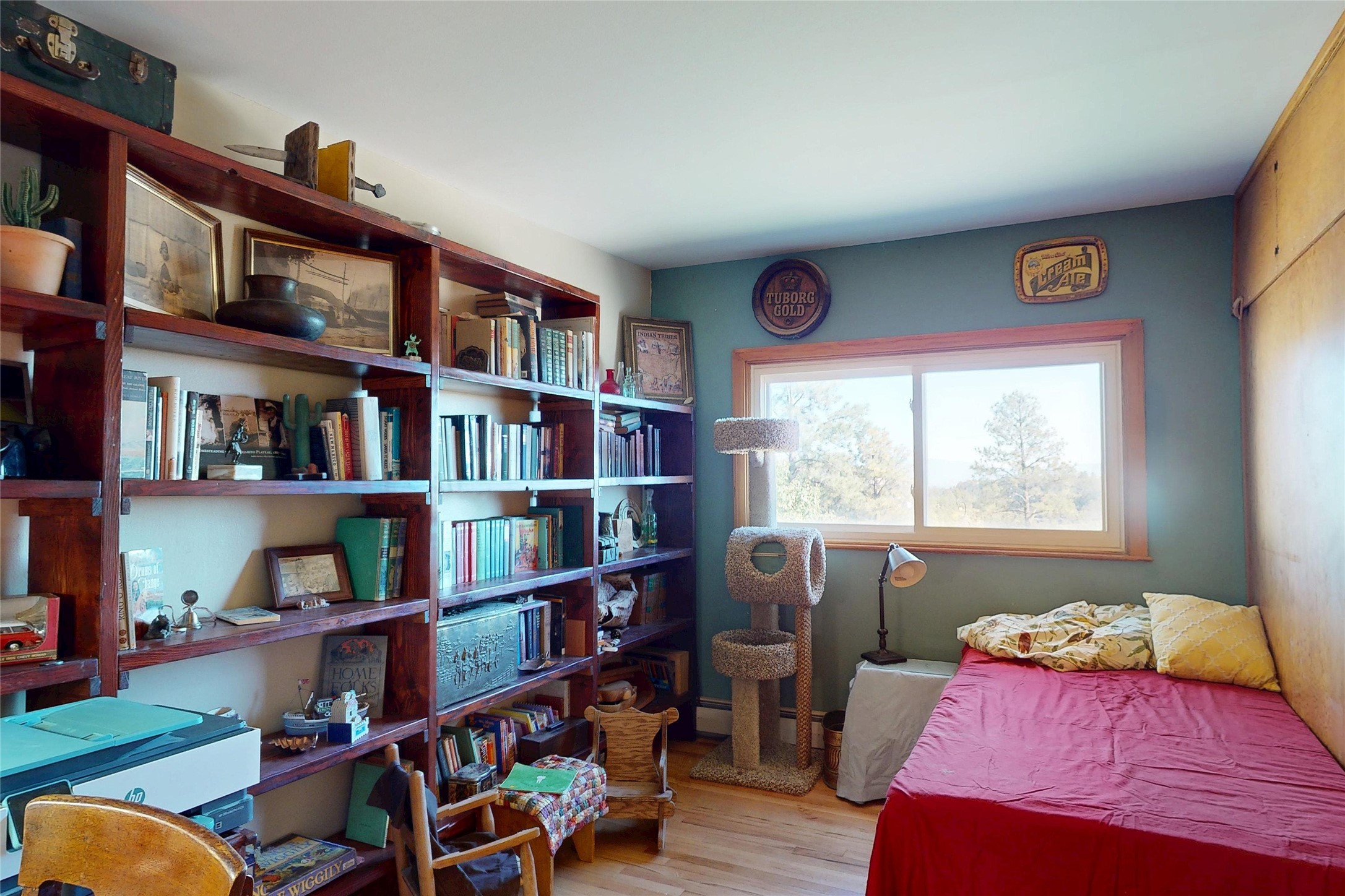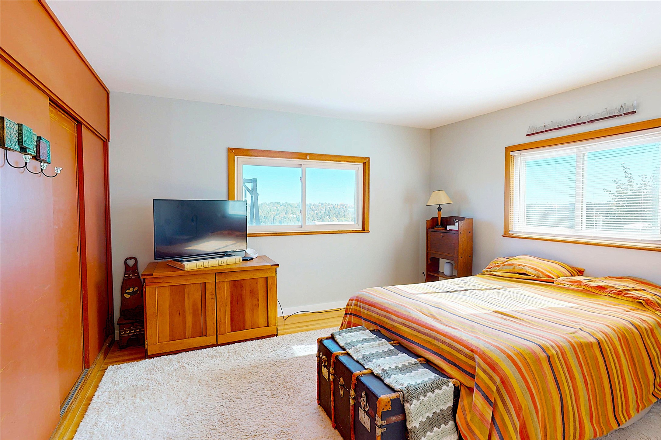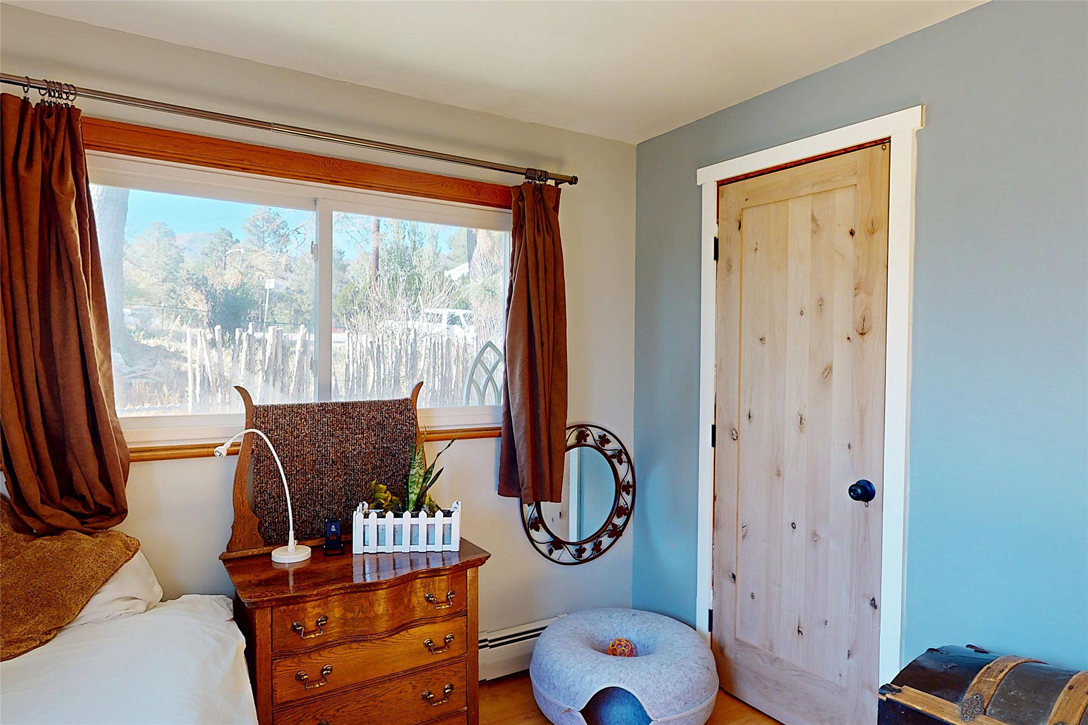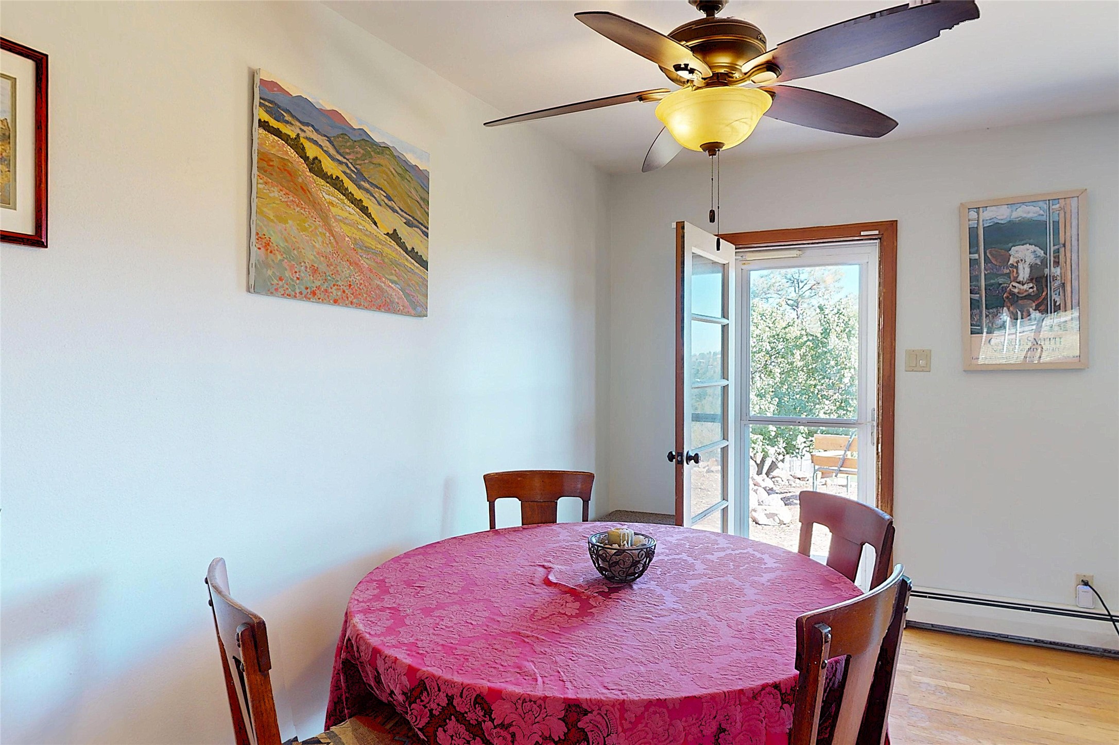 Charming Single-Story Home with Stunning Views and a Spacious Backyard. Welcome to this delightful 3-bedroom, 1-bath single-story home that perfectly blends comfort, functionality, and scenic beauty. Tucked near the end of a quiet street, this property offers peaceful surroundings and sweeping views of Los Alamos, the mountains, and the mesas. Step inside to an inviting open floor plan that seamlessly connects the living, dining and kitchen areas, creating a bright and welcoming space for everyday living or entertaining. Beautiful hard wood floors flow throughout, while large windows fill the home with natural light and frame stunning views. The updated kitchen features rich wood cabinetry, walnut butcherblock countertops, modern appliances, and abundant storage, including a pantry. Just off the kitchen is a laundry area, additional storage and a second freezer. Thoughtful lighting in the kitchen includes track lighting for ambient illumination, under-cabinet lighting for workspaces, and stylish pendant fixtures for added character. Outside, the expansive lot offers endless possibilities for outdoor living, gardening, and play. Enjoy sunrises from the wooden deck, dine al fresco, or relax in the spacious backyard surrounded by established gardens. A sprinkler and drip system with rain delay helps keep the yard easy to maintain. Ample parking includes space for an RV, complete with a convenient 30-amp circuit near the driveway. With close proximity to hiking trails, schools, LANL, and LAMC, this home delivers the ideal blend of Los Alamos tranquility and everyday practicality. Schedule your showing today!