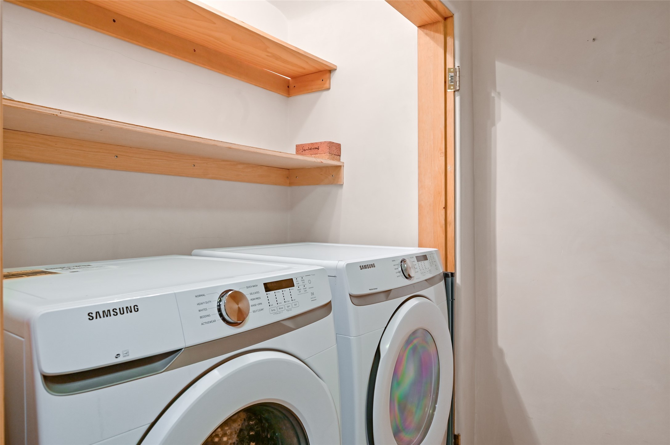 This eastside location cannot be better for quickly accessing Canyon Road and all that it has to offer. The upper level is the main living level consisting of the living room with kiva fireplace and a wall of windows facing towards the front deck. One bedroom and one full bath. A large well appointed kitchen that any chef would enjoy. A large dining area with even more room for an office, art space, yoga area, meditation space, library etc...Upper level is all wood flooring. The lower level can be a bedroom, flex space, office, studio and more. Brick floors on the ground level with one full bath, laundry, storage and mechanical room. The refrigerator, microwave, tankless water heater, washer and dryer are all less than 6 years old.