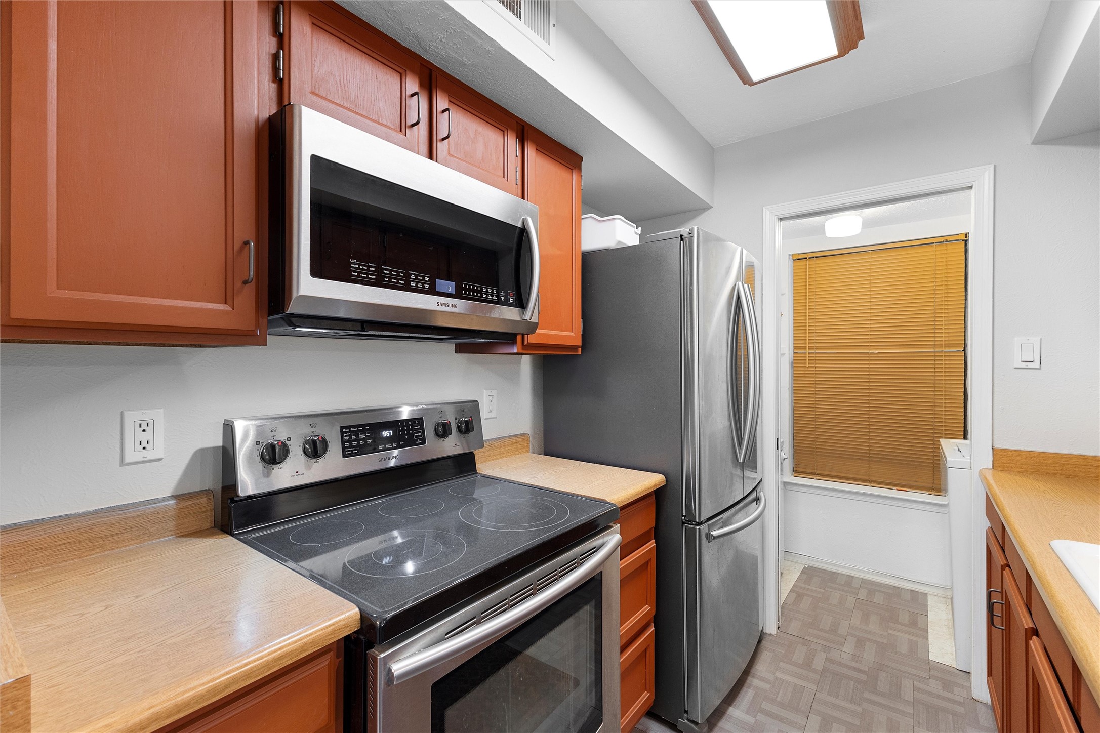 Stylish & Convenient Condo Living in Ridge Park!Welcome to this beautifully maintained 2-bedroom, 2-bath upper-level condo in the highly sought-after Ridge Park community. This bright, inviting home features an open living area with a cozy wood-burning fireplace, vaulted ceilings, and access to a covered balcony showcasing stunning views of the Jemez Mountains. The dining area flows seamlessly into a well-appointed galley kitchen, complete with sleek Samsung stainless steel appliances and a convenient pass-through window.The main-level bedroom offers its own private balcony and easy access to a full bath, while the upper-level loft bedroom serves as a peaceful retreat with an en suite bathroom, generous vanity space, and a spacious shower. Thoughtful updates include modern lighting, stylish ceiling fans, and abundant closet space, including an exterior storage closet.Additional highlights include a dedicated covered parking space directly across from the unit, plus on-site amenities such as an outdoor pool, fitness room, and clubhouse. Pet-friendly Ridge Park also features a nearby dog walking park. Centrally located in Los Alamos, you'll enjoy easy access to Ashley Pond, the public library, restaurants, shops, and LANL--everything you need for convenient and comfortable living!