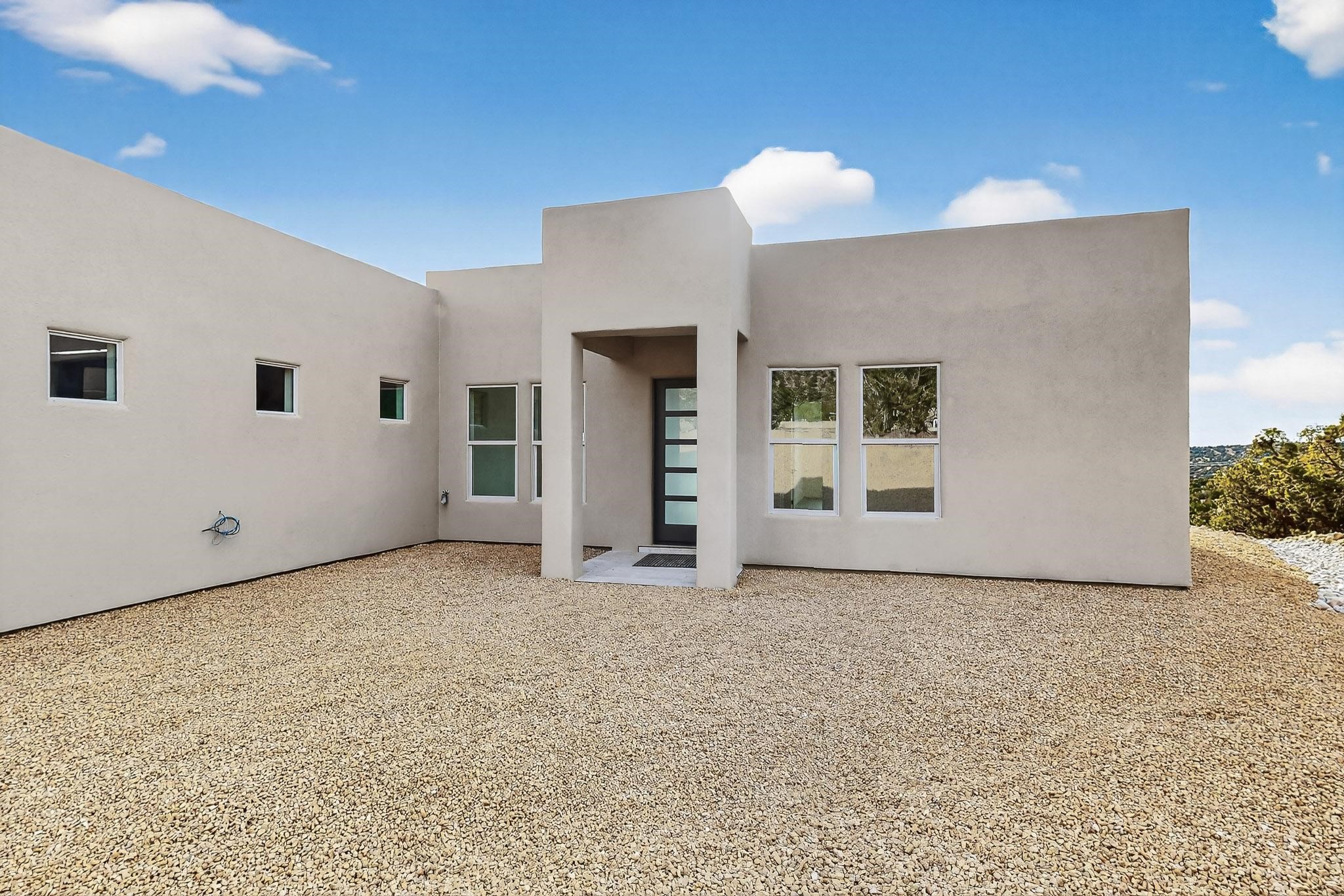 New Construction. Located in the exclusive Longview gated community, this 3-bedroom, 3-bath home with a 3-car garage offers breathtaking views of the Sandia and Galisteo Basin. Thoughtfully designed with two primary suites plus an office, the home features custom cabinetry, a walk-in pantry, and light-filled open living spaces. Enjoy seamless indoor-outdoor living, a spacious three-car garage, and the tranquility of one of Santa Fe's most sought-after settings. Owner/Broker.