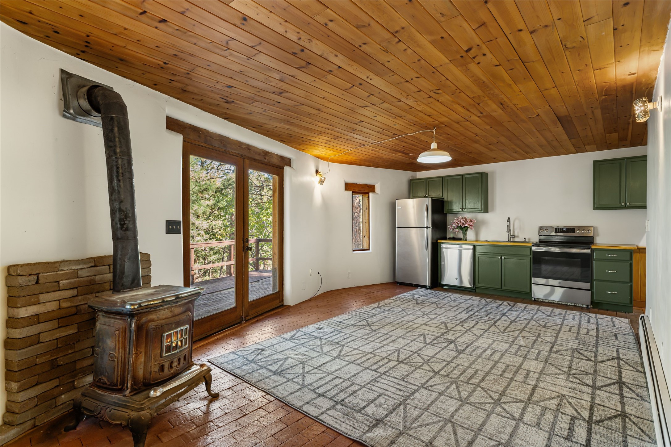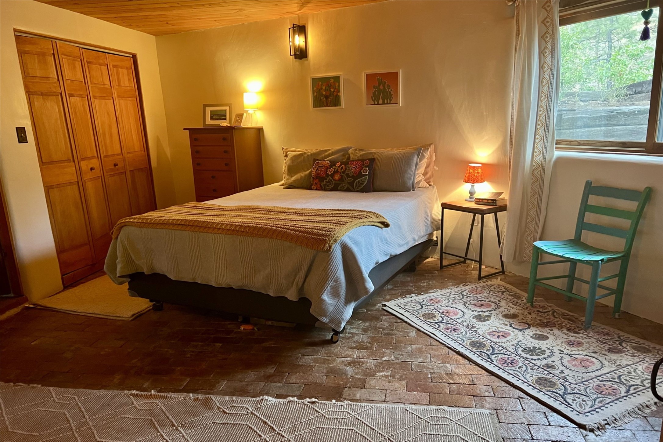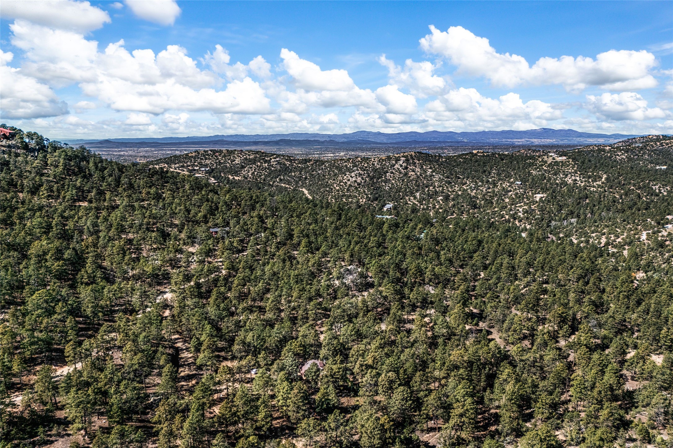This mountain residence is located in a splendid setting on 2.7 forested acres in the tall pines off Old Santa Fe Trail. The three-level home offers a main house and guest house under the same roof and connected by a stairway internally, so it can be used as a single home or house and guest house. The main level consists of the living, kitchen, and dining rooms, primary bedroom, and bathroom. There are two enjoyable decks - a very large deck off the living room and another off the dining room. The upper level has two bedrooms, a sitting area, and bathroom. The lower lever is the two-bedroom, two-bath guest house with an open-concept living/kitchen/dining area, and which also has another wonderful large deck. The outdoor living is delightful! The topography is gentle, affording a great deal of usable land. Experience a beautiful mountain lifestyle only minutes from the Plaza.