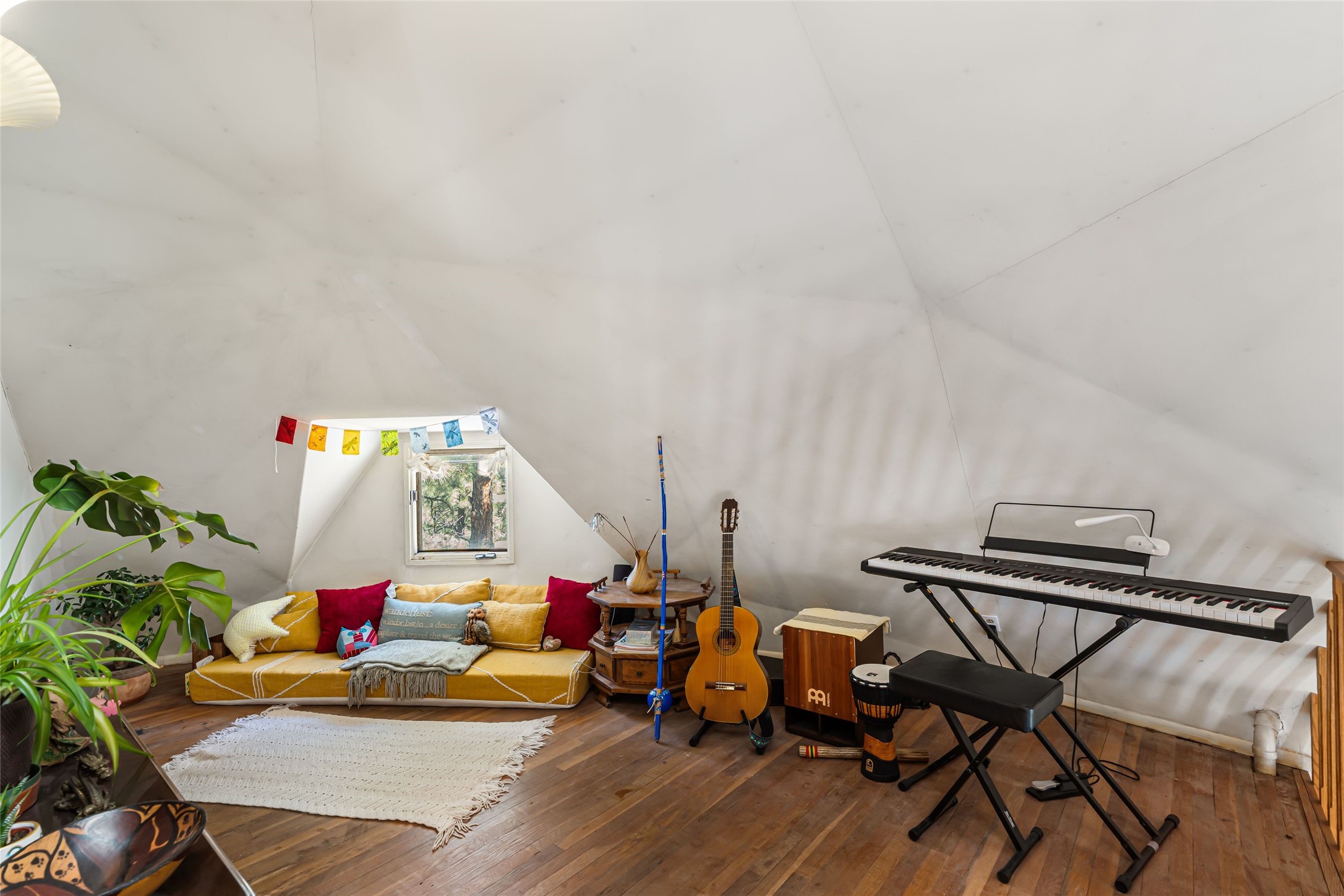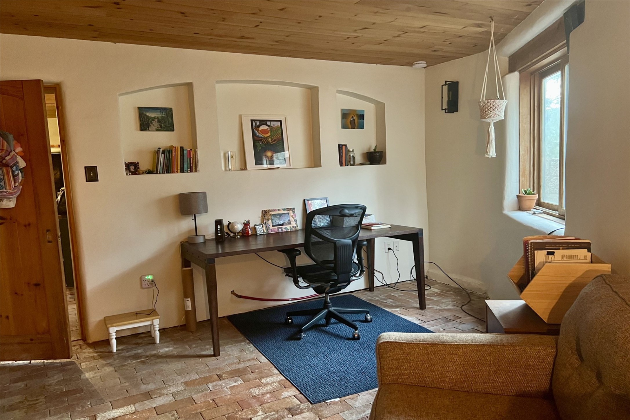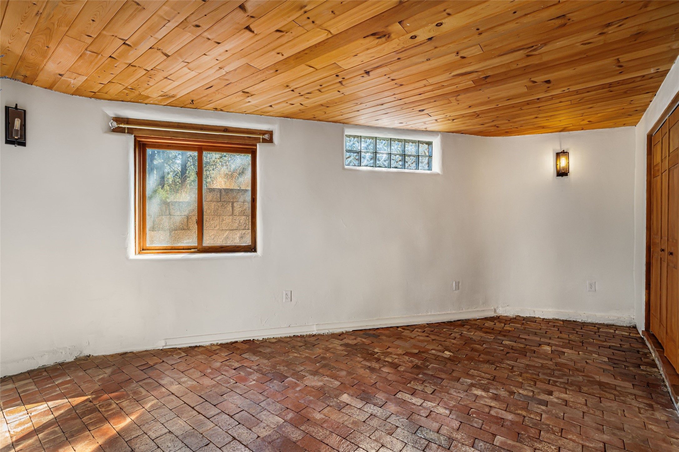 This mountain residence is located in a splendid setting on 2.7 forested acres in the tall pines off Old Santa Fe Trail. The three-level home offers a main house and guest house under the same roof and connected by a stairway internally, so it can be used as a single home or house and guest house. The main level consists of the living, kitchen, and dining rooms, primary bedroom, and bathroom. There are two enjoyable decks - a very large deck off the living room and another off the dining room. The upper level has two bedrooms, a sitting area, and bathroom. The lower lever is the two-bedroom, two-bath guest house with an open-concept living/kitchen/dining area, and which also has another wonderful large deck. The outdoor living is delightful! The topography is gentle, affording a great deal of usable land. Experience a beautiful mountain lifestyle only minutes from the Plaza.