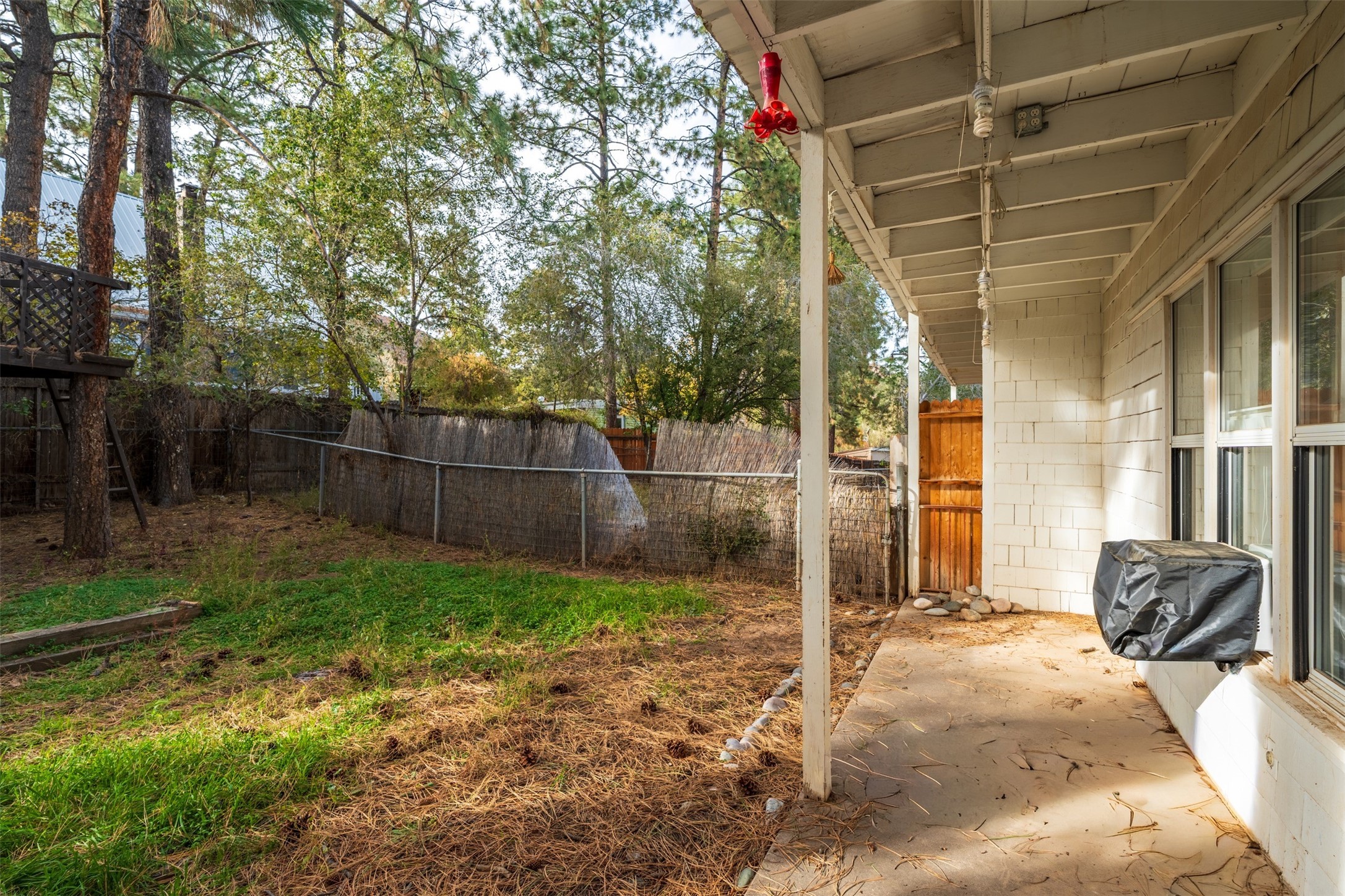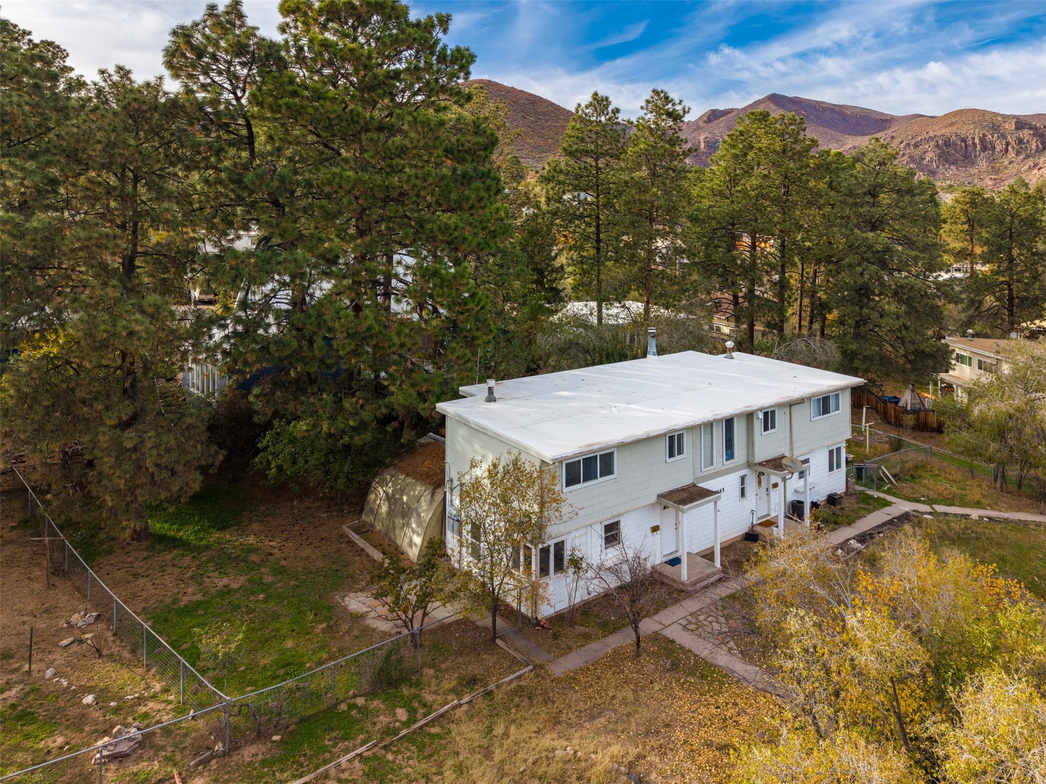 Charming North Community Condo with Expansive Yard & GreenhouseSet on a spacious corner lot in the quiet North Community neighborhood, this two-story condo offers privacy, character, and exceptional outdoor space--just 5 minutes from Los Alamos National Lab (LANL).Upstairs, you'll find three generously sized bedrooms with hardwood floors and large windows that fill the space with natural light. Two bedrooms are connected by a convenient walk-through closet, and the full bath features a clean, classic design with a pedestal sink and tub/shower combo.The main level offers a bright galley kitchen with white cabinetry, chrome hardware, and all appliances--including washer and dryer. The adjacent dining area opens to an enclosed back porch with a storage closet, while the large living room features original hardwood floors, track lighting, and access to a unique greenhouse with built-in workbench.Outdoors, the home offers a mix of privacy and open space with established landscaping, a treehouse platform, a covered patio, and a fully fenced backyard--perfect for gardening, entertaining, or simply relaxing.Located steps from Urban Park and close to hiking trails, excellent schools, and the amenities of downtown Los Alamos. Schedule your showing today!Seller to provide a $5,000 seller concession to buy down your interest rate or help cover closing costs.