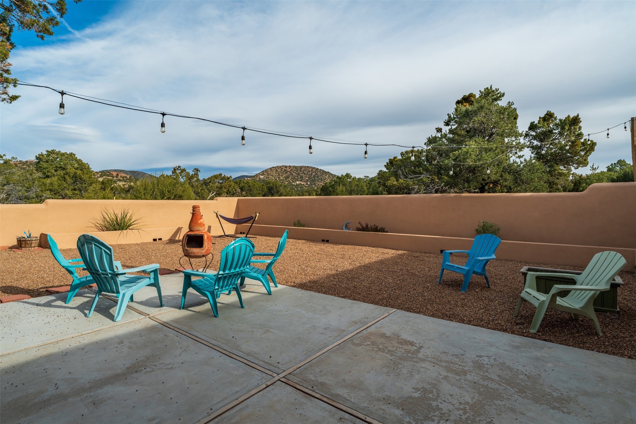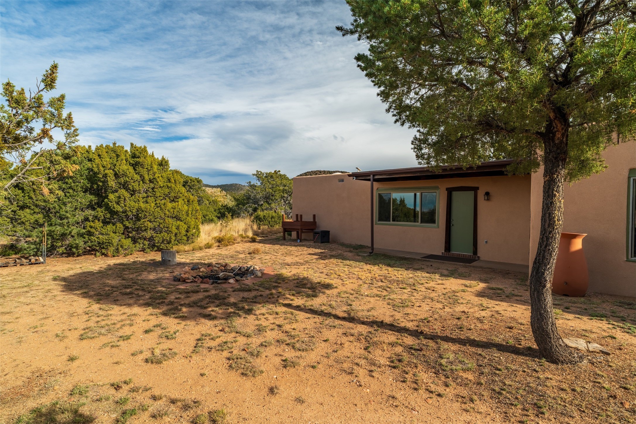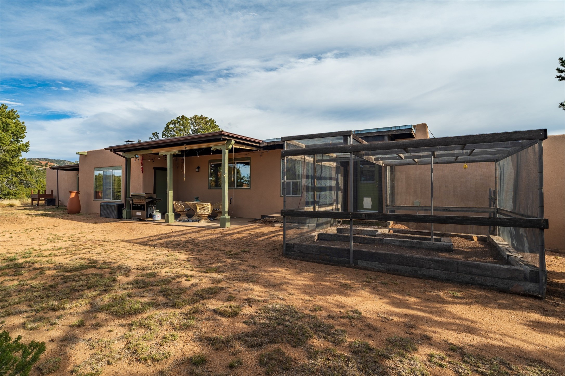 Discover this thoughtfully designed 3-bedroom, 2-bath home on five acres in Sunlit Hills, offering the perfect blend of rural tranquility and everyday convenience. Enjoy views of the Jemez Mountains and nearby foothills, just 10 minutes from town.The home's L-shaped layout centers around a courtyard and two large covered patios, ideal for outdoor dining and relaxation. Inside, you'll find brick and tile floors, maple cabinetry, custom built-ins, and generous closet space throughout.The private primary suite features a fireplace and peaceful views, while a pellet stove in the living room adds warmth and charm. A bonus room offers flexibility for an office, studio, or extra storage.Perfect for homesteading, the property includes a large chicken coop, fully fenced and deer-proof garden area, a spacious storage shed, and ample space for horses. Eco-friendly amenities include a fully owned solar panel array and EV charging station.With its heated two-car garage, self-sufficient design, and proven short-term rental history, this home offers comfort, versatility, and stunning natural beauty--all within easy reach of town.