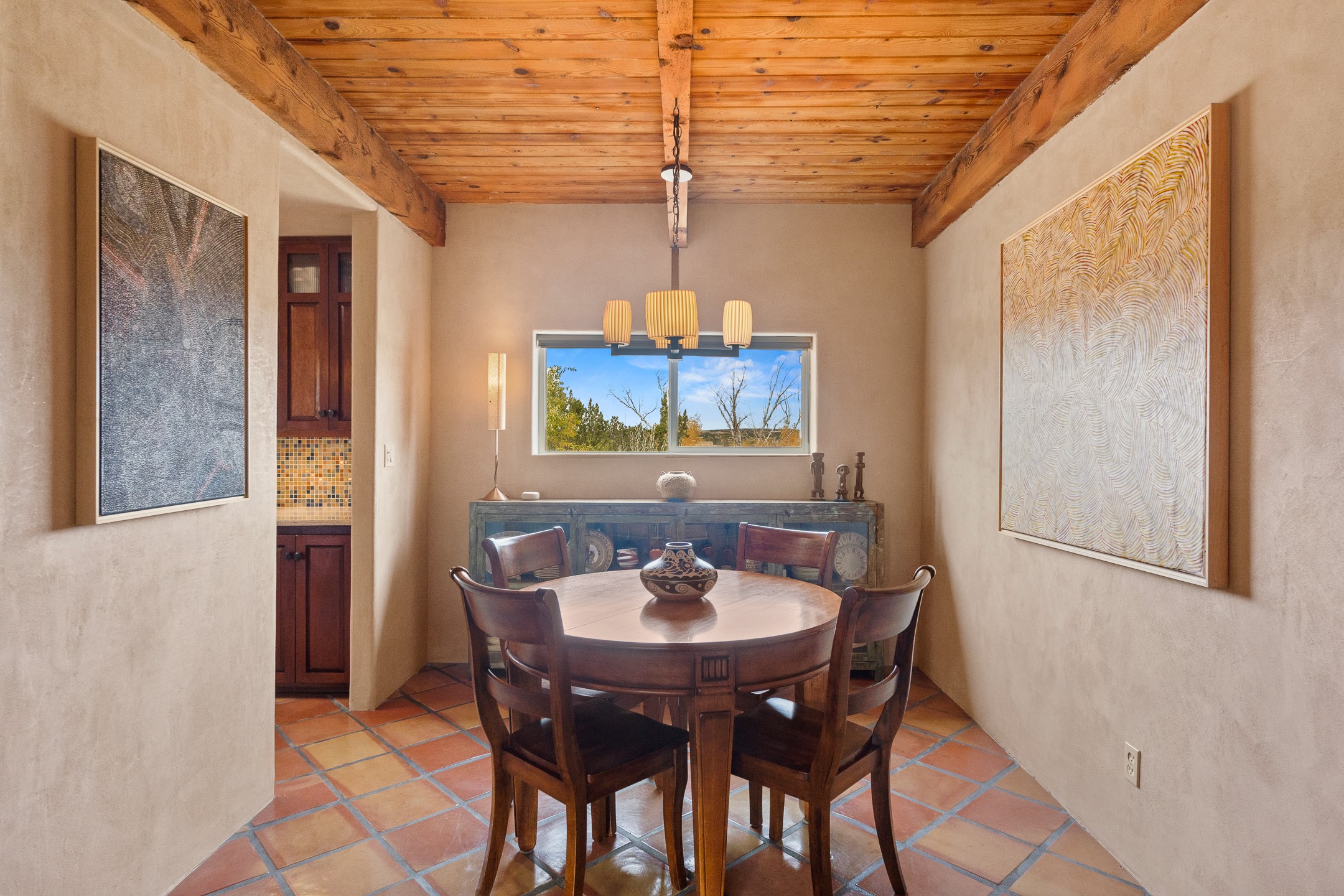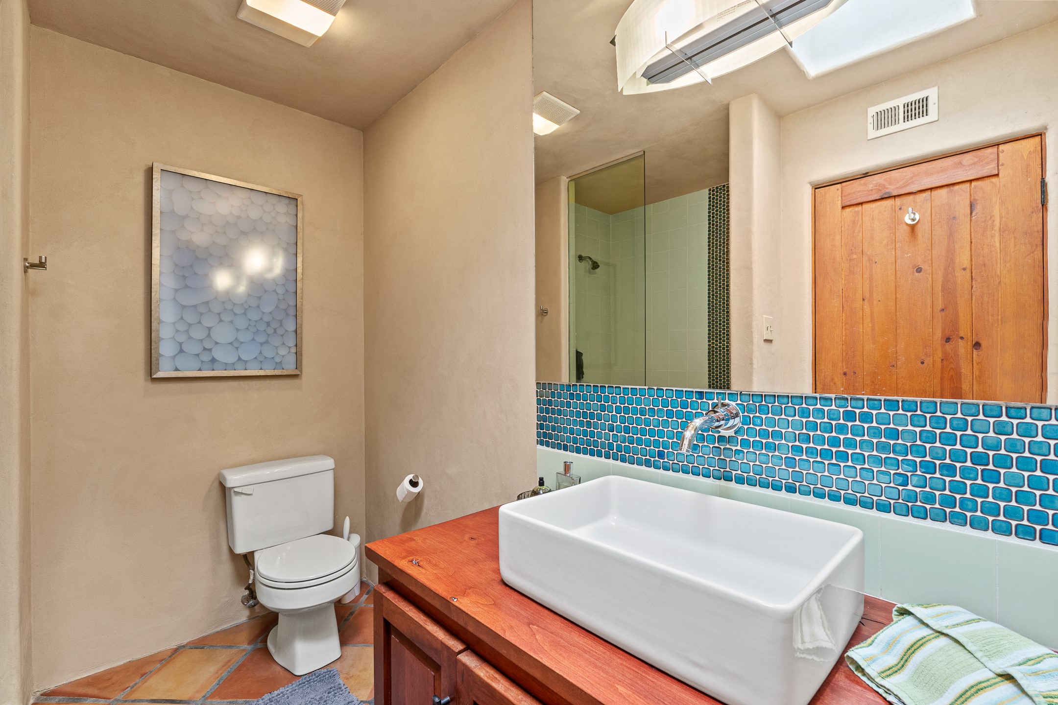 This charming 2 bedroom, 2 bathroom single-level condominium is ideally located just 6 blocks from the vibrant heart of downtown Santa Fe and only 1 block from the scenic road to Ski Santa Fe, with access to numerous hiking and biking trails. Nestled within the coveted Fort Marcy Compound, this beautifully updated home offers a quiet setting with minimal passersby. The HOA does not place restrictions on rentals, making this a perfect candidate for a short-term rental property, a vacation home for when you want to visit Santa Fe, or a full-time residence as it has been for the current owners! The spacious interior features Saltillo tiles laid on an angle, American Clay walls, and exposed natural beams. Enjoy cozy evenings by the Kiva fireplace and the convenience of an office space that opens into the living area for better flow. The modern kitchen boasts a new induction stove, a low-profile fridge, custom cabinetry with a bar, and full pantry storage. With two windows showcasing stunning sunset views and a beautifully landscaped garden area, this condo is the perfect blend of comfort and style. Don't miss your chance to experience the best of Santa Fe living! The on-site management company operates a vountary STR propram. Ask listing broker for details. Amenities include an indoor swimming pool and hot tub, a popular attraction for vacationers in the summer and winter months! Call for your showing today, before it's gone!