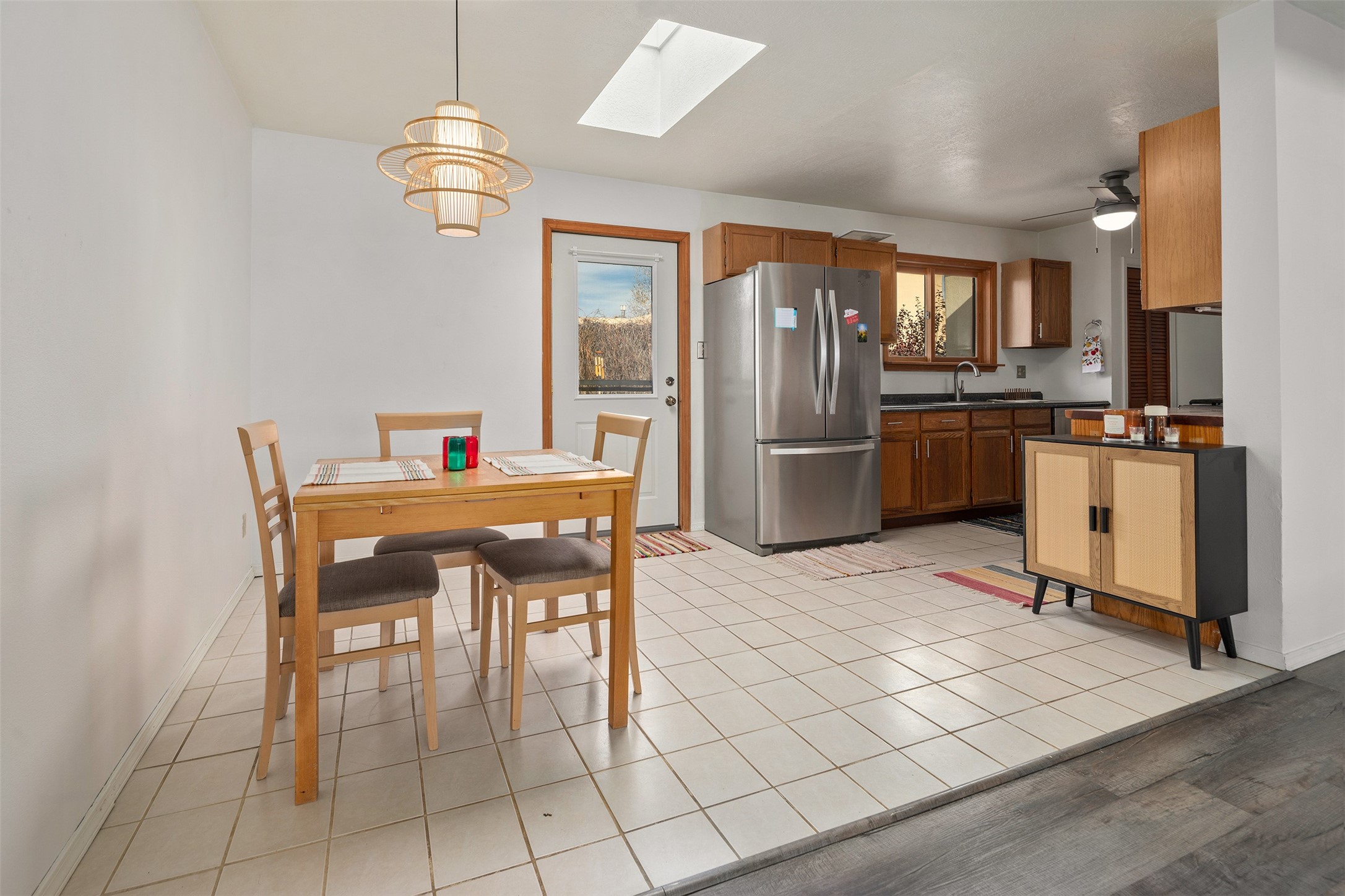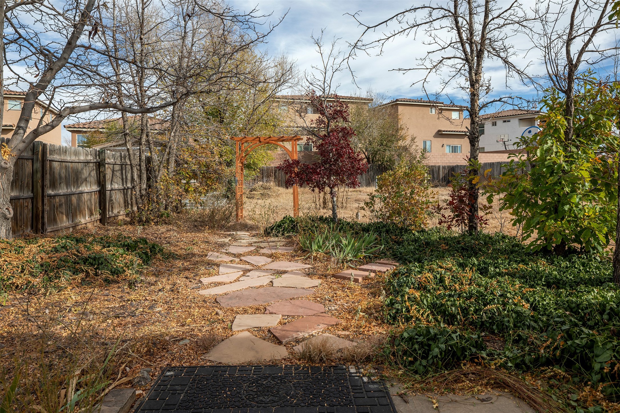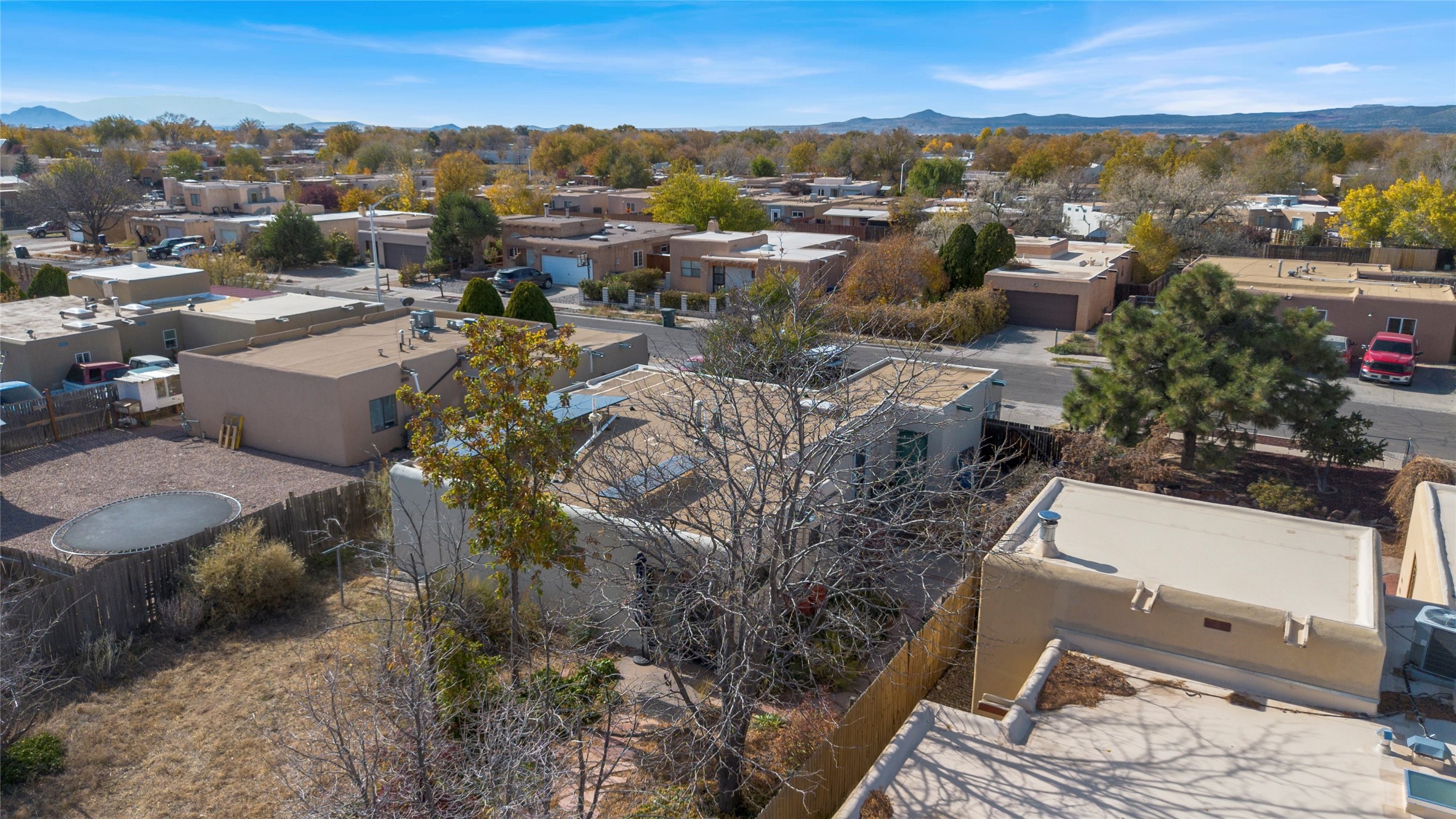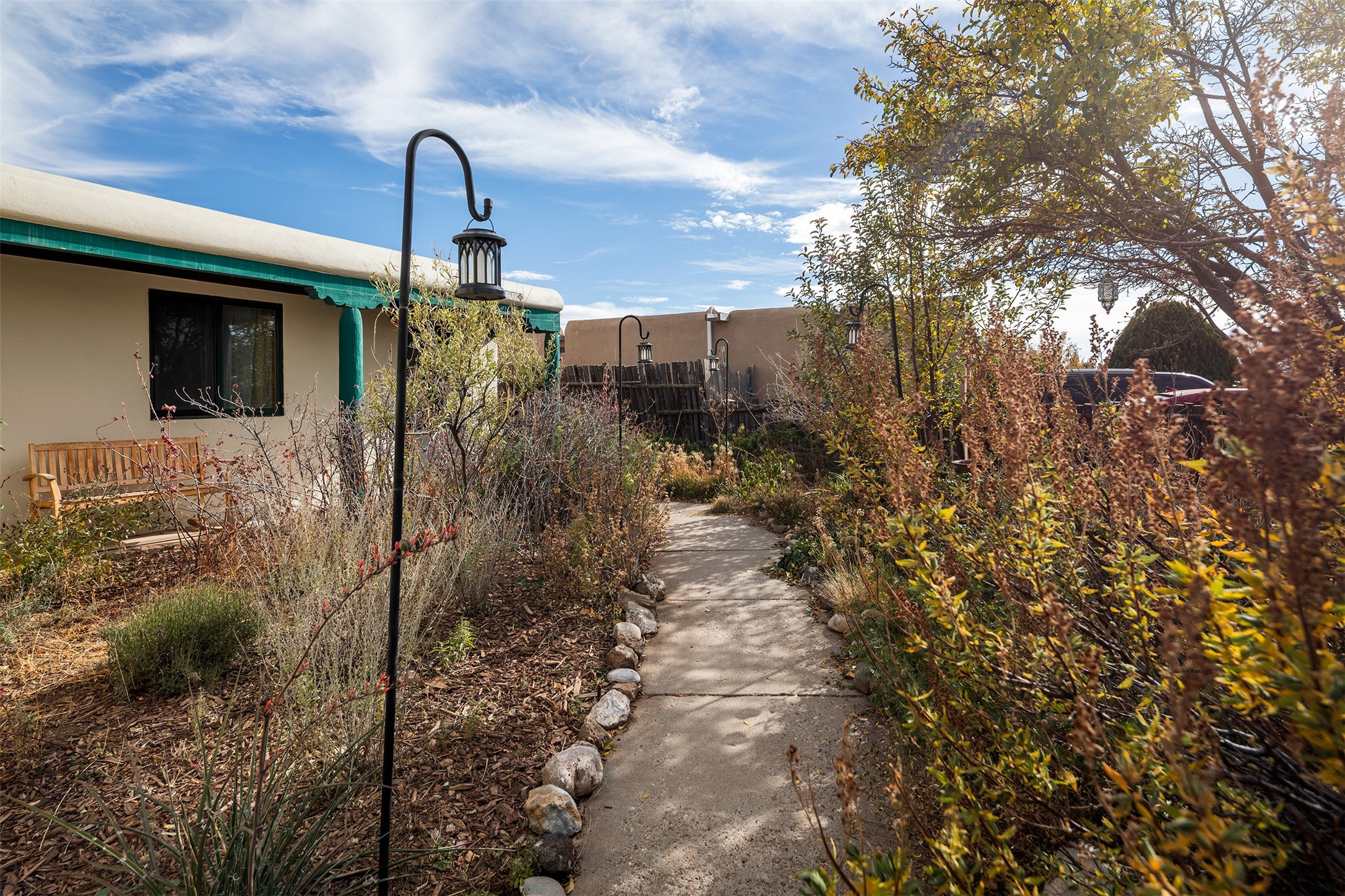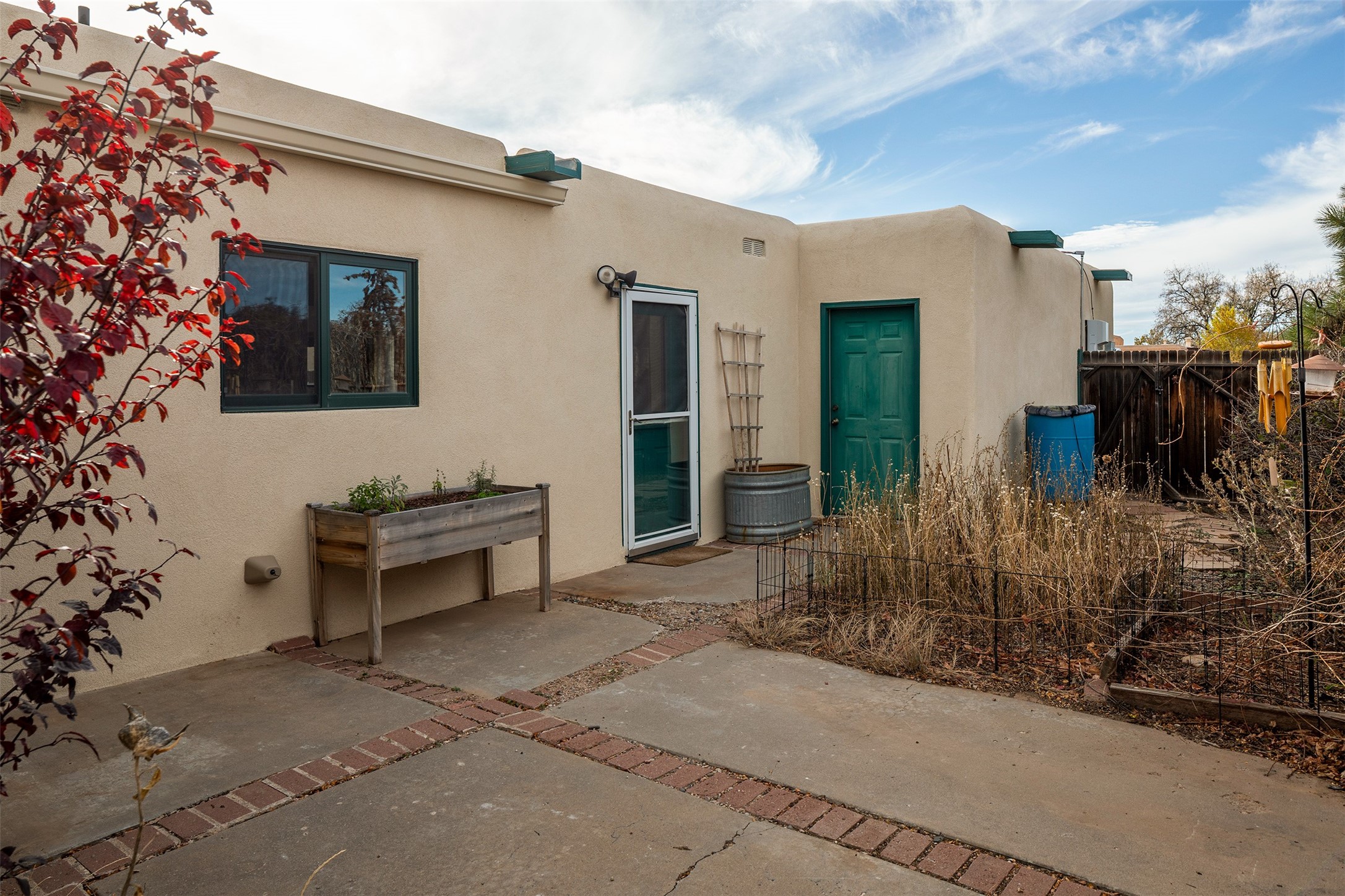 This charming 3 bedroom, 2 bath home in Las Acequias sits on a generous .23-acre lot and is truly move-in ready. Thoughtfully updated and filled with natural light, it offers both comfort and efficiency in a convenient southside location.Inside, the home enjoys beautiful light throughout the day--morning sun in the bedrooms and warm afternoon light in the living room. The bright galley kitchen opens to a private patio, perfect for enjoying your morning coffee. The spacious primary suite includes access to the backyard, a walk-in closet, and an updated full bath with newer fixtures. A tankless water heater and a Trane forced-air heating system add comfort and long-term value.Energy efficiency is a standout here. The owned solar panel system keeps electric bills extremely low. New gutters and rain barrels redirect water away from the home, protect the updated stucco, and provide a useful supply for the garden.The outdoor areas are a true highlight. The fenced front yard features native plants, herbs, flowers, and a mature apple tree. The oversized backyard--one of the largest in the neighborhood--offers endless possibilities. Enjoy two raised garden beds, additional plantings including wisteria, and ample room for entertaining, play, or future projects.Additional features include two full bathrooms with bathtubs, excellent storage throughout, a radon detection system, new bathroom vanities, and a one-car attached garage.This home offers space, efficiency, and an exceptional outdoor lifestyle--all in a well-maintained, move-in ready package.