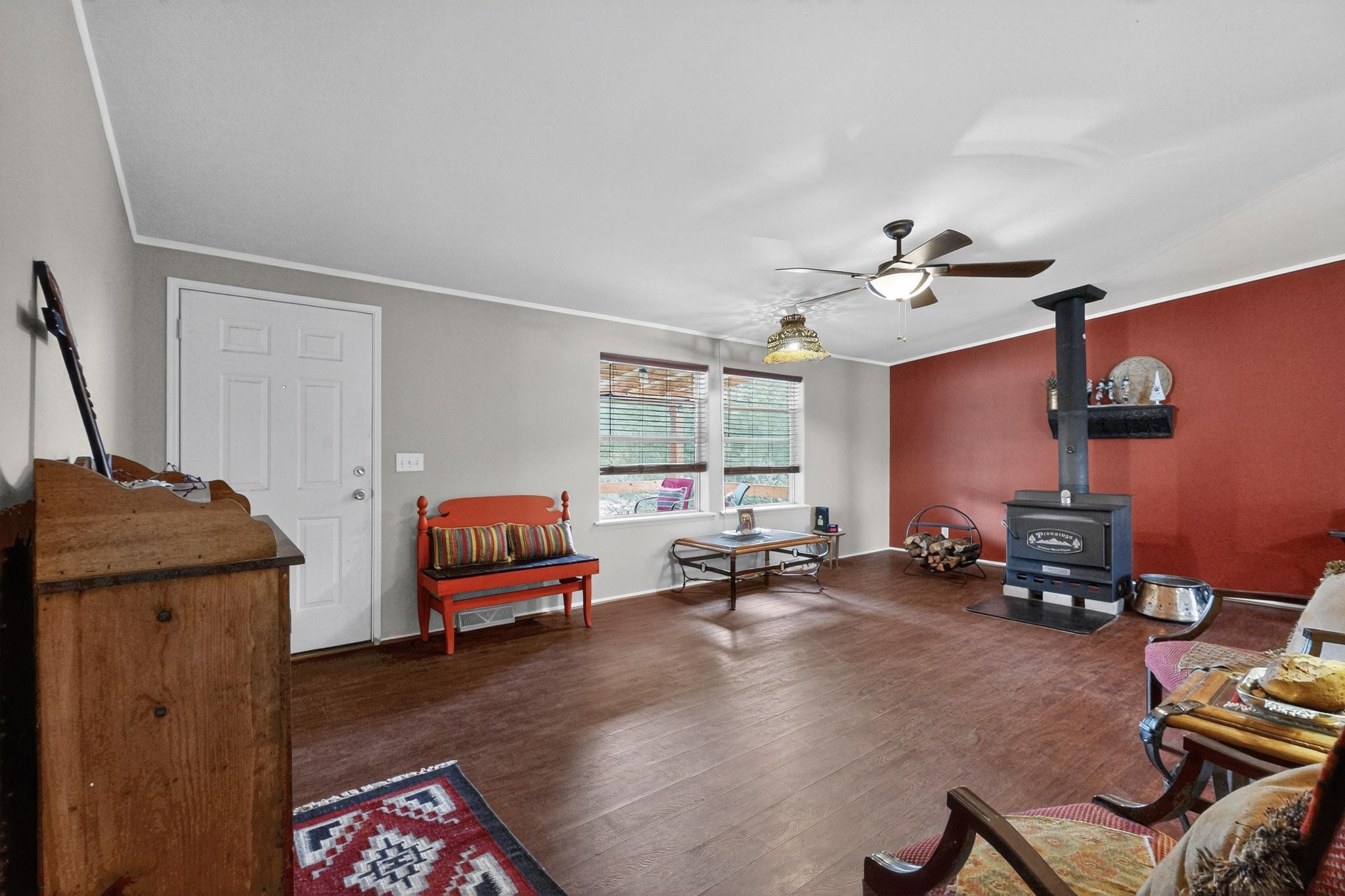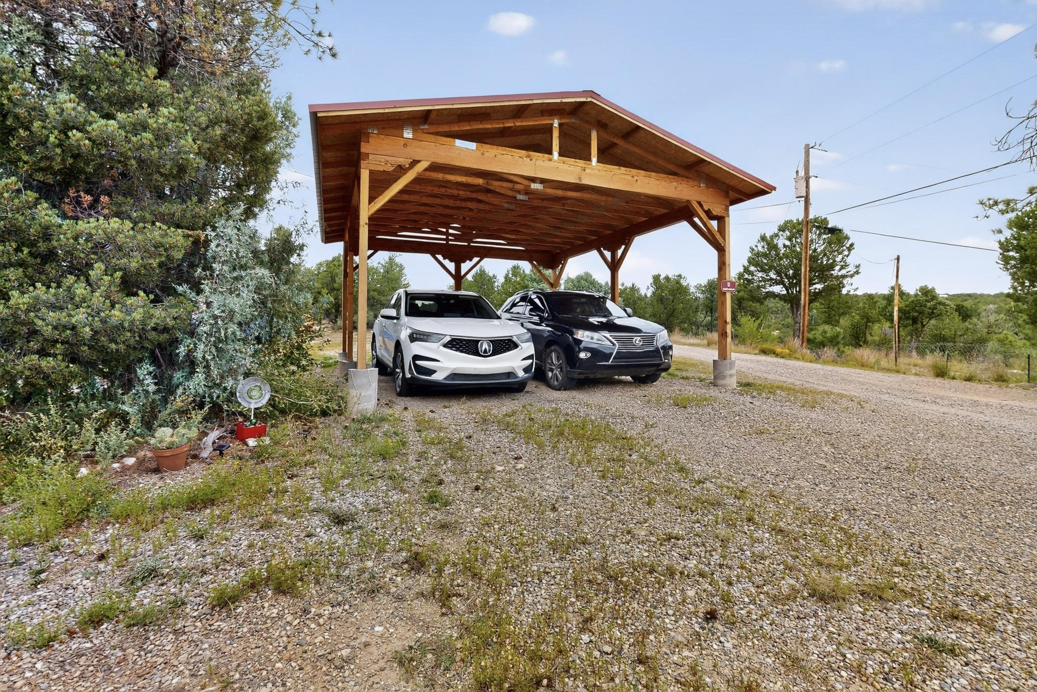 11 Corte Vargas has a 2007 3 bedroom, 2 full bath doublewide manufactured home on a permanent foundation sited on 1.026 +/- acres located in the Glorieta area, 22 minutes to Santa Fe. The home is accessed from a covered porch, has living room with wood burning stove, cook's kitchen, split bedroom floor plan, forced air heating as well as air conditioning, ample closets, washer and dryer. The area around the home is nicely landscaped with perennial flowers, walkways, covered chicken coop, 2 car carport and designated sitting and viewing area. Adjoining 5.37 acres also for sale MLS #202504963, for $124,900