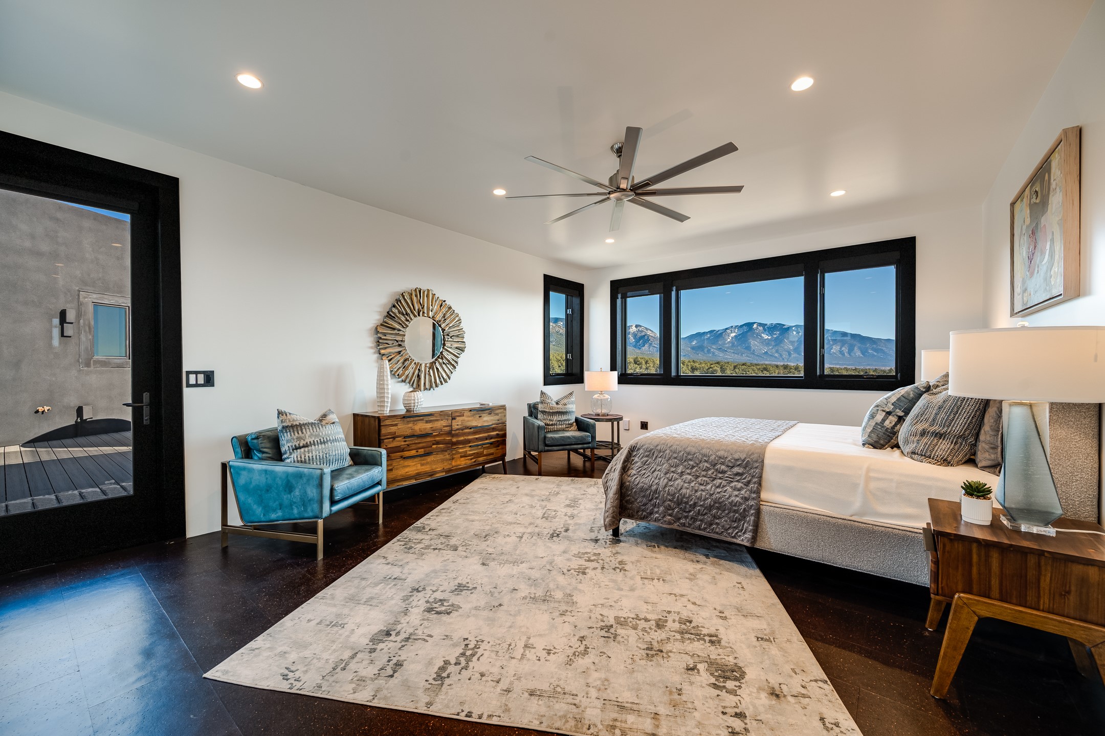 An exquisite home and true work of art, Raven's View is a rare and exceptional offering in Taos, New Mexico. Often described as unparalleled, incomparable, distinctive, and rare, this once-in-a-lifetime property delivers an extraordinary living experience immersed in nature. Nestled on 10 private acres, the residence offers approximately 7,000 square feet, featuring 4 bedrooms and 3.5 baths, along with breathtaking 360-degree million-dollar views of the El Salto Mountains, Pueblo Peak, and the Truchas Peaks. The setting provides a remarkable sense of peace, comfort, and tranquility, where one feels both protected and elevated above the world. The home was built by highly regarded Taos builder Don Pennington, known locally for his sculptural, custom homes and exceptional craftsmanship. The design was created by owner Mala Mukherji, an author, designer, and healer, who synthesized her life's work into a physical space deeply interconnected with the harmony and majesty of the surrounding landscape. Intentional design defines every area of the home. Thoughtfully created spaces allow for both solitude and gathering, seamlessly entwined with pine, cedar, and pion forest, expansive skies, abundant sunlight, and endless views. Private retreats invite rest and contemplation while maintaining a strong connection to the natural beauty outside. The construction and infrastructure reflect the strength and presence of the five sacred peaks surrounding the property. Built with solid metal (STEEL) and (2' x 8') wood framing, along with substantial insulation, the home offers exceptional comfort throughout all four seasons. The infrastructure was designed with longevity, efficiency, and comfort in mind, sparing no expense. As Mala states, "One thousand thoughts are behind every inch of this house." The result is a luxurious yet effortless experience of living in harmony with nature. The home is named for the two ravens believed to have guided and protected each step of its creation. Located at the top of the secluded and exclusive Turley Mill subdivision, the property borders the Carson National Forest, providing endless hiking and trail opportunities. Wildlife is abundant, including elk, mule deer, bobcat, and wild turkeys. Additional features include a private owners' wing separated from the guest wing by a sheltered upper deck, outdoor hot tub deck, expansive outdoor recreation deck, chef's kitchen with custom appliances, radiant in-floor heating, extensive storage areas, and an oversized three-car garage. Raven's View is more than a home--it is a sanctuary, a sculptural masterpiece, and a rare opportunity to own an extraordinary property in Taos. Taos is known for its vibrant art scene, rich Native American and Spanish history, stunning high-desert landscapes (like the Rio Grande Gorge), world-class skiing at Taos Ski Valley, and unique cultural blend, particularly the ancient, inhabited adobe Taos Pueblo, a UNESCO World Heritage Site. It's a haven for artists, photographers, outdoor enthusiasts, and those seeking unique architecture and Southwestern culture.