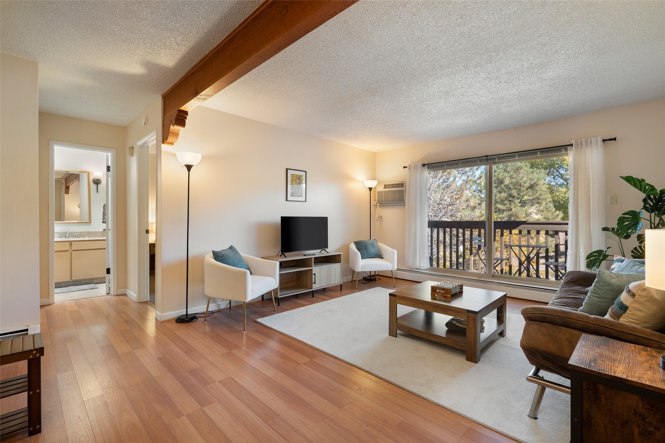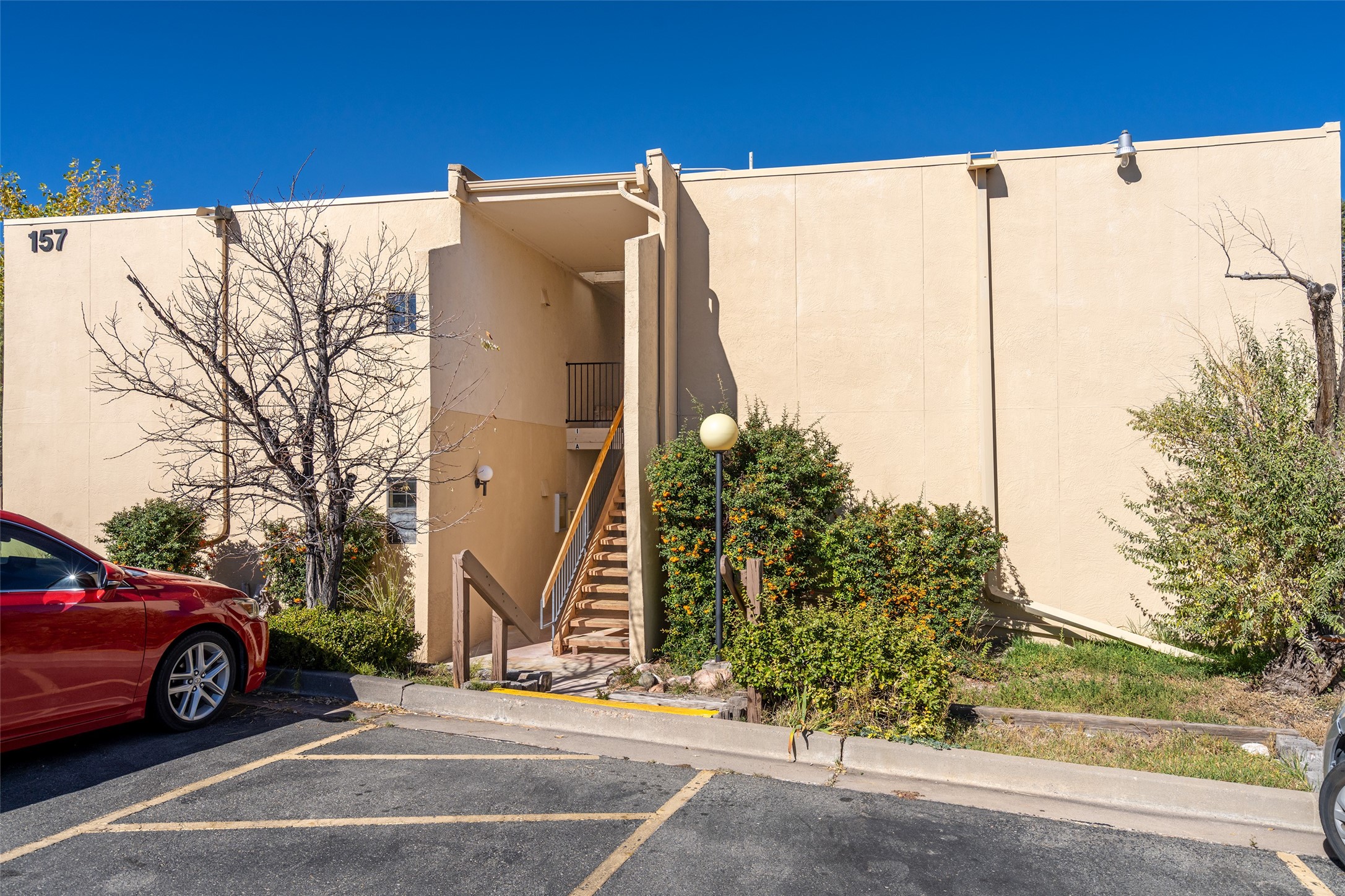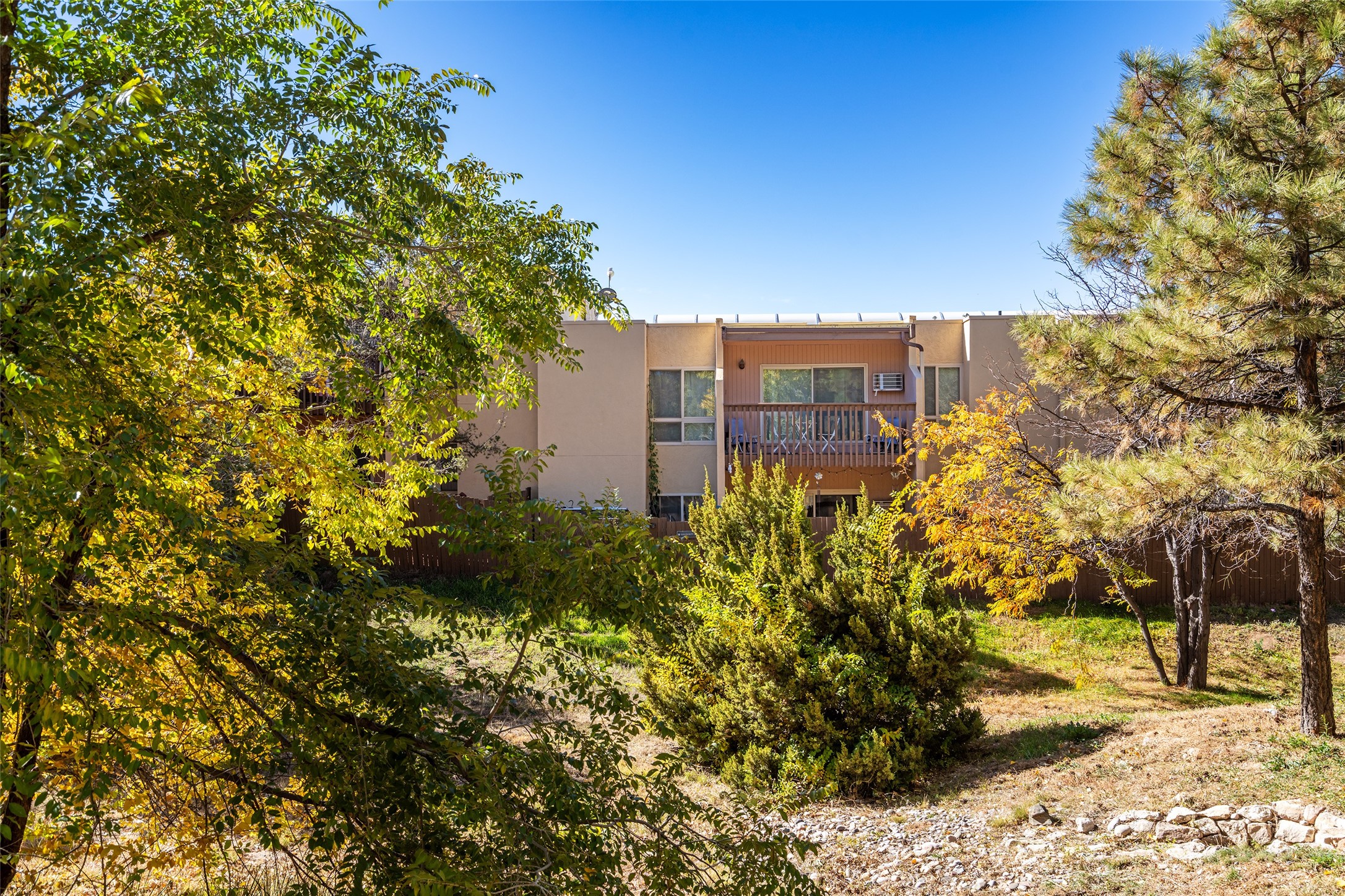 This spacious second-story condominium in the desirable Los Arroyos community offers comfort, convenience, and Santa Fe charm. Centrally located near the hospital and many of the city's premier amenities, this home is one of the larger units in the complex, featuring two bedrooms, one full bath, one bath, and a dedicated laundry room.The bright and open living and dining areas feature easy-care laminate flooring, while the kitchen and baths are finished with tile and the bedrooms offer cozy carpeting. A generous northeast-facing deck provides a lovely outdoor retreat with seasonal mountain views in winter-- perfect for relaxing or entertaining. Residents enjoy a wealth of community amenities, including a clubhouse, indoor swimming pool, sauna, and tennis courts, along with nearby walking trails. The home includes one assigned parking space plus additional guest parking. The association includes roof and exterior maintenance, heating, water, and common areas, ensuring low-maintenance living in one of Santa Fe's most convenient neighborhoods. Your Santa Fe comfort awaits!