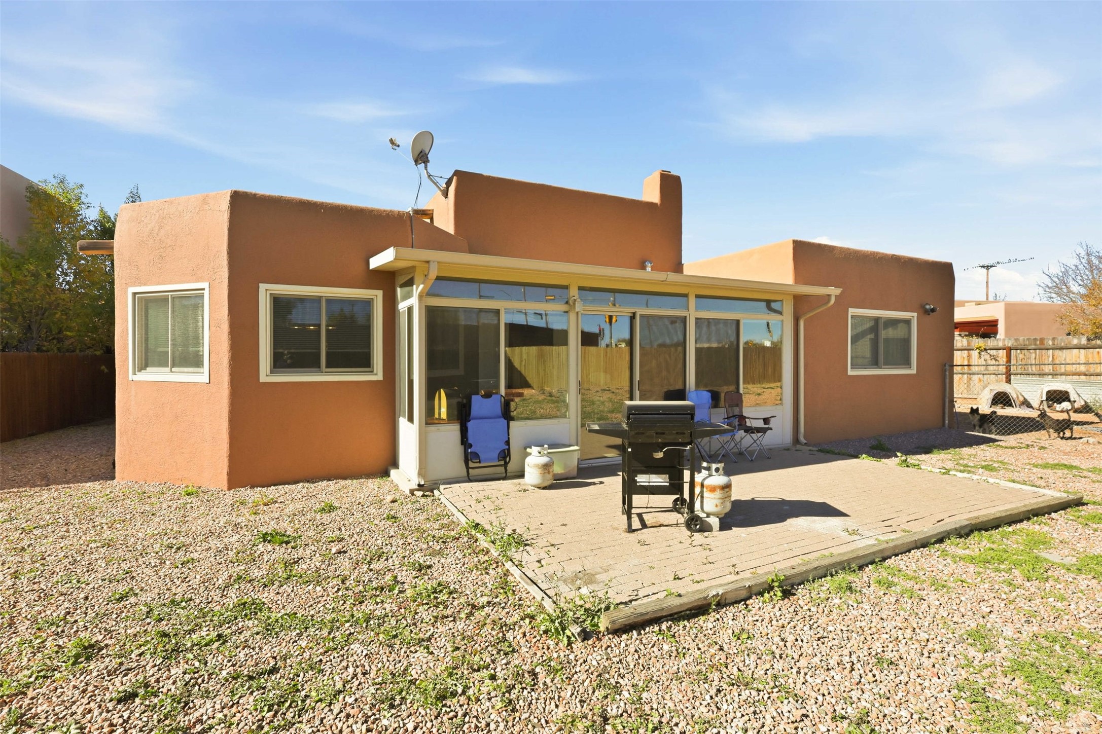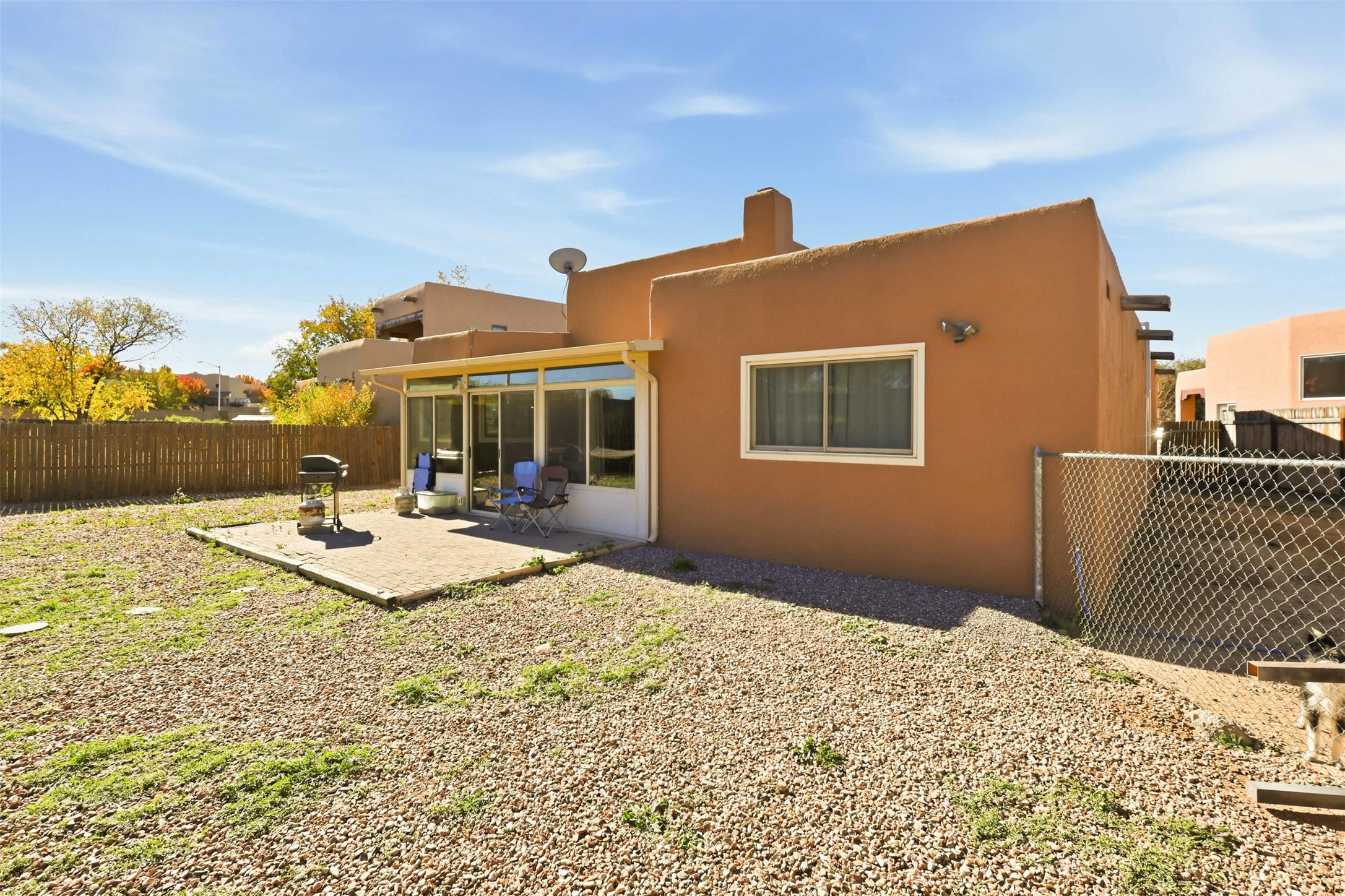 Step inside this beautiful single-level home showcasing the timeless charm and warmth Santa Fe is known for. Featuring 3 bedrooms and 2 baths, it offers an open floor plan with high beamed ceilings, a kiva fireplace, and natural light throughout. The inviting kitchen and dining area open to a private fenced backyard, perfect for gatherings or quiet evenings under the New Mexico sky. The spacious primary suite provides peaceful separation, and the quiet cul-de-sac location offers both privacy and convenience near shopping, dining, and downtown. Do not miss this opportunity to schedule your private showing today and discover true Santa Fe living.