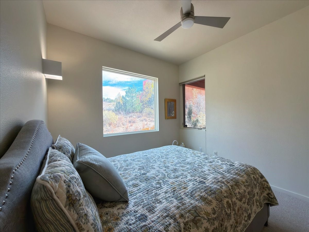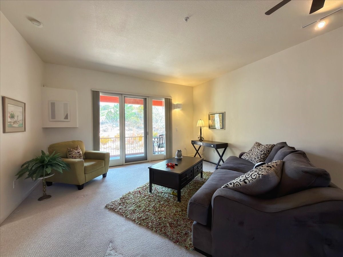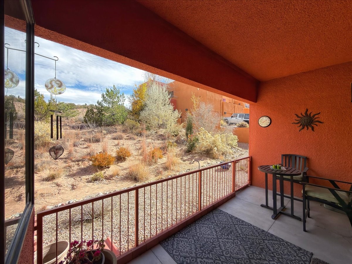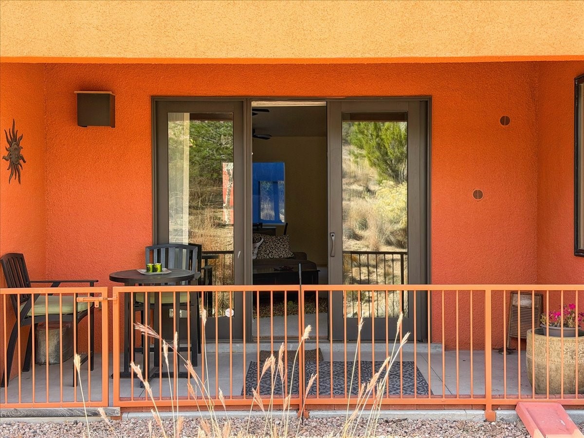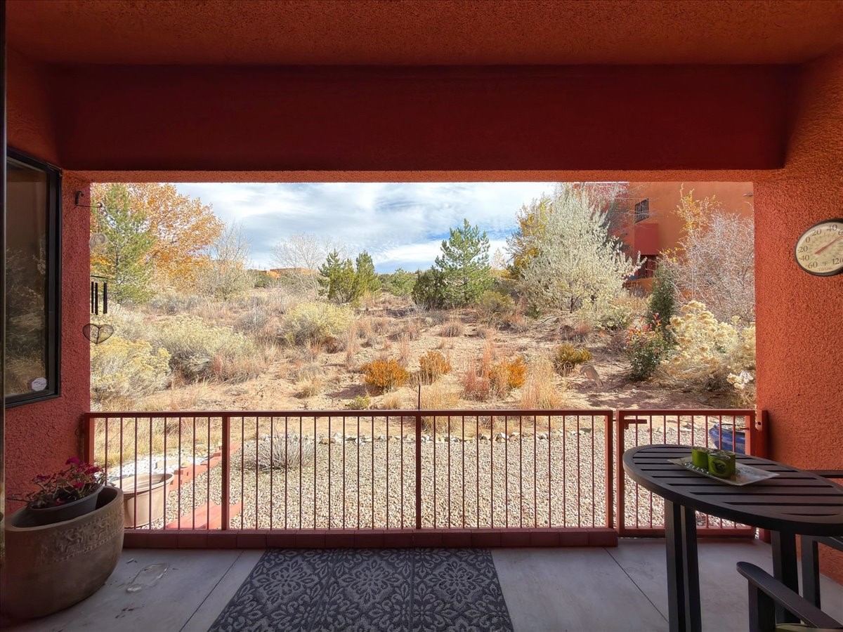 This ground-floor, single-level 1-bedroom, 1-bath home offers efficient, low-maintenance living just one mile from the Santa Fe Plaza. The private back patio opens to native landscape and open space, providing a quiet, natural setting. Inside, you'll find a functional kitchen with a large pantry, a light-filled bedroom with views, and a spacious bathroom featuring a large walk-in shower. A private garage with abundant storage adds convenience for full-time or part-time residents.The community offers well-kept amenities including a pool, hot tub, fitness center, and clubhouse. The location provides quick access to the DeVargas Center for groceries and daily essentials, as well as easy routes to 599, north 285, and nearby biking and hiking trails.This home is an excellent option for anyone seeking comfort, convenience, and a peaceful connection to the surrounding landscape.