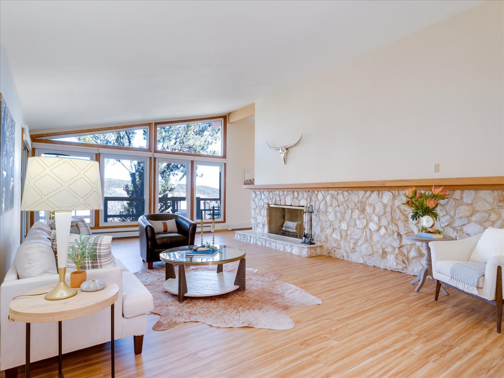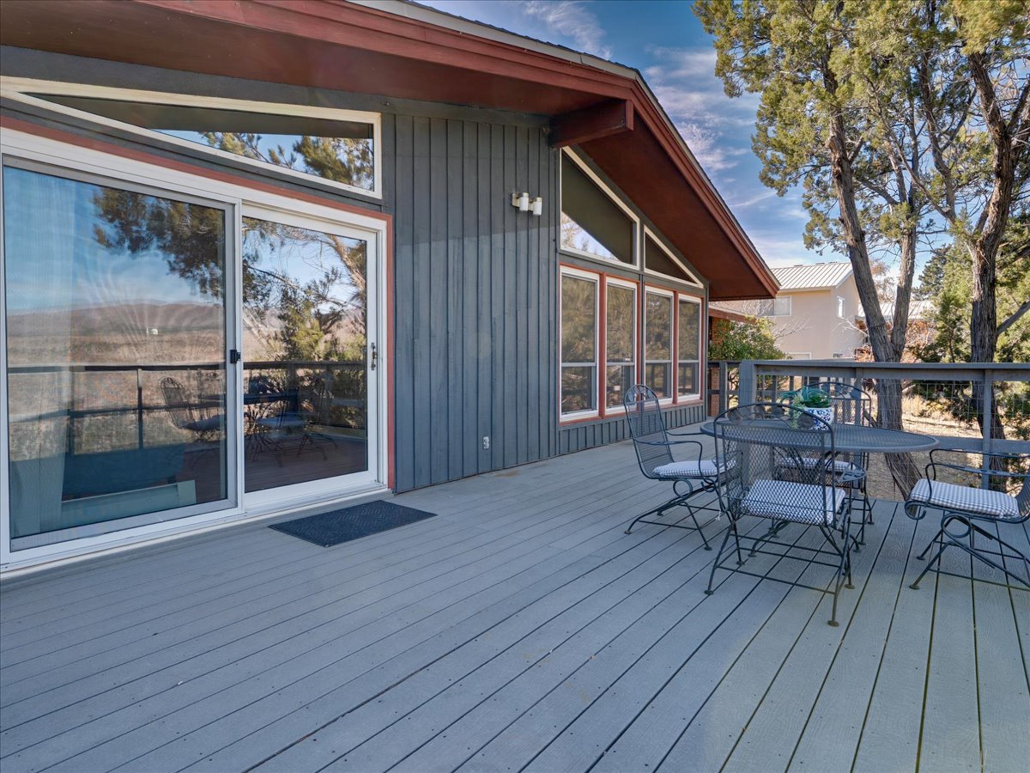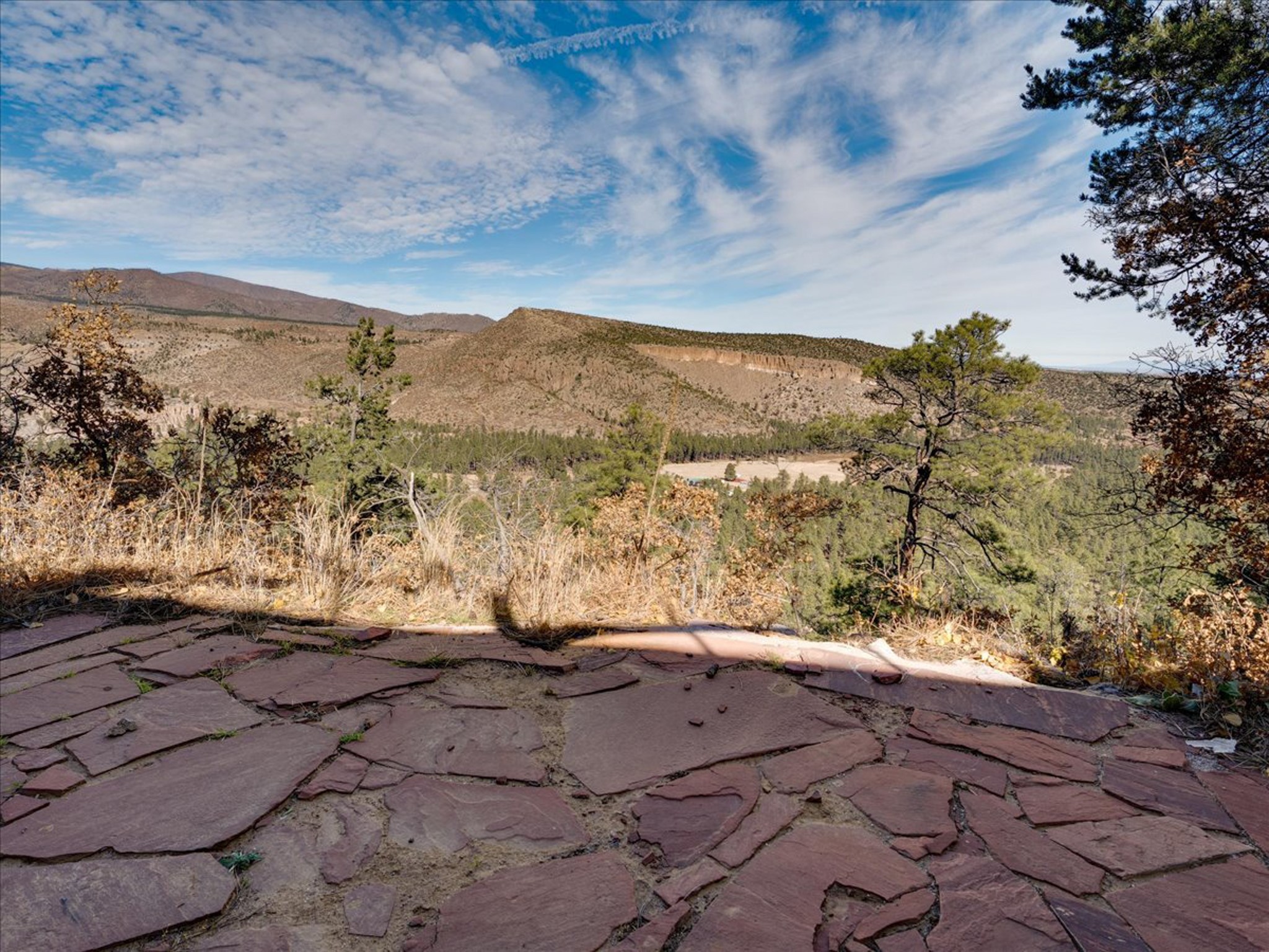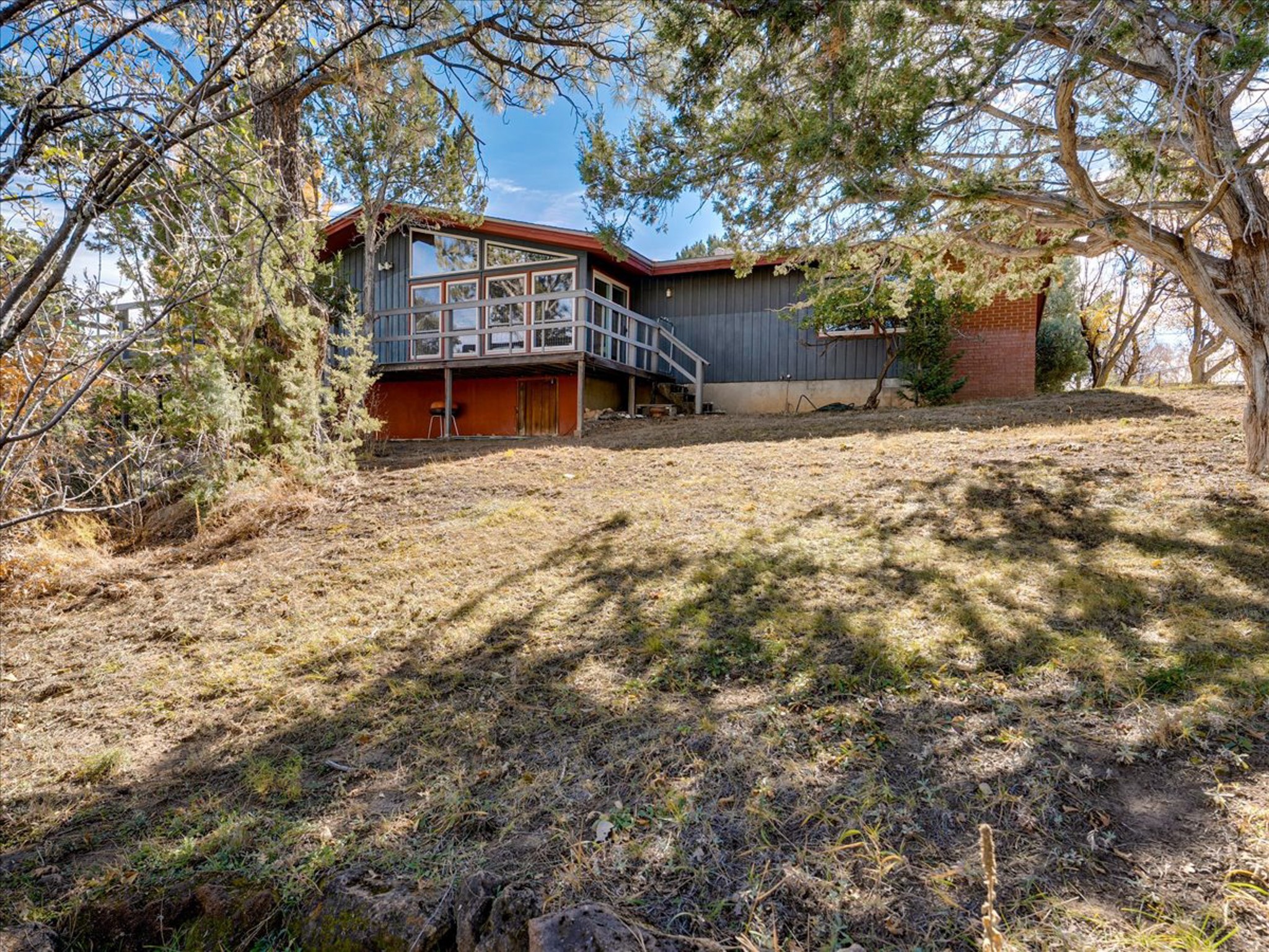 Stunning Barranca Mesa home overlooking Rendija Canyon. Perched on a generous 0.335-acre canyon lot, this property offers the best of both worlds - expansive outdoor space paired with sweeping canyon views. Mature pine trees provide natural beauty, shade, and privacy. Inside, a spacious living room features floor-to-ceiling picture windows and a striking raw-edge quartz fireplace with a wraparound mantle that flows into the dining room, which is large enough to serve as a second living area. The bright white kitchen offers ample room for an eat-in nook, pantry, and the adjacent laundry room provides direct garage access, functioning perfectly as a mudroom or drop zone. The primary suite includes a built-in vanity, a walk-in closet, and large windows facing the canyon. Three additional bedrooms and a guest bath complete the floor plan. From the dining room, step out onto a lovely balcony overlooking the canyon, ideal for morning coffee or evening sunsets. You'll also find a fenced dog run with low-maintenance artificial turf, perfect for pets. Recent updates include a new roof (2024), a new heating system (2025), new flooring (2025), a refrigerator (2025), interior paint (2025), new blinds in the living room, family room, kitchen, and a bedroom (2025), and newer double-pane windows (2005). This is a rare opportunity to own a beautiful home with unmatched canyon views on Barranca Mesa. This one is not to be missed! Schedule a private showing today. Disclosure: Owner Broker