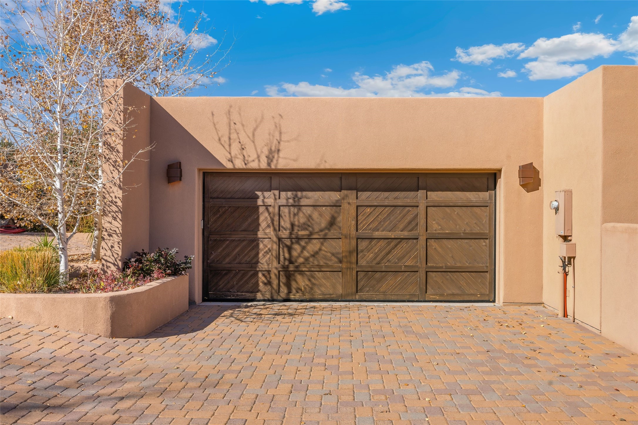 Experience a rare Northern New Mexican architectural gem in the heart of the famed Las Campanas community. Sited on an expansive, premier golf course lot with a park-like ambiance, this extraordinary 4-bedroom residence seamlessly blends iconic Santa Fe warmth with sophisticated modern design. From the lush aspen-lined entrance and wrap-around porch, the home invites you through four sets of French doors into a private front courtyard. Inside, the open-concept living and dining rooms captivate with soaring pitched ceilings, reclaimed wood beams, and a commanding stone fireplace. Newly installed retractable glass walls frame majestic views of the golf course and the Sangre de Cristo and Jemez mountains, creating a seamless, luxury indoor and outdoor living experience. The chef's kitchen is an entertainer's dream, featuring a massive stone-topped island, premium Thermador appliances, and a breakfast bar with direct access to the outdoor BBQ. Retreat to the secluded owner's suite--a sanctuary of peace offering a spa-like bath with a deep soaking tub, dual vanities, and private access to a tranquil outdoor spa. Designed for versatility, the floor plan includes a dedicated office with rich built-ins, two spacious guest bedrooms which share a bath, and a fully independent guest ensuite that serves as a secondary primary suite. Outside, the expansive living areas are surrounded by mature aspens, with over 1,700 square feet of covered portals, creating an unrivaled setting for grand gatherings or quiet reflection. With a recently updated roof, refreshed bathrooms, and meticulous craftsmanship, this one-of-a-kind home represents the absolute pinnacle of Santa Fe living.