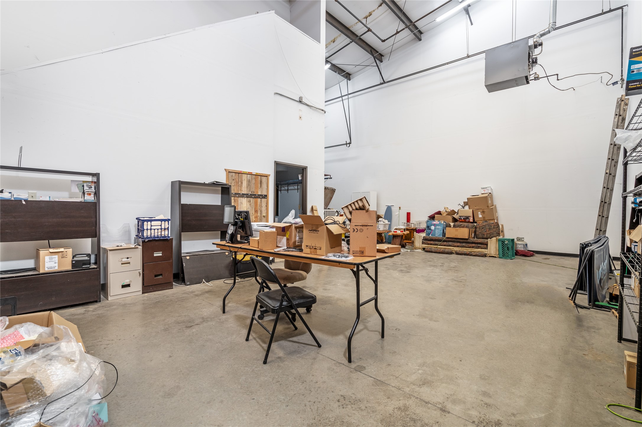 - Warehouse with Office, Kitchen and living space. - 100% leased to a tenant on Month to Month.- Upstairs includes a kitchenette, office and living space.- Downstairs includes front office/retail space, high ceiling garage bay area and open space.- 12' Overhead Door- 23' Clear Height- Evaporative cooling and upstairs heater.- Close access to I-25 and the 599 Bypass.