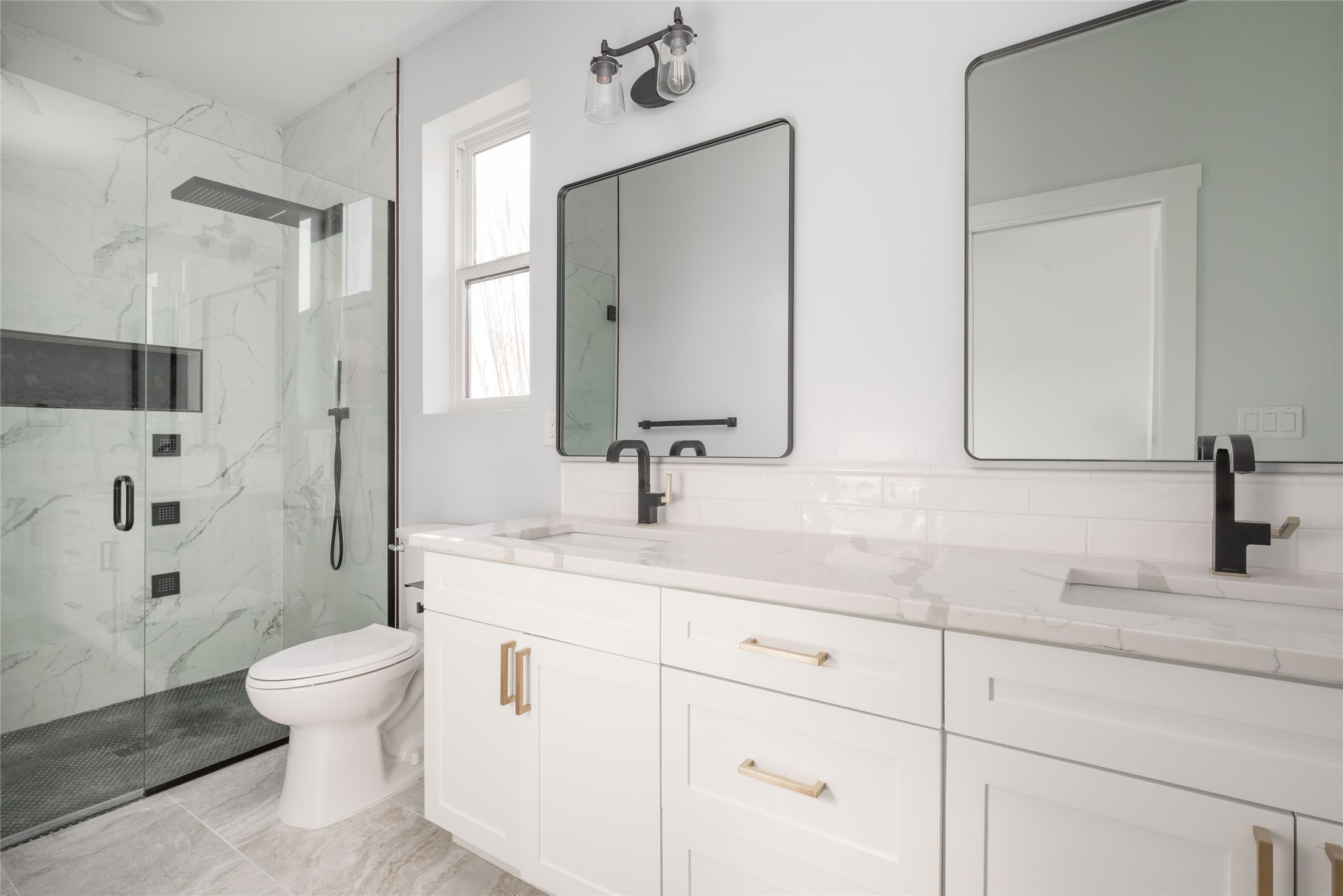 Discover exceptional new construction in the heart of Oshara Village! This beautifully crafted four-bedroom, four-bath home offers comfort, style, and smart design. The main floor showcases a luxurious owner's suite plus a versatile second bedroom or office and an additional full bathroom. A sleek, modern kitchen awaits with all-new appliances, a beverage fridge, and stunning marble counters. Upstairs, each bedroom boasts its own private ensuite bathroom. Host unforgettable summer evenings on your rooftop deck, complete with mountain-sky views. The two-car garage features an EV charger and a pristine sealed floor, and the home's roof is backed by a ten-year warranty for lasting confidence.Ideally situated across from a community park, this home offers both convenience and a beautiful setting.