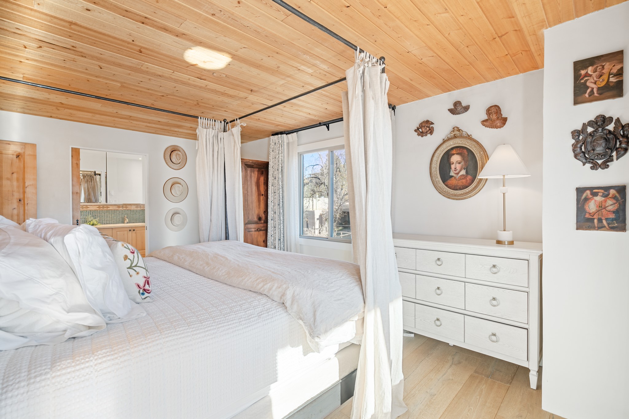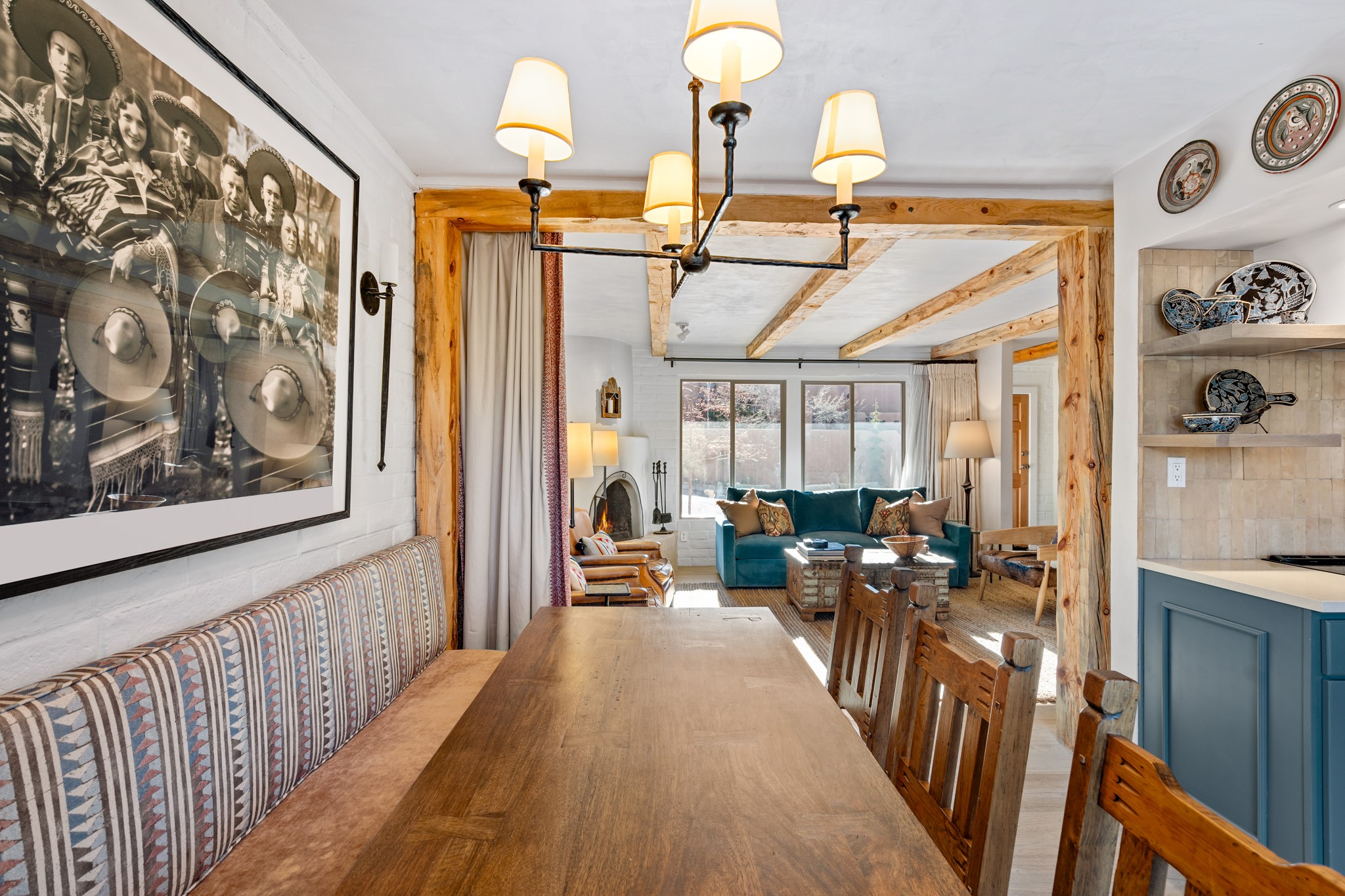 Exceptional Location & Impeccable Renovation in the Heart of Santa FeDiscover a beautifully transformed end-unit residence just moments from the Santa Fe Plaza, Canyon Road, Fort Marcy Park, and miles of scenic walking trails. This light-filled, open-concept home offers effortless living, plentiful parking, and two private outdoor spaces with sweeping mountain views, including breathtaking Jemez sunset views from the upstairs balcony.Every detail has been thoughtfully curated in this complete professional renovation. The home features engineered wood flooring, hand-troweled plaster walls throughout, custom solid wood doors, and new wood beams added to both levels for authentic Santa Fe warmth. The kitchen and half bath showcase new quartz countertops, custom cabinetry, paneled appliances, and modern fixtures. The kiva fireplace has been elegantly re-tiled, and new solar tubes illuminate the bathrooms and stairway.Additional upgrades include a tankless water heater, mini-splits, new light fixtures, and travertine tile in the bathroom. A professionally landscaped yard with irrigation enhances both beauty and ease of maintenance. The property also features a new roof with a 25-year warranty, offering peace of mind for years to come.With abundant windows, mountain views, and two inviting outdoor living spaces, this home offers an exceptional blend of comfort and convenience. Ideally located near downtown and Fort Marcy Park, which includes a gym with classes, pickleball courts, a pool, playground, and dog park, provides endless lifestyle opportunities. Luxury vacation rentals are permitted, offering outstanding flexibility for both owners and investors.