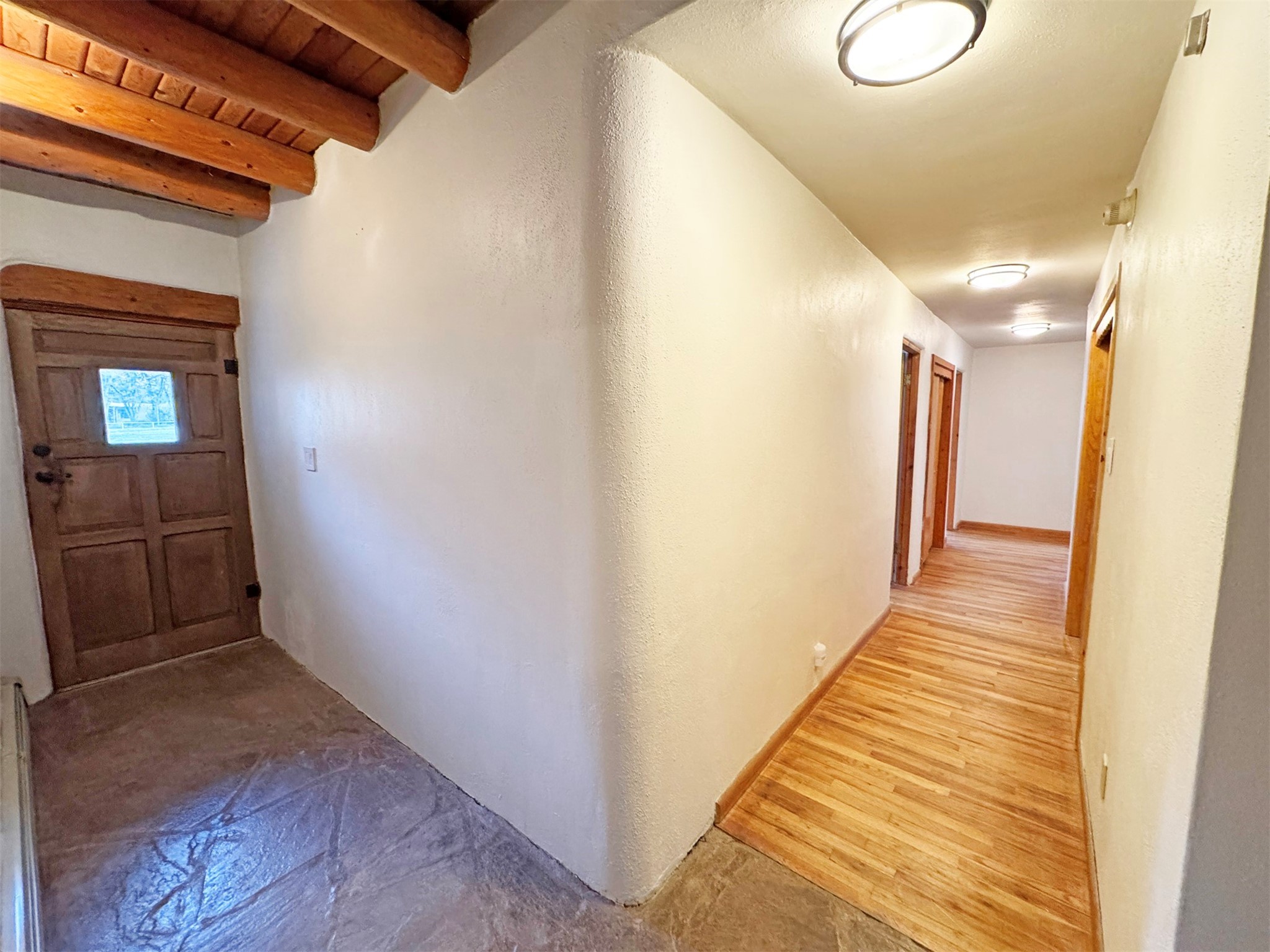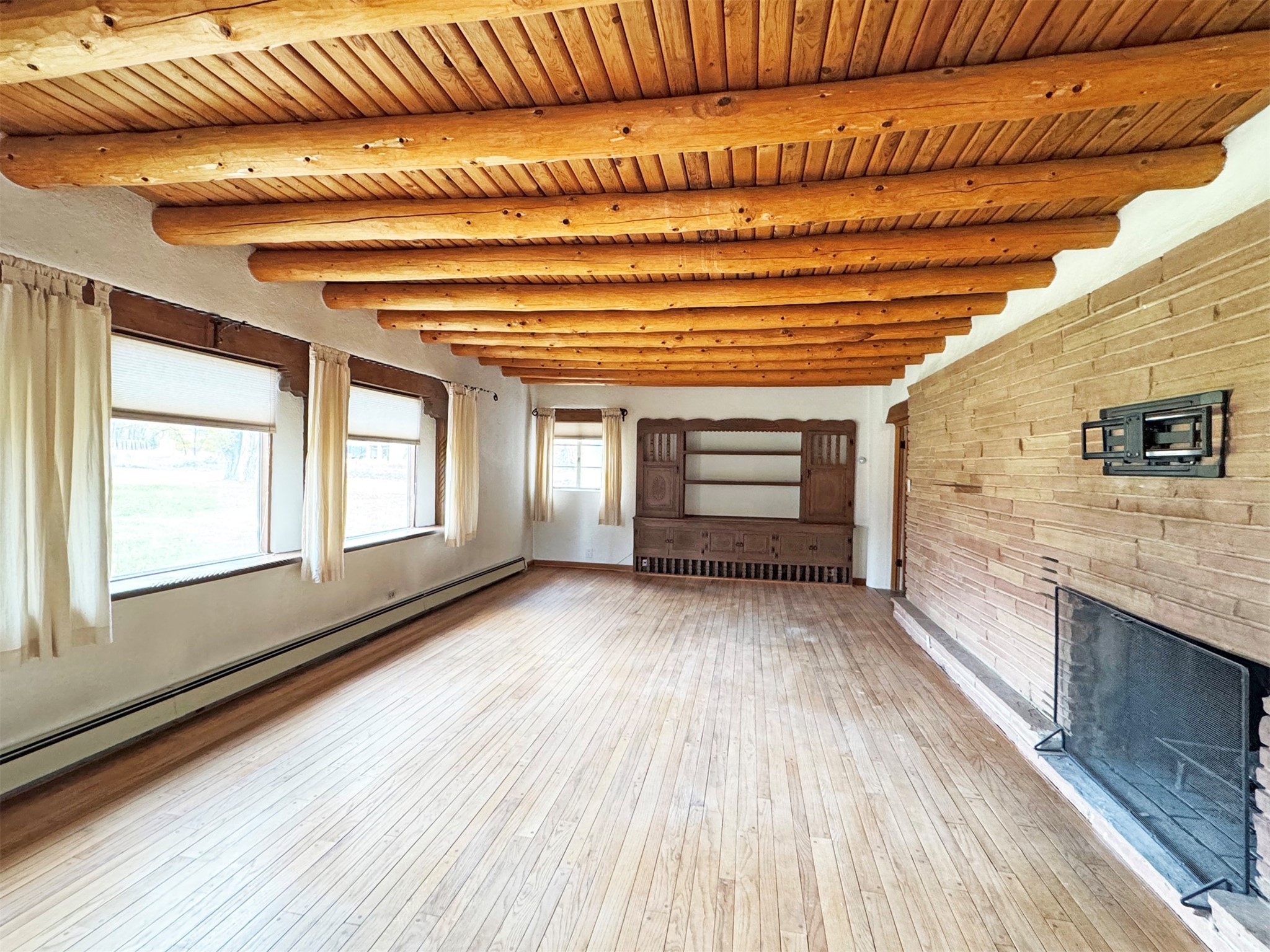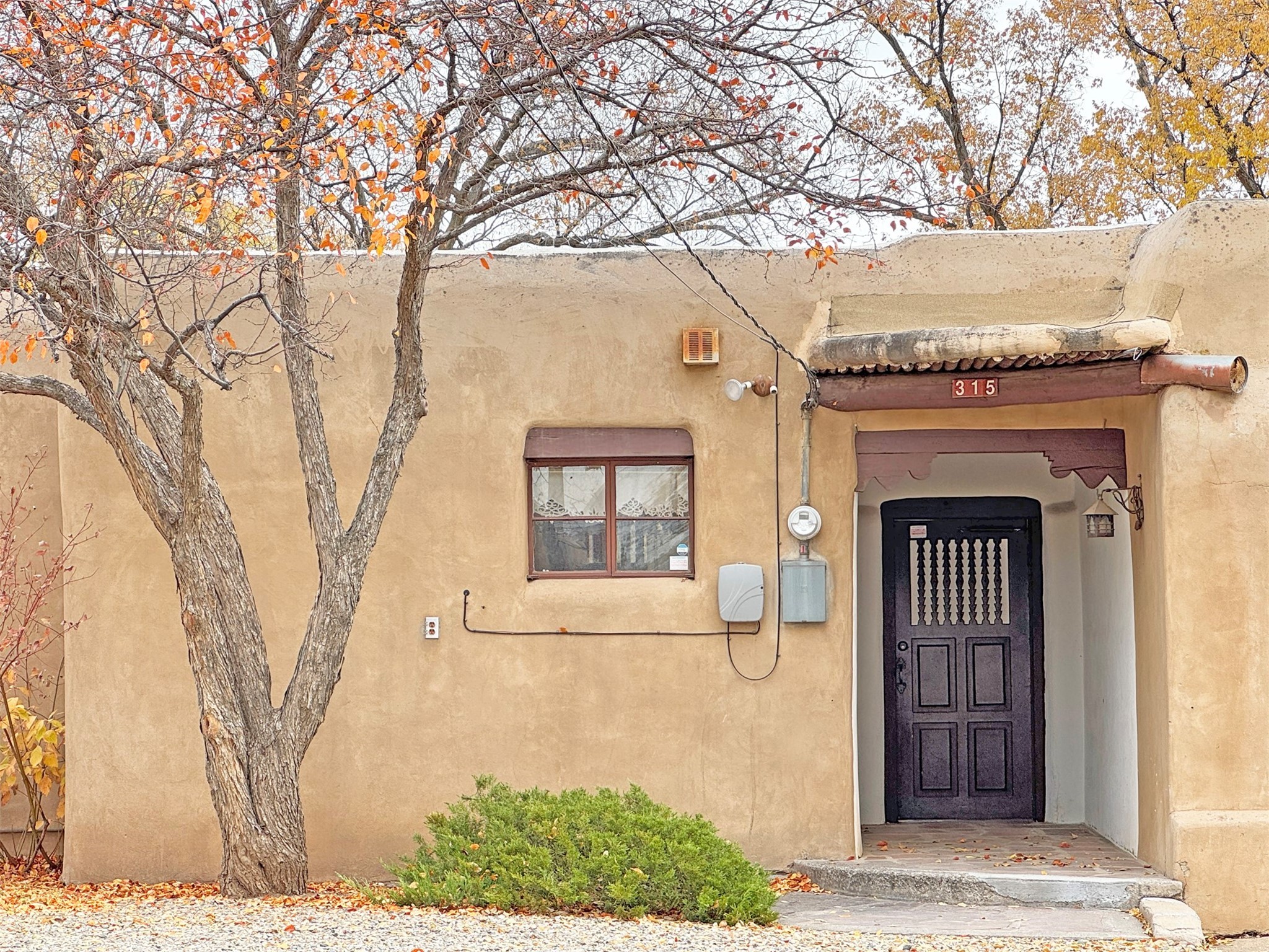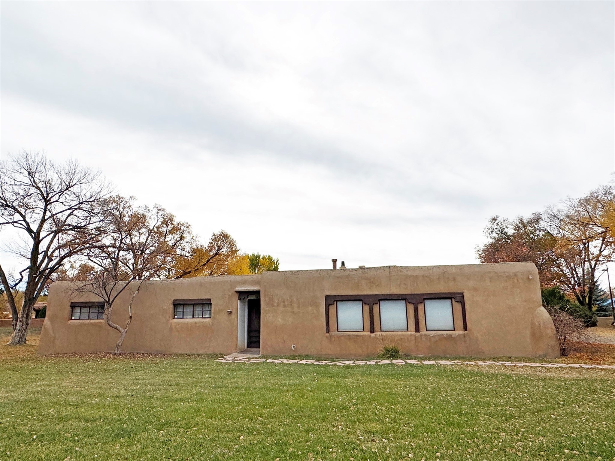 A walk to Taos Plaza estate sited on approximately one, park-like acre of land rarely comes to market! 315 Theodora Street is an authentic 2,365 square feet mid-century adobe structure located on one of Taos' premiere streets with views of Taos Mountain and the Sangre de Cristo foothills. This property offers such flexibility...move in now and complete cosmetic renovations over time; create a spectacular Northern New Mexican period renovation, or use it as a canvas to re-imagine a contemporary mid-century modern rebirth. Whatever choice, this property promises a smart investment with prospective equity gain in a sought after location. A traditional zaguan entry into a private courtyard through a winding portal is reminiscent of a hacienda main house. Inside double doors entry lies a stone floored foyer with a cozy fireplace study to the side, leading into a very spacious Living/Dining area with a stacked rock fireplace. Off the Living Area and Study is a kitchen with eat-in bar and a Butler's Pantry/Utility Room with separate entry. From the kitchen are stairs to an additional 484 square feet basement.