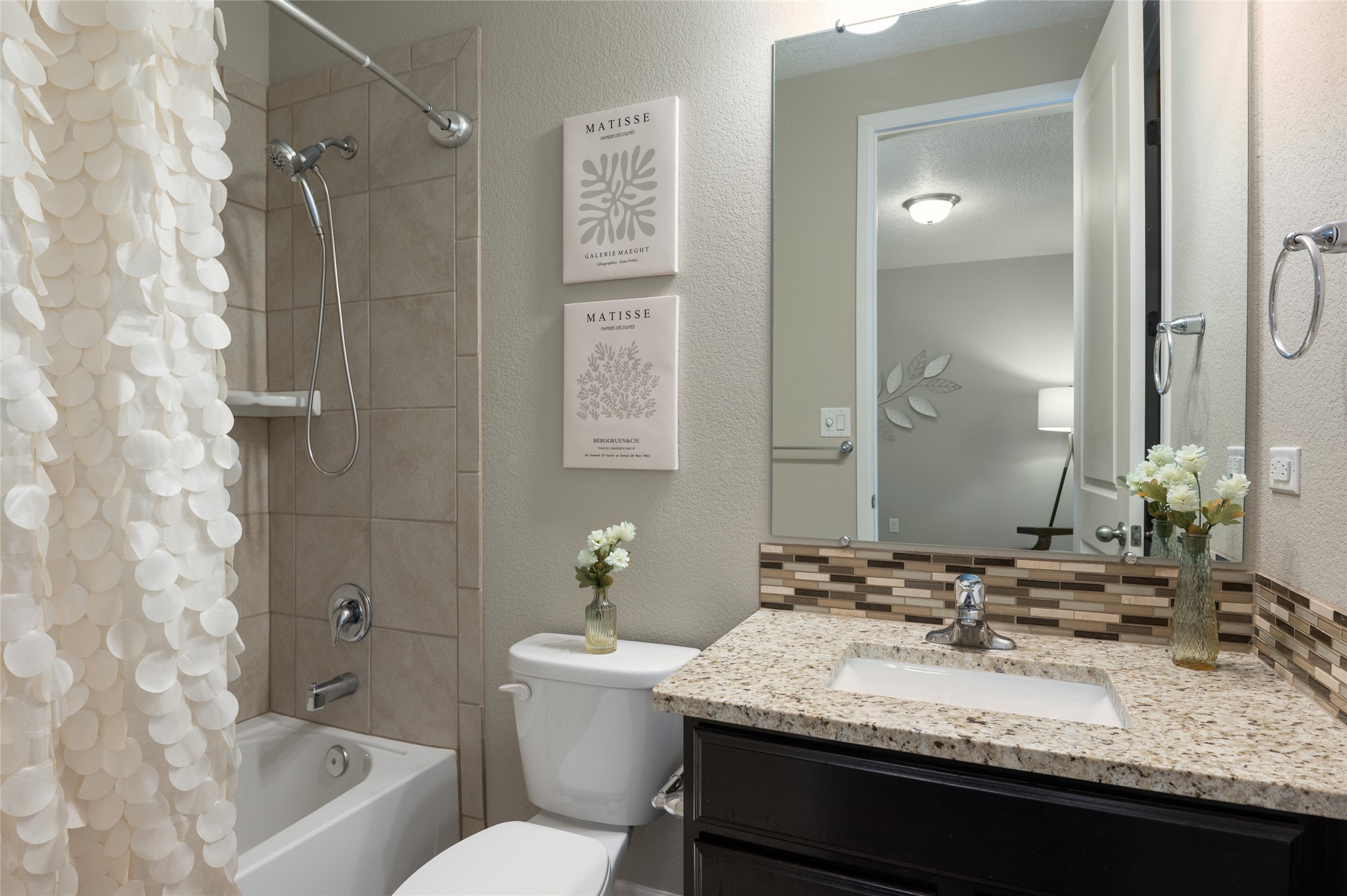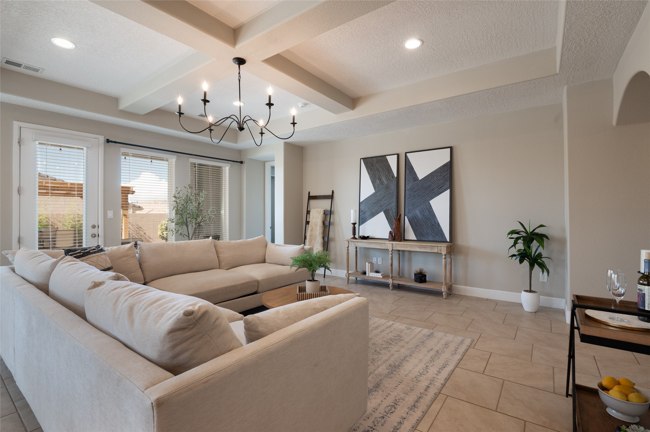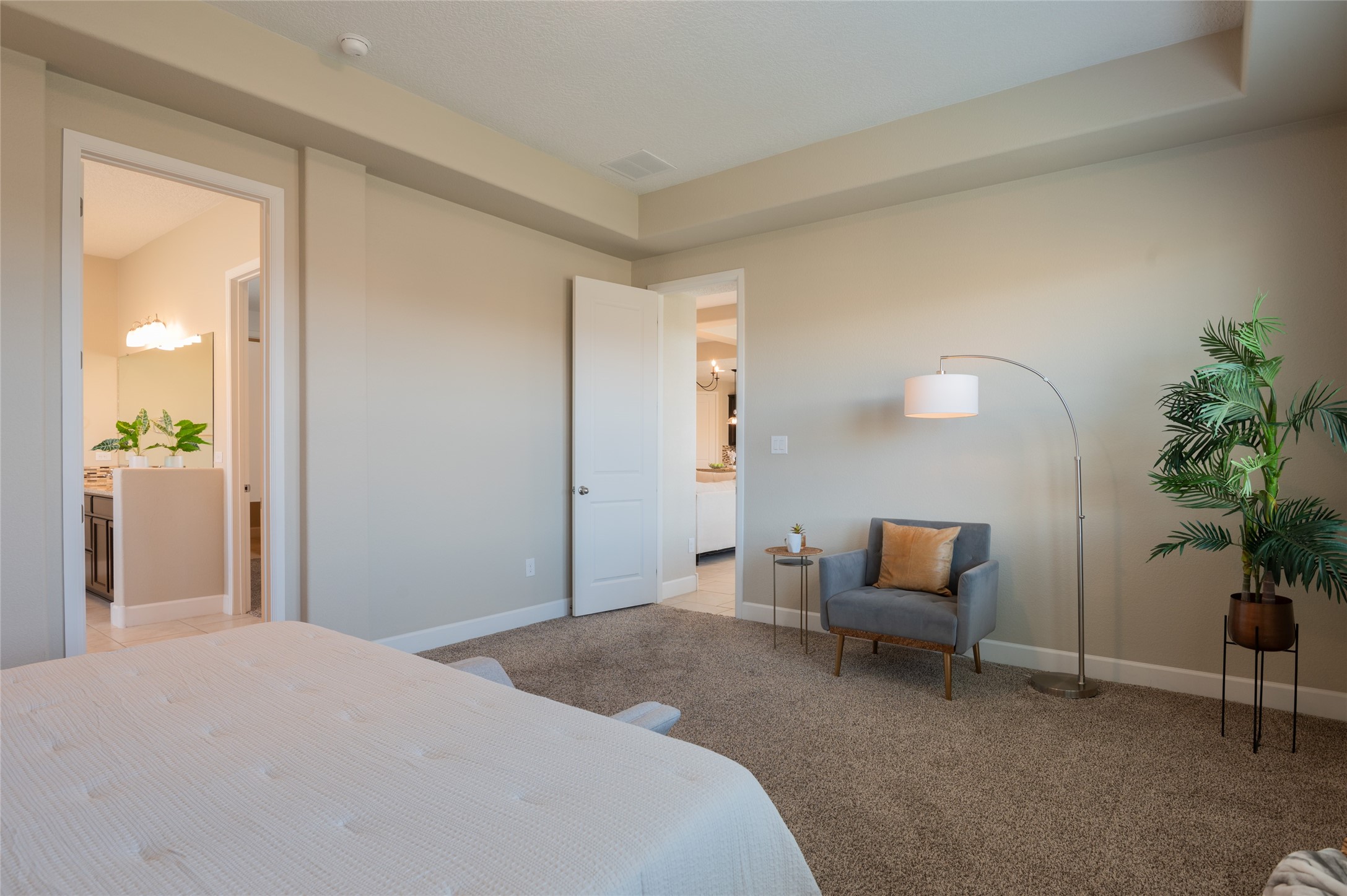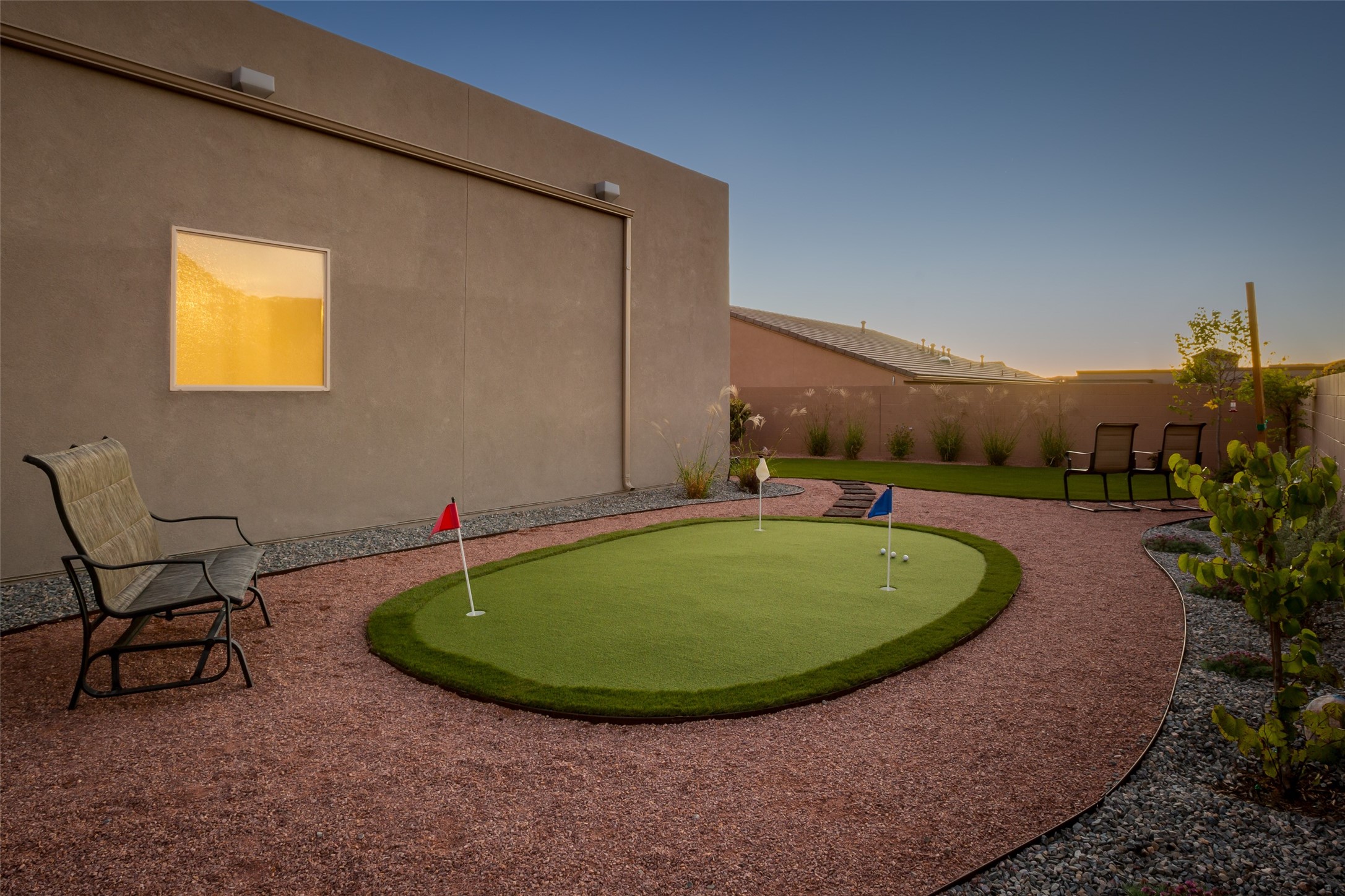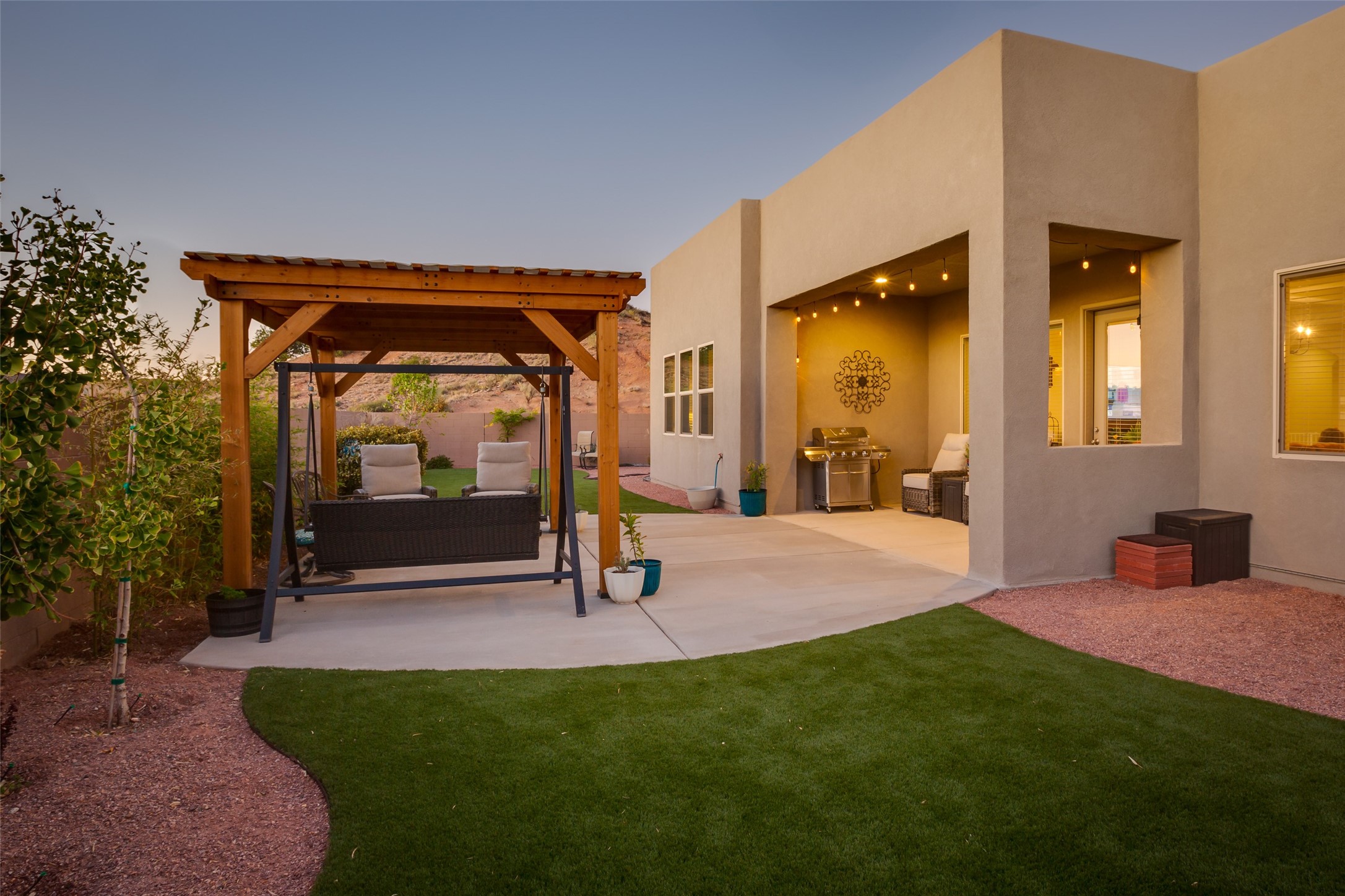 Warm, inviting home in beautiful Mariposa at the north end or Rio Rancho. Spectacular community surrounded by nature. Miles of trails, community pool and a gym. This home is located in a gated community at the end of a cul-de-sac beside open space. Secure and Serene. Spacious kitchen/dining/living area is a perfect gathering space, filled w/ natural light & offers generous counter space, gas stove, stainless appliances & walk-in pantry. The floor plan is open yet offers privacy in bedroom wings. Large primary suite w/ double sinks, separate tub, walk-in shower & large walk-in closet w/ access to laundry room. Three additional bedrooms are each connected to a bathroom, including one Jack-n-Jill & one en suite. Comfortable office space is perfect for those who work from home or can offer a second living space near bedrooms. Gorgeous custom landscaped back yard w/ pergola & putting green perfect for relaxing outdoors. Generous Three car garage.