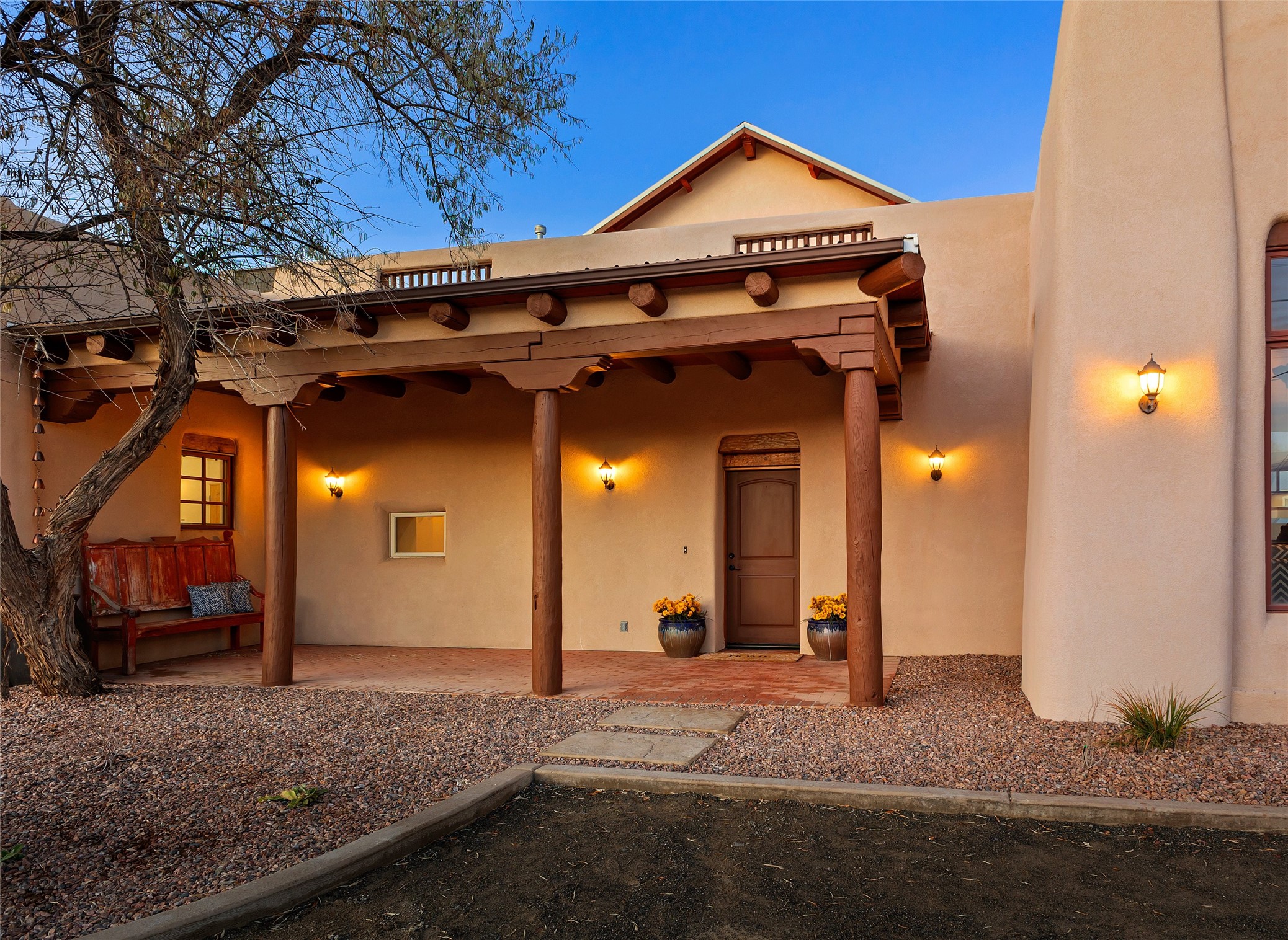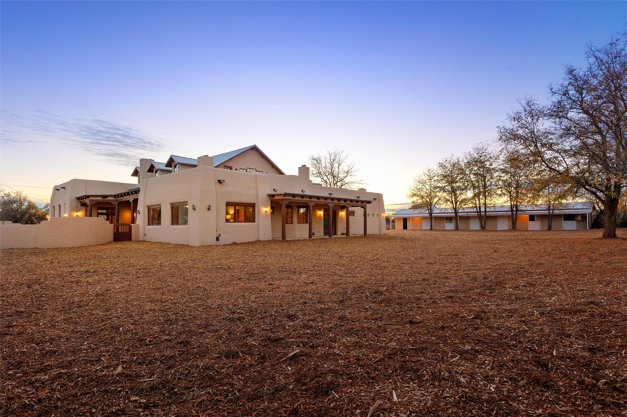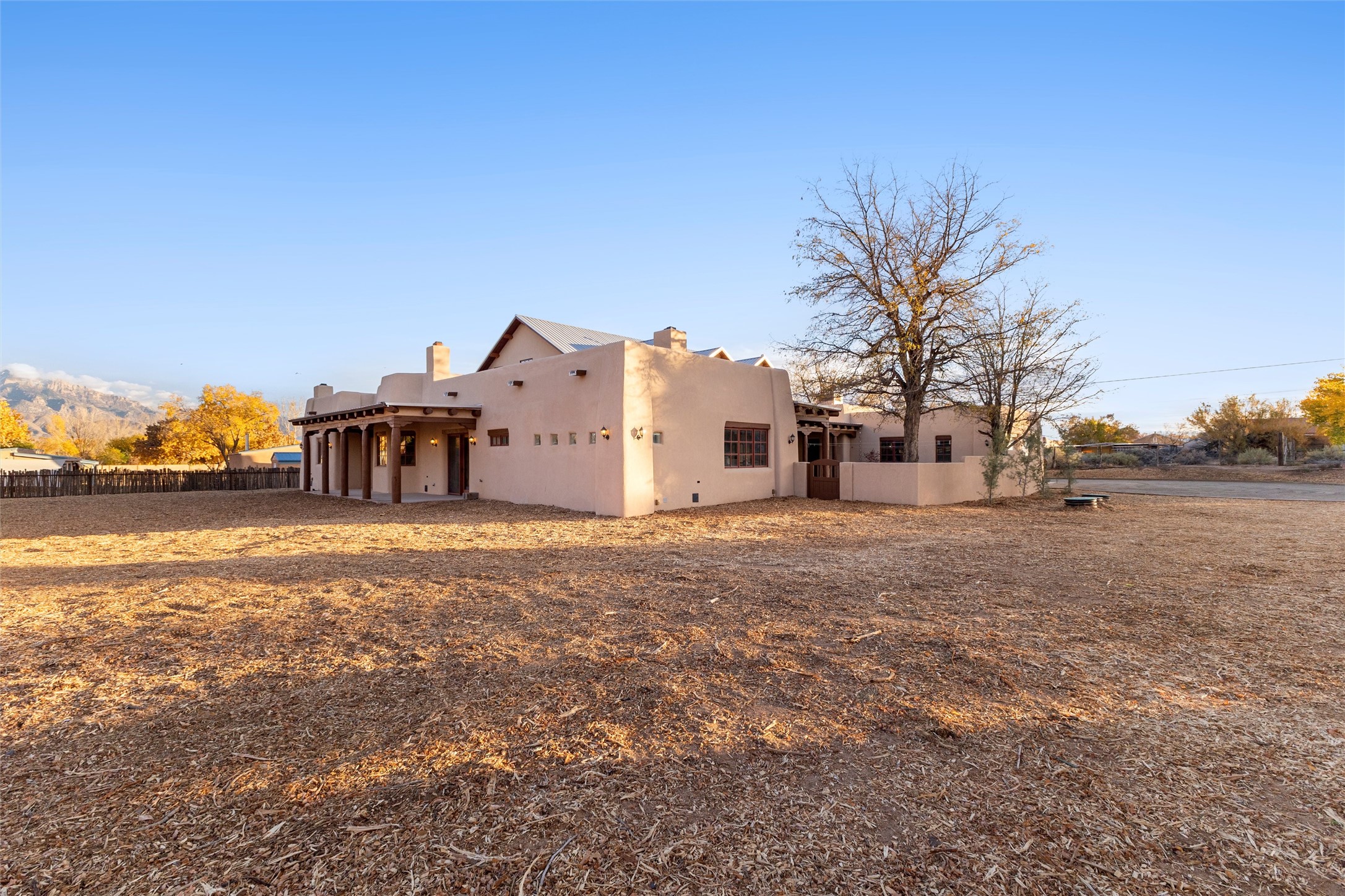 Timeless Corrales, New Mexico living with room to breathe. This expansive 6,491 sq ft, quintessential Santa Fe-style estate marries the soul of an original 150-year-old farmhouse--thick adobe walls, hand-hewn vigas, and soaring ceilings--with a thoughtful 2009 renovation that brings modern comfort and reliability. Tucked on a quiet lane, the home rests on 1.69 serene, level acres that frame lovely Sandia Mountain views and invite an easy rural lifestyle--plenty of usable space for horses, gardens, or future additions. Inside, light-washed halls and artful nichos create gallery-like display walls for sculpture and canvases. Multiple living and gathering areas open effortlessly to two lush, grassy courtyards--perfect for coffee at sunrise, al-fresco dinners at dusk, or relaxed weekend play. An updated kitchen and baths blend warm Southwestern finishes with contemporary function, while long, shaded portals extend everyday living outdoors. Generous bedrooms and flexible rooms accommodate quiet work, fitness, media, or guest needs; host a crowd or savor a private retreat with equal ease. With historic character preserved, modern conveniences in place, and a setting that feels both pastoral and connected, this is a rare convergence of history, scale, privacy, and natural beauty--right in the heart of Corrales.