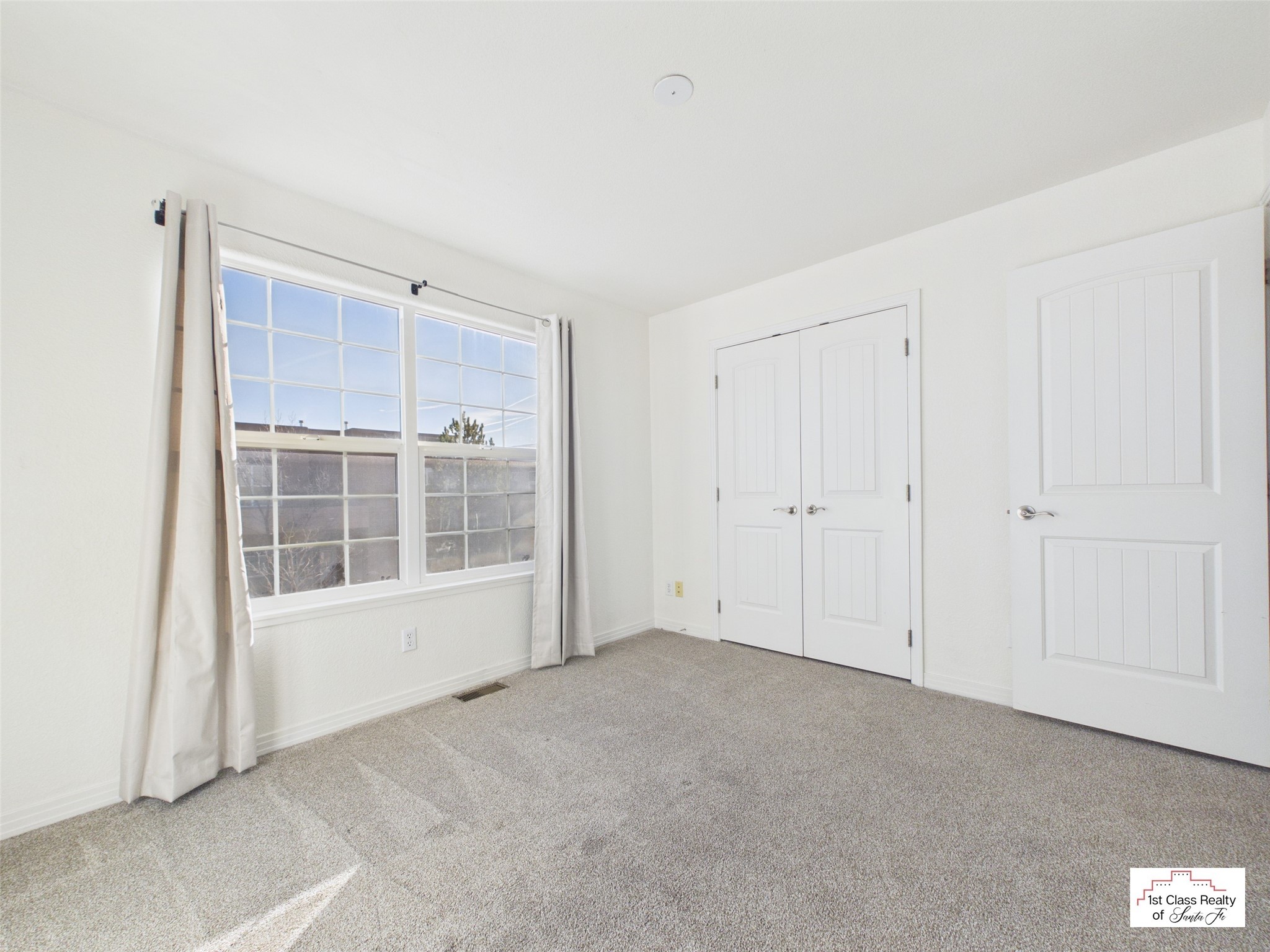 Welcome home to this contemporary pueblo-style end-unit on a corner lot in the desirable El Nido community. Light-filled interior with an open main-level living area, kitchen, and a flexible bedroom/office plus a bath. Two additional bedrooms and a full bath are located upstairs. Enjoy a private walled courtyard ideal for outdoor dining, gardening, or pets, as well as an upper deck offering expansive mountain views, sunset backdrops, and star-filled night skies. Additional features include off-street parking for two vehicles and abundant natural light throughout. Convenient south side location just minutes to SWAN Park, the Santa Fe Country Club, shopping, dining, entertainment, and the Presbyterian Medical Center. Quick access to I-25 and Hwy 599 for easy commuting to ABQ or Los Alamos. A well-kept home in a convenient area.
