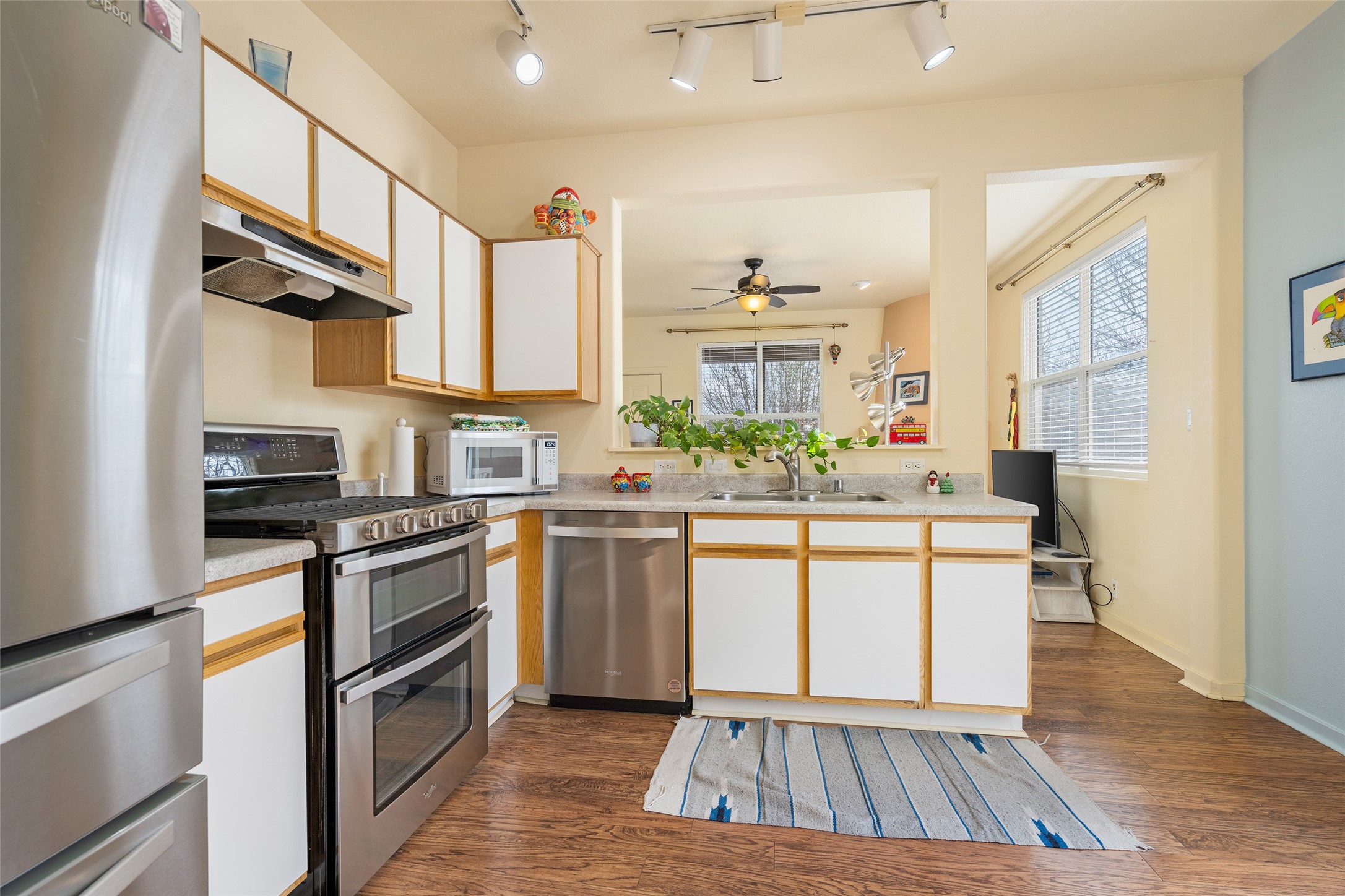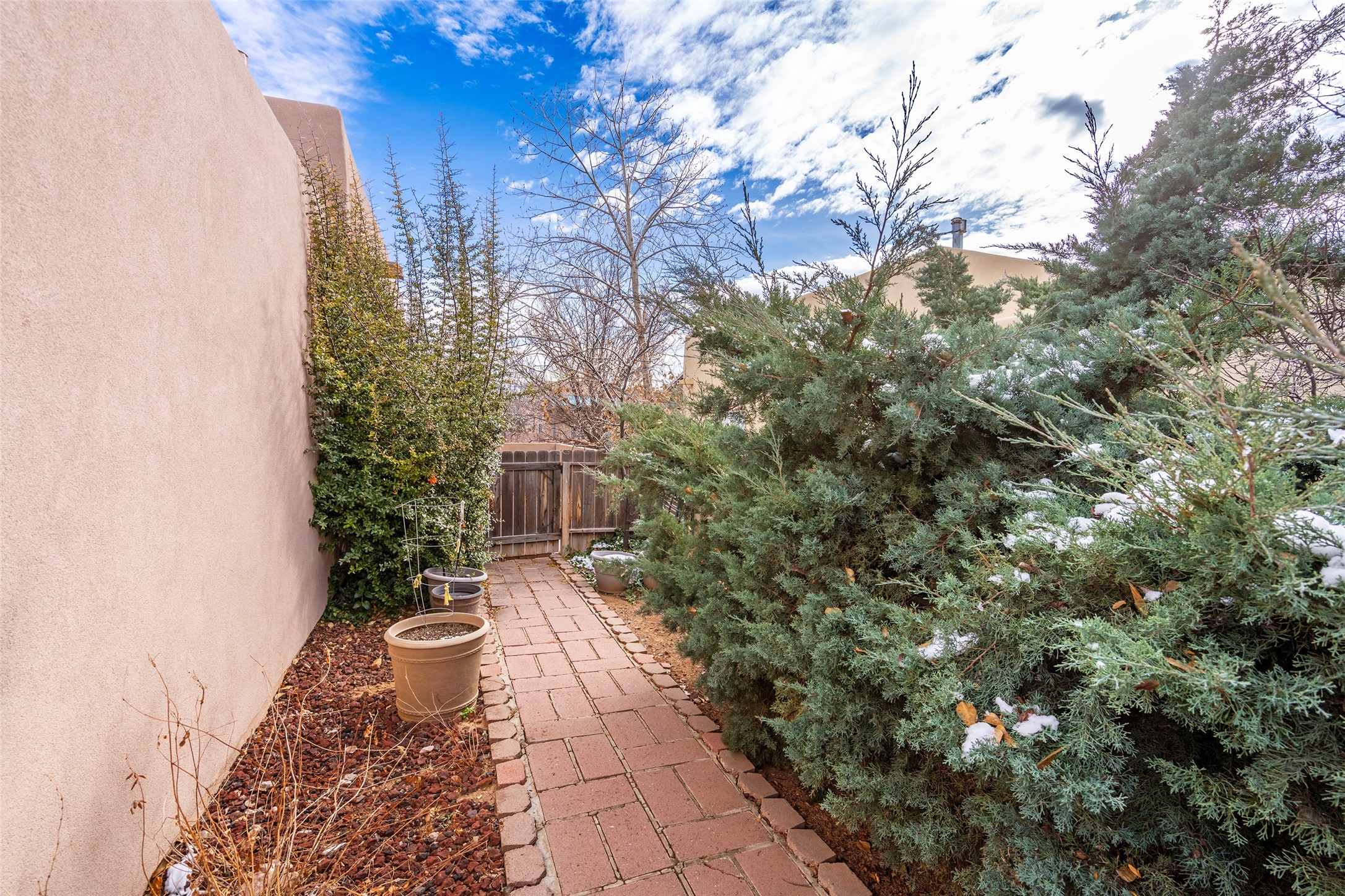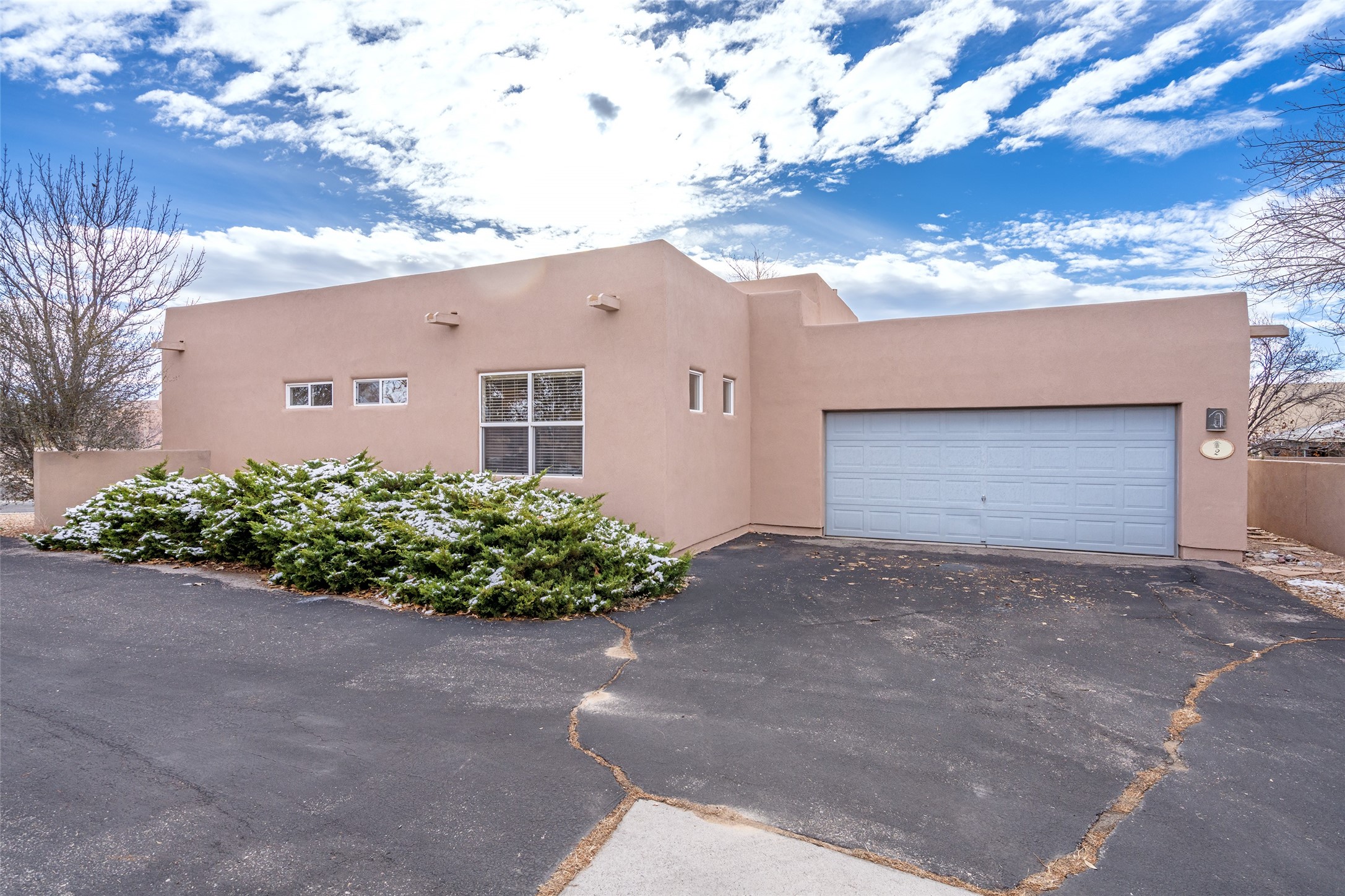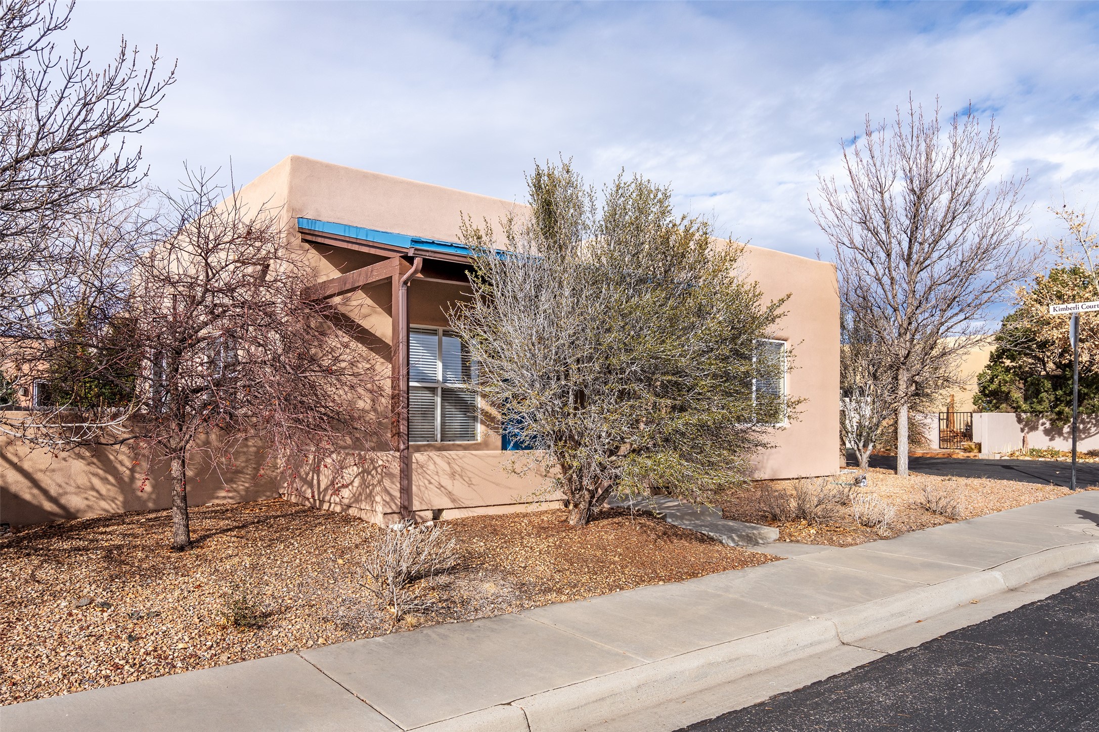 Discover this charming, well maintained, light-filled home offering approximately 1,047 sq ft in the peaceful Rancho Viejo community, boasting 12 miles of walking/biking trails and just south of Santa Fe. Surrounded by the Jemez, Ortiz, and Sangre de Cristo mountains, this residence enjoys a beautiful setting with a front yard that opens to unobstructed views--including a stunning look at the Ski Basin. The outdoor space is ideal for enjoying a relaxing lunch, cultivating a small garden, or simply taking in the surrounding tranquility. Inside, the primary bedroom features a full ensuite bathroom and a generously sized walk-in closet. The kitchen is equipped with newer appliances, a spacious pantry, and a functional layout that flows seamlessly through the bright and inviting living areas. Enjoy the home's sweet kiva fireplace on chilly days or turn on the refrigerated air to cool down in the Santa Fe summers. The home's overall floor plan is thoughtfully designed for comfort and ease and includes ample closet space for everyday living! Located just a short walk from the serene Rancho Viejo Village Park Plaza, and only one mile from Santa Fe Community College, this home offers exceptional convenience. You'll be minutes from shopping, dining, medical facilities, and enjoy quick access to I-25 and the 599 Relief Route.Brand new to the market--schedule your showing today so you don't miss this wonderful opportunity!