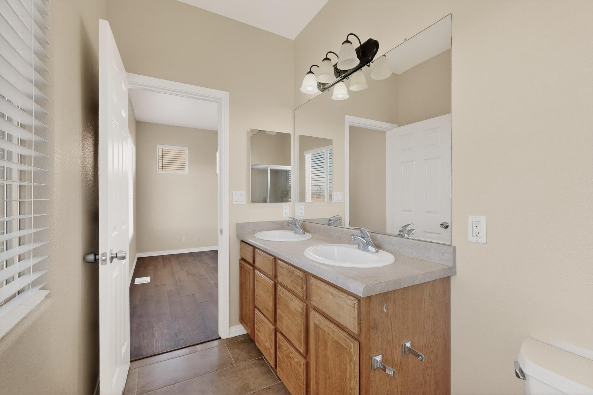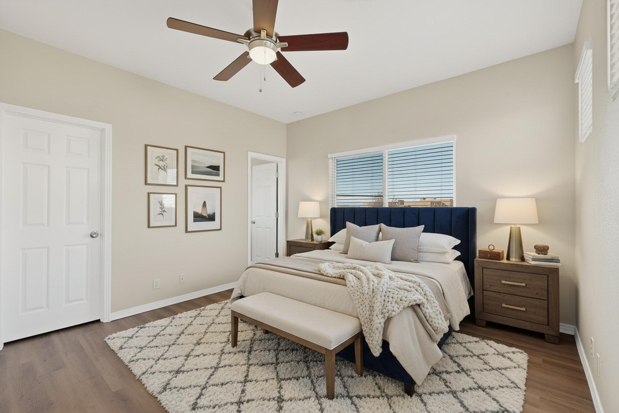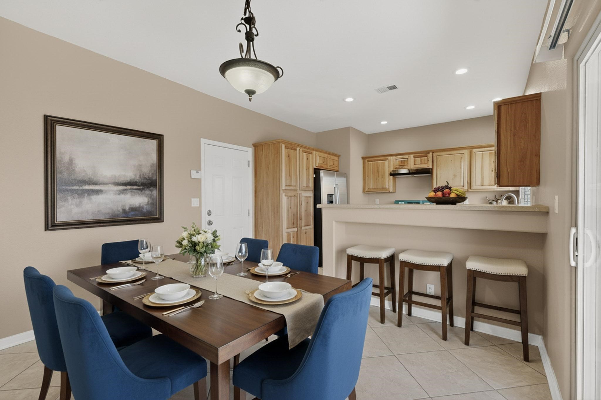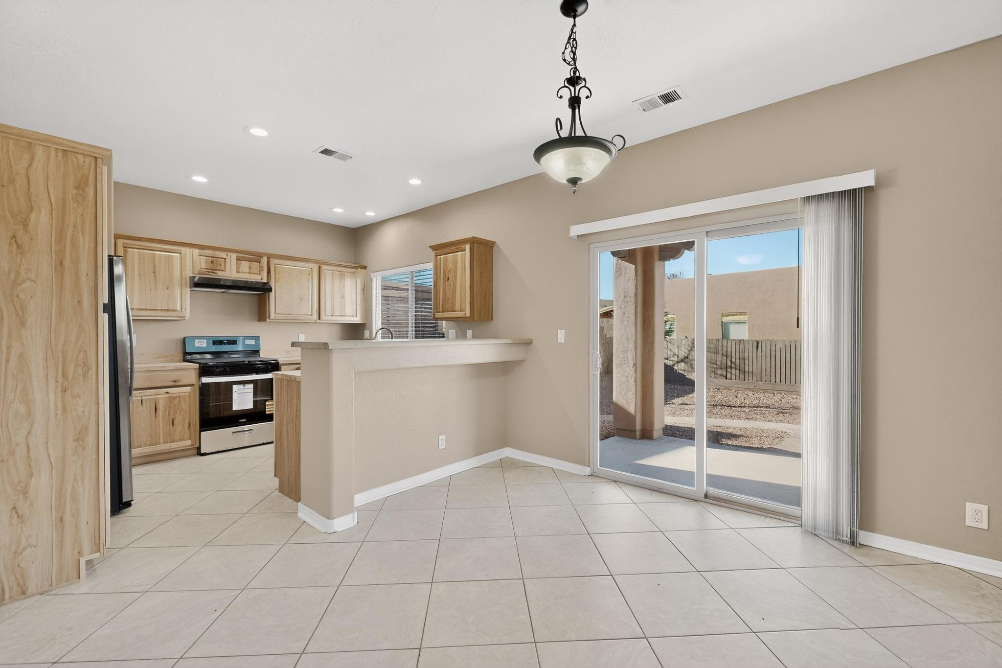 Welcome to this beautifully updated 5-bedroom, 2.5-bathroom home offering modern comfort and move-in-ready appeal! Step inside to discover fresh new flooring throughout, complemented by a brand-new paint that brightens every room. The kitchen features sleek NEW cabinets, countertops, a refrigerator, and stove--perfect for everyday living and entertaining. Outside, the curb appeal shines with NEW exterior paint, fresh xeriscape landscaping design, and freshly stained wood fencing for added privacy. The finished garage also boasts durable NEW epoxy flooring. Recent mechanical upgrades ensure peace of mind: a new water heater (less than 2 years old), new air conditioning and condenser (less than 3 years old), and a roof replaced with premium silicone foam approximately 5 years ago, backed by a 10-year guarantee from the installation date.