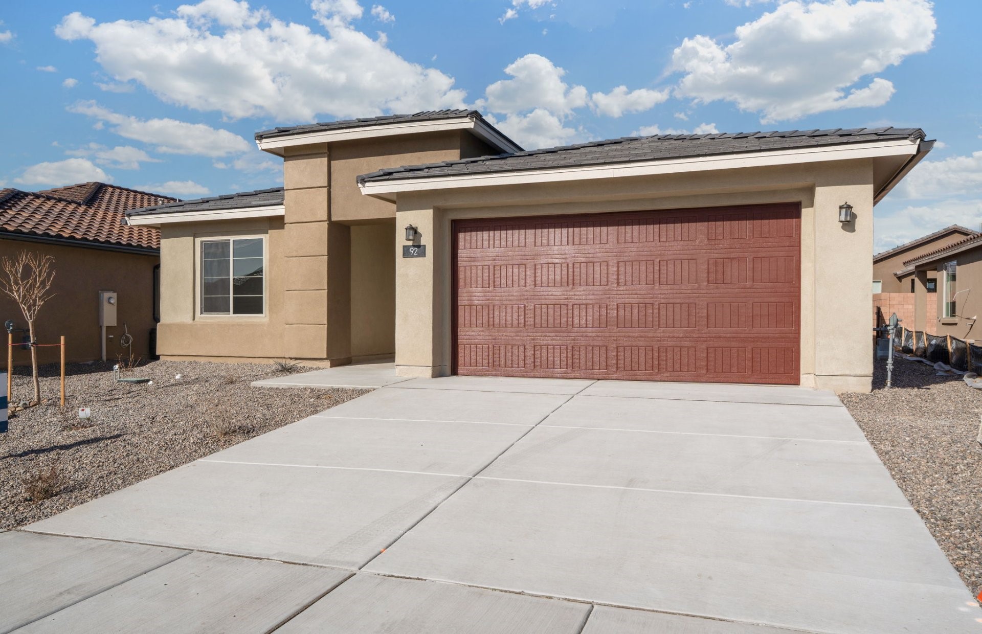 Welcome to this beautifully designed single-story home that blends comfort, function, and style. Featuring a thoughtful split-bedroom layout, this cozy home features 3 bedrooms, 2 baths and a spacious 2.5 car tandem garage. The open-concept kitchen features a large island, upgraded 42" cabinets, and gorgeous granite countertops. Beautiful tile flooring throughout . Enjoy the Santa Fe weather on the covered patio in back. You will love this home!