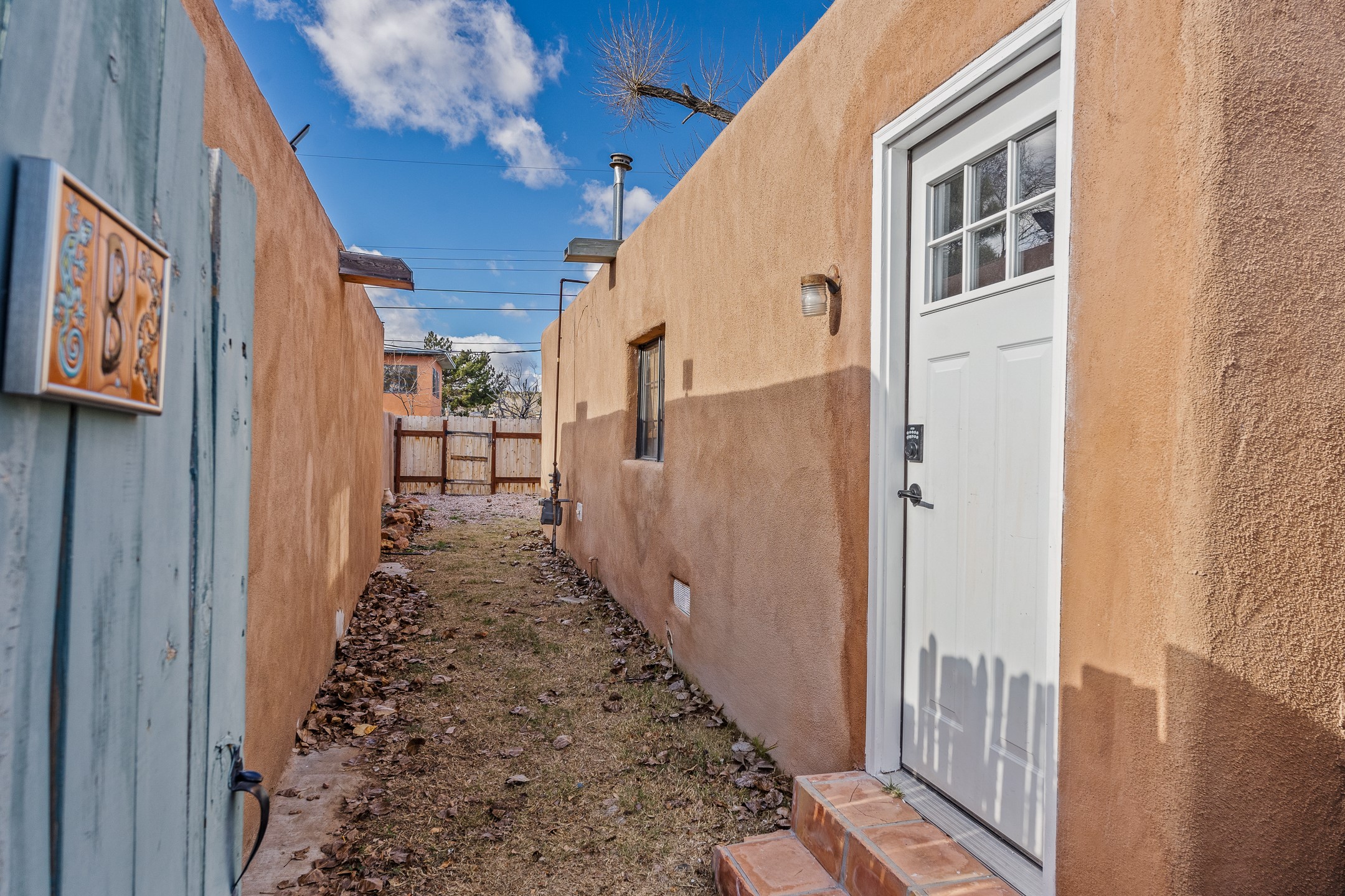 Completely remodeled and stylishly true to its mid-century roots, this three bedroom one bath house in Barrio La Canada with an attached one bed one bath is sure to wow. So much in this house has been improved or upgraded, there's nothing left to do but enjoy. The long list of upgrades includes but is not limited to new HVAC, appliances, kitchen counter tops, doors, flooring, walls and ceilings, as well as a new electrical panel and a roof sealing. The attached casita has its own entrance and yard and is just as charming as the primary. A shed in the back provides extra storage. Two miles from the plaza and short walk from the Santa Fe River, this move in ready home is convenient to everything. Priced at stated value from a recent (November 2025) appraisal.