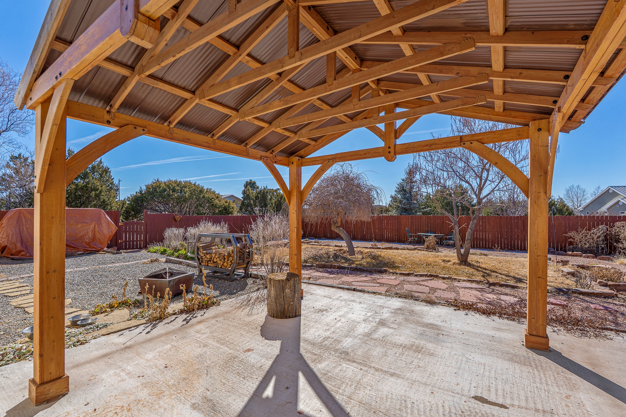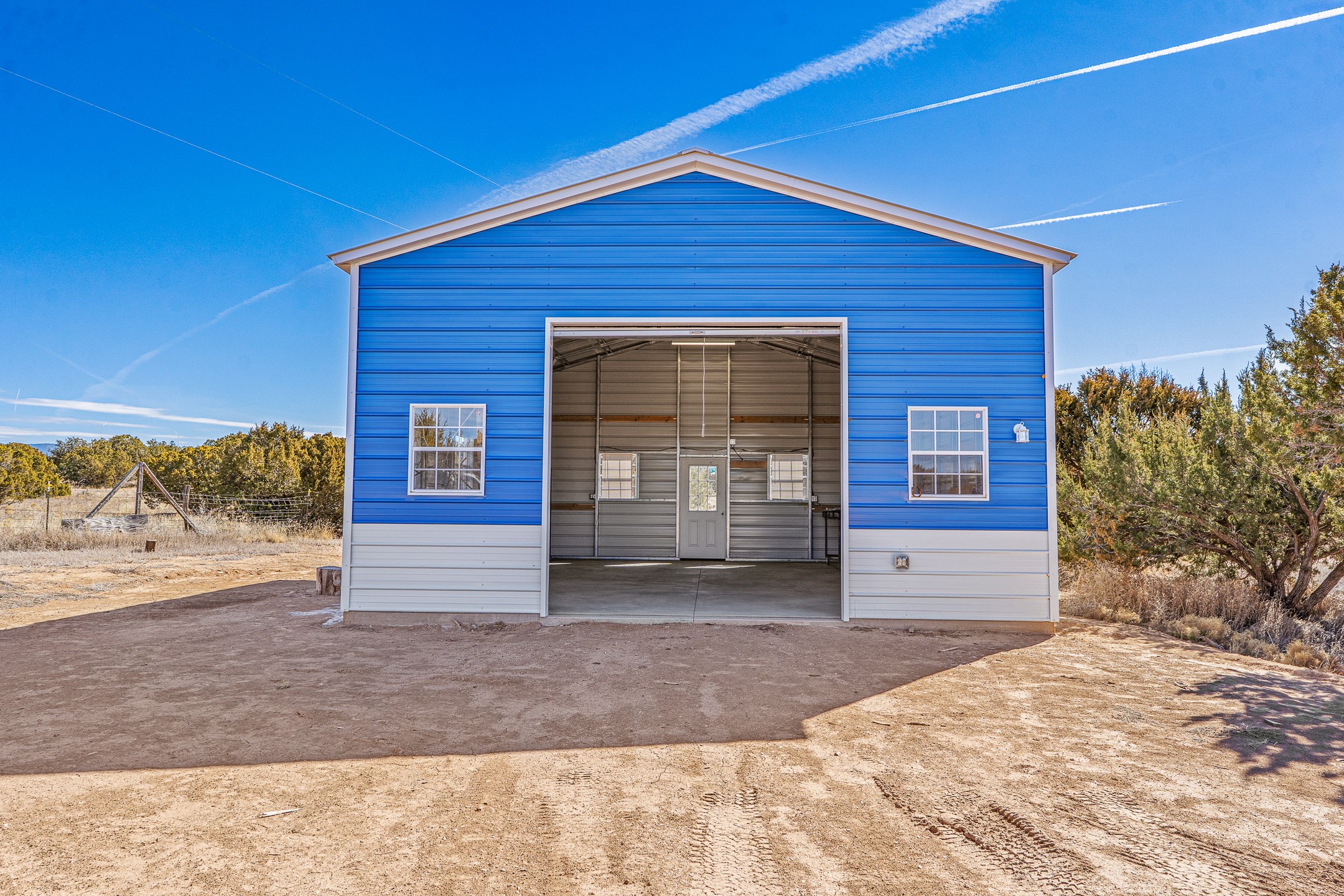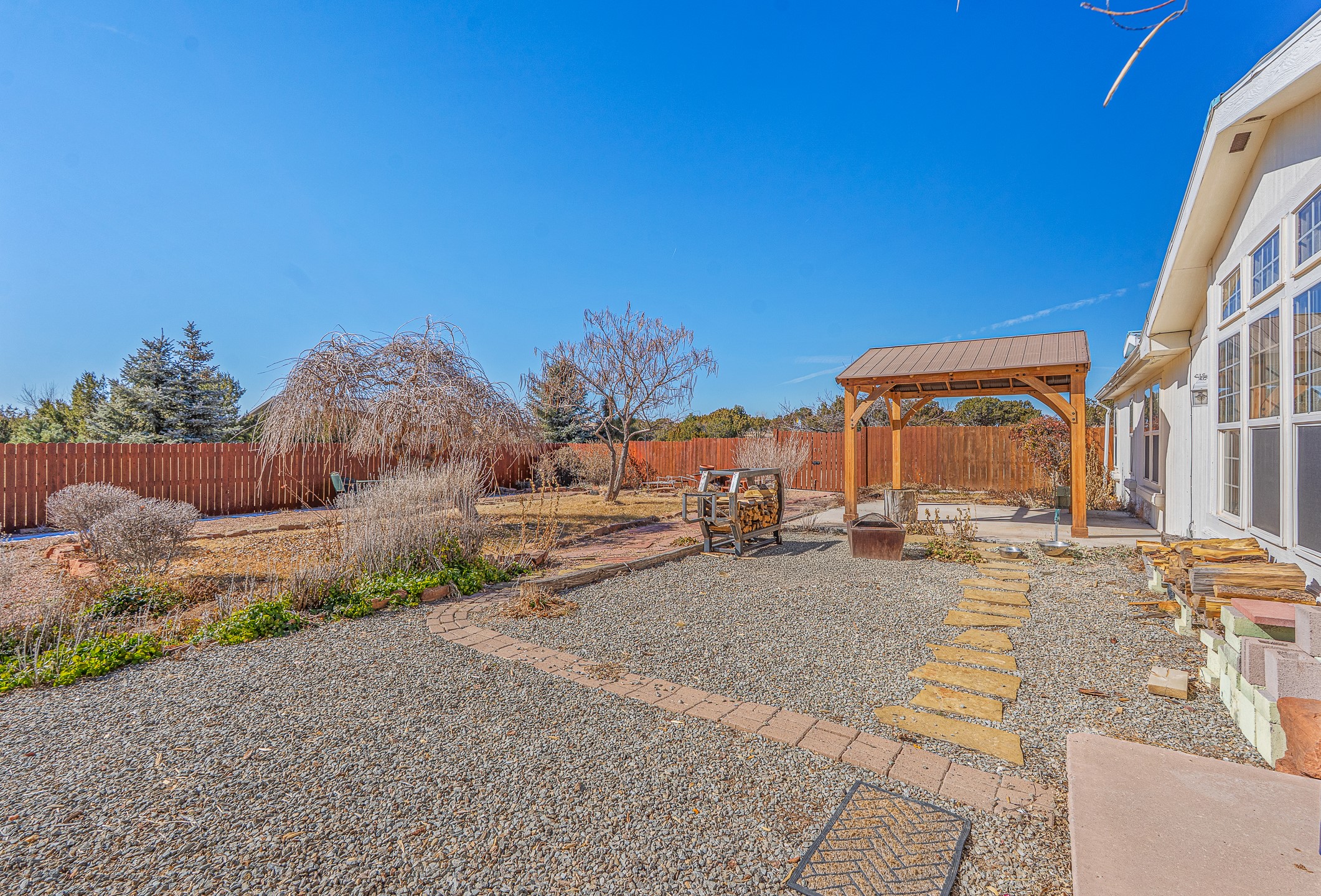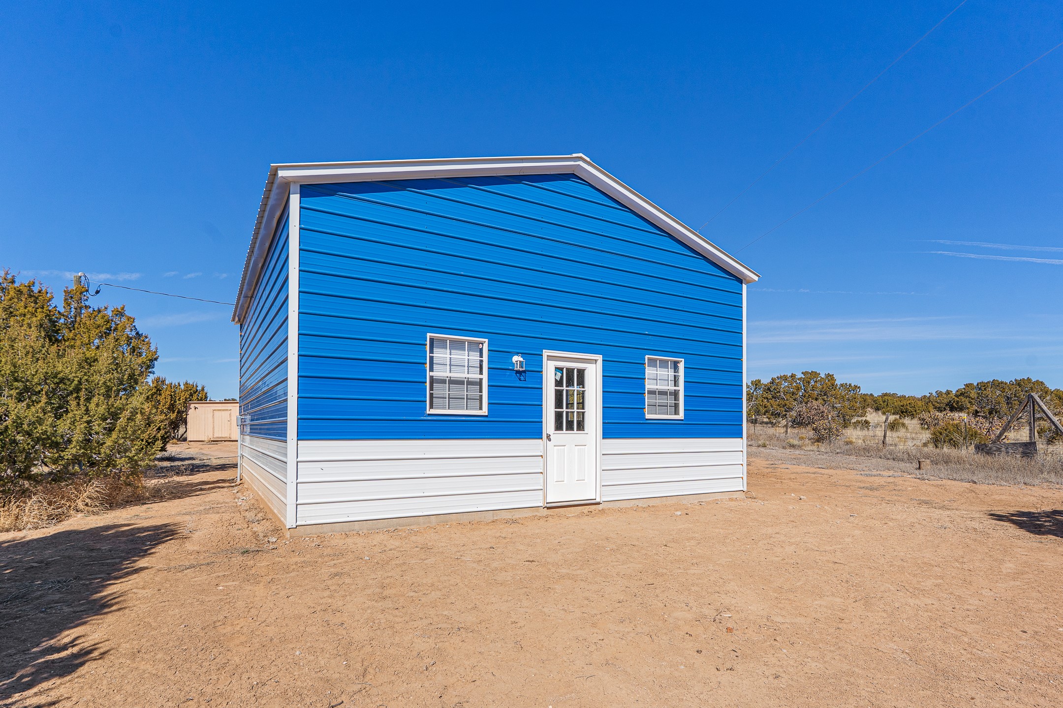 Peaceful private home in a rural setting with easy access to amenities and downtown Santa Fe. Enclosed front yard, metal roofing, refrigerated ac. Large new shop building for all your creative activities and storage. Large lot is fully fenced for your privacy and enjoyment.