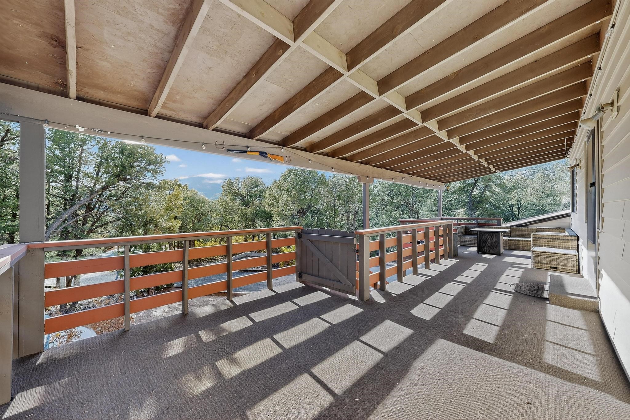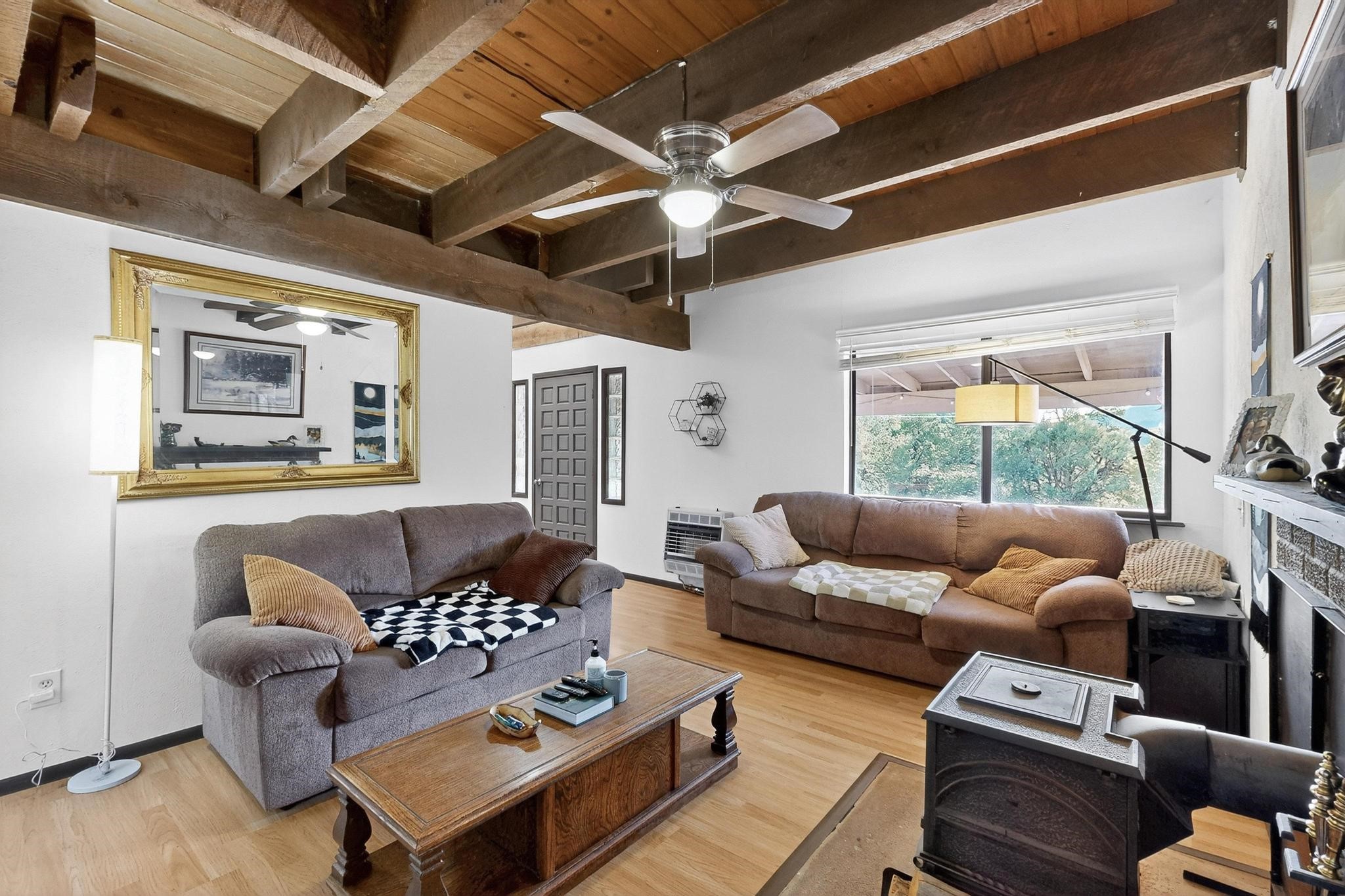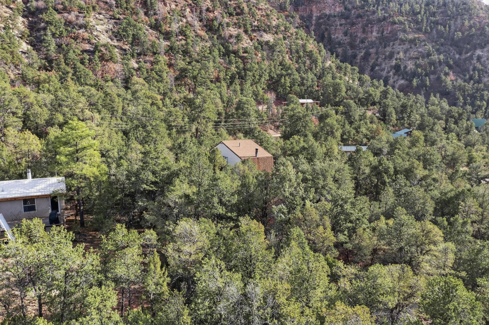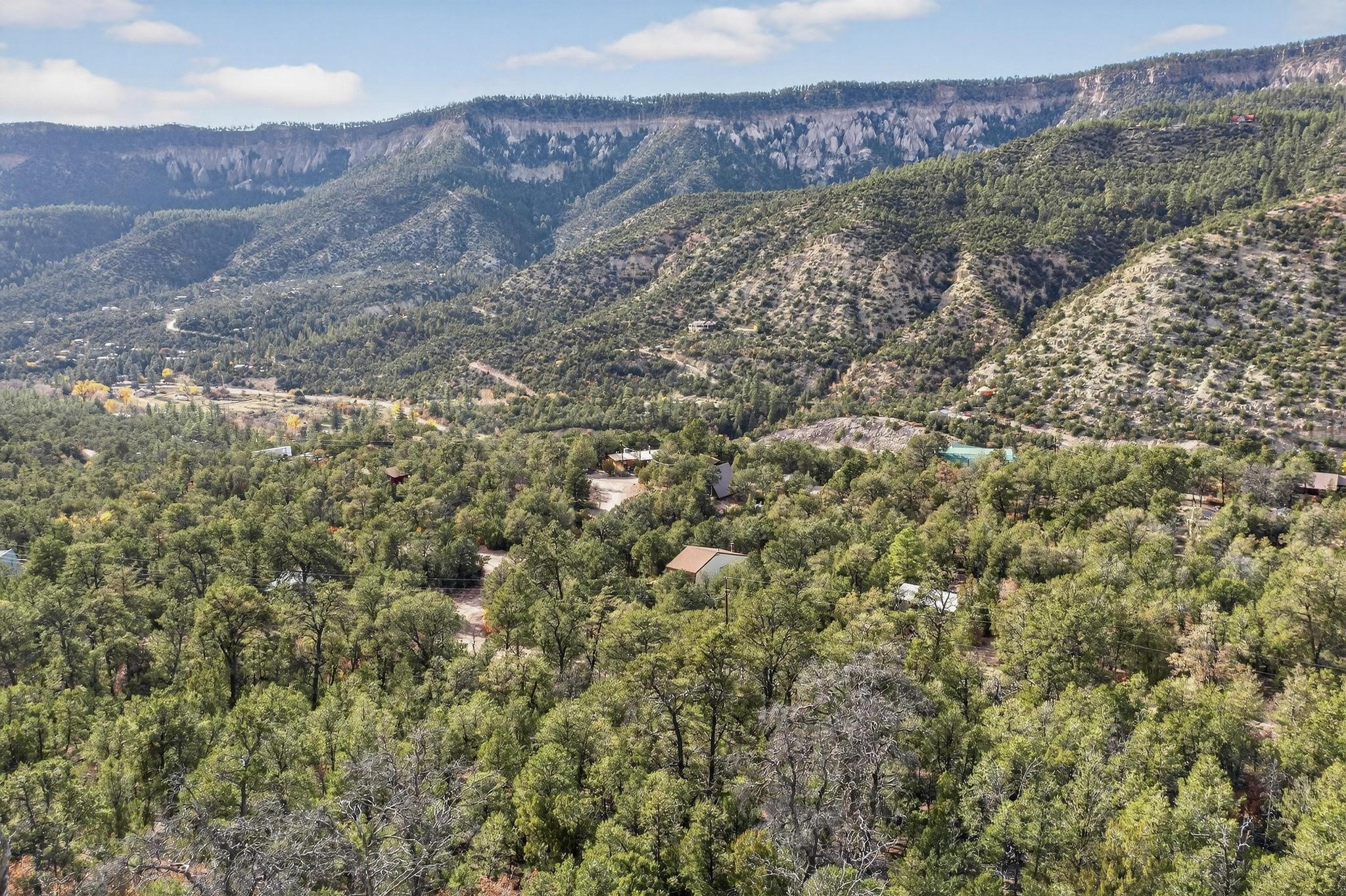 Nature lovers' dream home alert! Escape from the hustle and bustle in this clean, cozy mountain retreat with spectacular unobstructed views of the majestic Jemez Valley. Nestled in the pines, this hard-to-find gem of a home offers modern comforts with the mini-split system, or warm up next to the wood-burning stove, relish the abundant natural light throughout, and sip your morning coffee in the country kitchen or entertain guests in the tucked-away bar/recreation area in the basement. Upstairs you'll find two generously sized bedrooms with perfectly positioned viewing windows. You'll be seeing yourself right on home, soaking up the fresh air on your oversized covered deck, staying busy in your attached 2-car garage/workshop, or taking the short walk to the river! A MUST SEE!