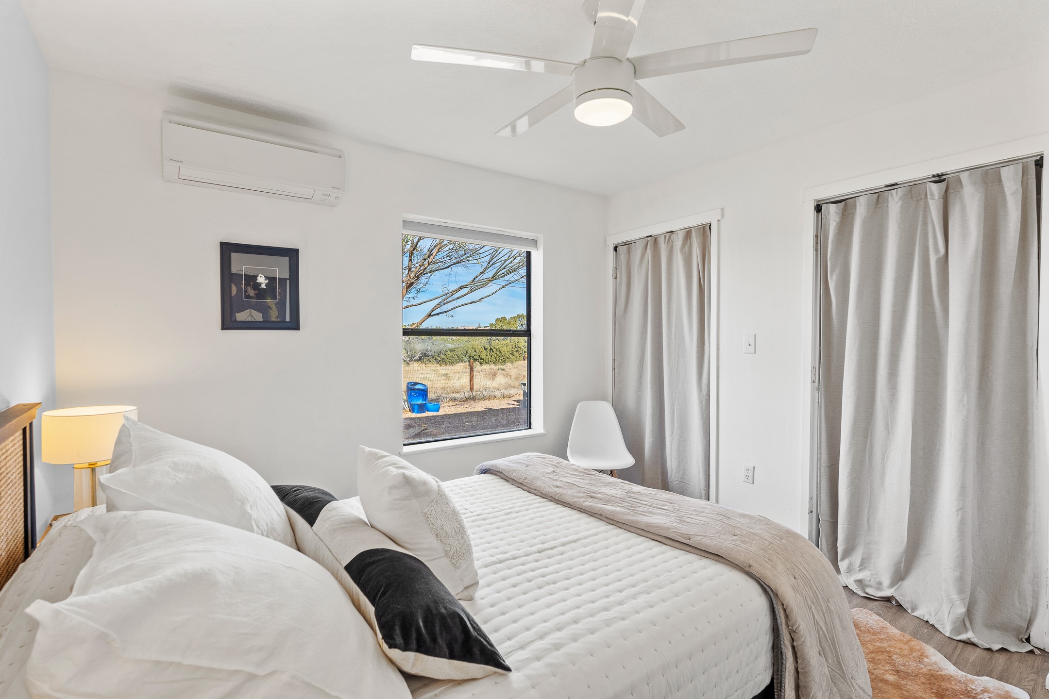 Welcome to 15 Domingo Road -- a serene Eldorado retreat offering comfort, versatility, and exceptional privacy. Located in the coveted Eldorado community, known for its top-rated schools, miles of walking trails, and family-friendly amenities, this inviting home sits on 1.84 acres backing up to a protected greenbelt for an expansive sense of space. A private trail from the home leads to the Eldorado trail, providing hiking right out your back door. The residence offers 3 bedrooms and 2 baths, currently arranged as 2 bedrooms plus a dedicated office, ideal for remote work or creative use. A bonus workout room off the garage provides added flexibility for fitness, hobbies, or extra storage. Throughout the home, efficient mini-split heating and cooling deliver year-round comfort in every interior space. Bright, open living areas flow easily to the outdoors, where mature landscaping and peaceful vistas create a true Eldorado experience. Enjoy morning coffee under wide New Mexico skies, evenings around a firepit, or quiet moments surrounded by nature and privacy. With its functional floor plan, abundant outdoor living, and an unbeatable location near community amenities, 15 Domingo Road offers the perfect blend of lifestyle and convenience in one of Santa Fe's most desirable neighborhoods. A wonderful opportunity to make Eldorado your home.