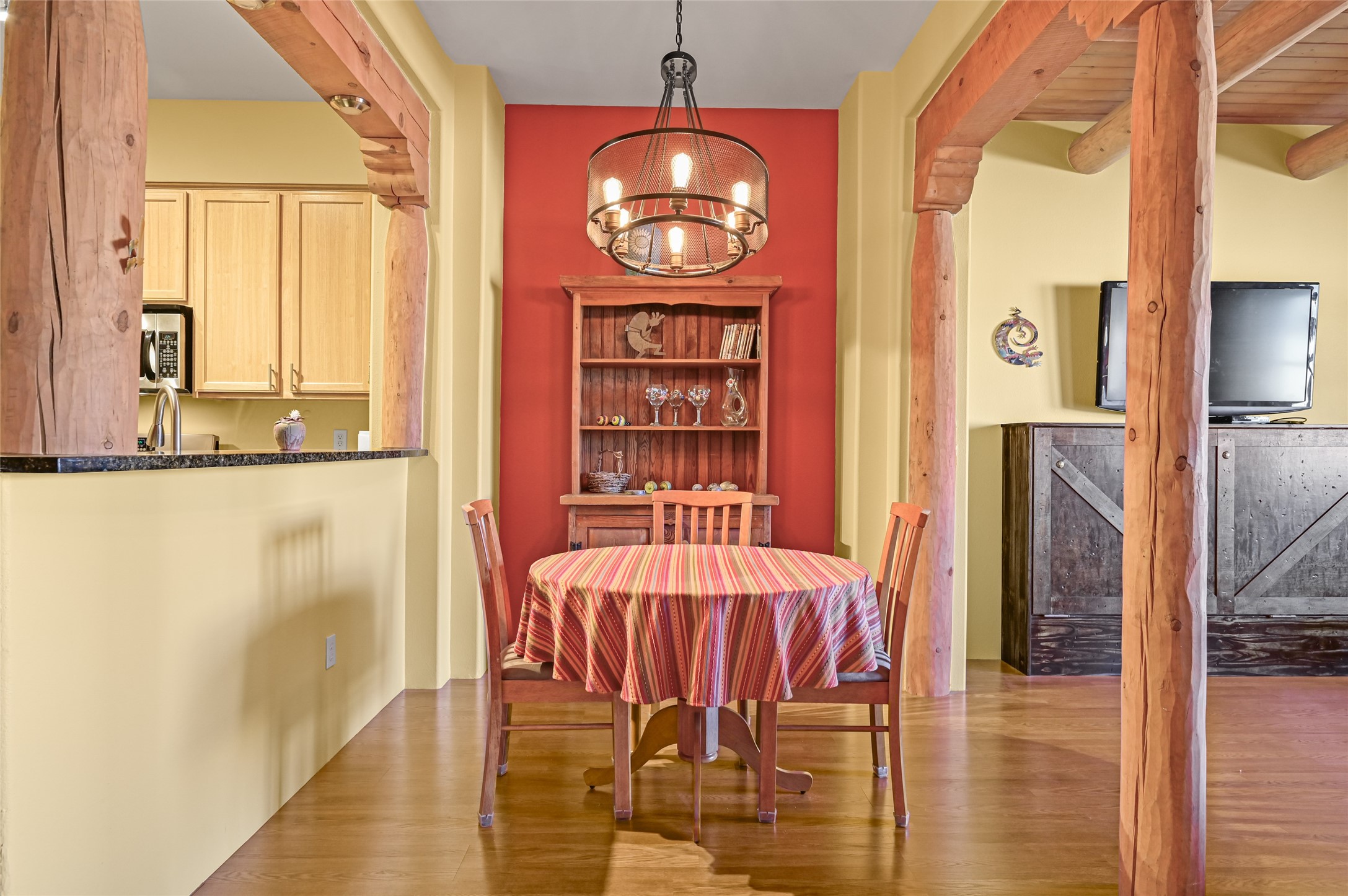 - Interior FeaturesBeamed Ceilings, No Interior Steps