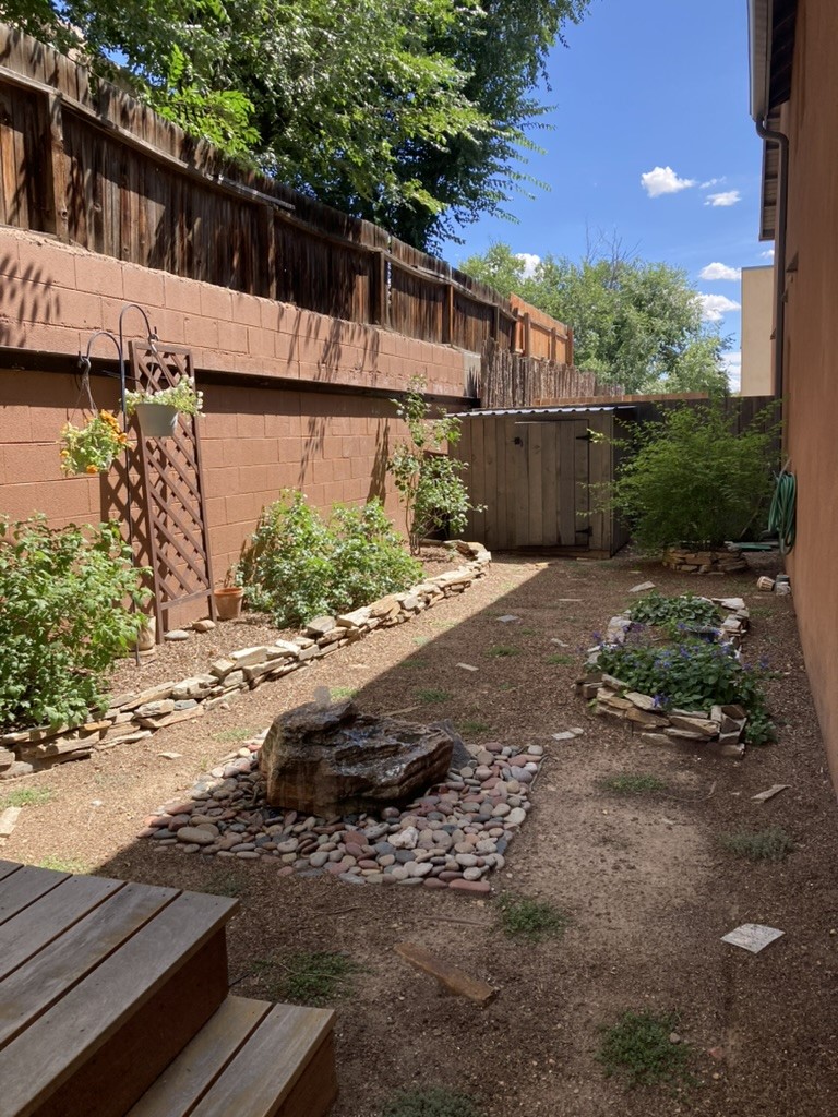 Discover an exceptional blend of comfort, style, and location at this beautifully upgraded 4 bed, 2 bath residence in River Trail Lofts. With direct access to the Santa Fe River Trail from your front door, this lightly used 1,877+/- sq ft home offers bright, inviting living spaces and a thoughtful two-story layout. Interior features include radiant heat, red oak flooring, high and vaulted ceilings, deep closets, upgraded kitchen appliances, and top down bottom up cellular blinds throughout. The kitchen and baths feature padded gym flooring for added comfort, with tile in the laundry room. The private backyard has been transformed into a serene outdoor retreat with a custom hardwood deck, fountain, custom storage shed, flower beds, new ground coverings, shrubs, and automated irrigation. It feels like a true extension of the living space and works well for quiet enjoyment or outdoor dining. Ample parking adds to the convenience. River Trail Lofts is tucked below Alameda with no through street, offering a peaceful setting with minimal traffic while still being minutes from downtown, the Railyard, shopping, and the airport. The seller is open to conveying the home furnished, including art, rugs, TV, dishware, and washer dryer, which can create a seamless turnkey move-in experience or investment opportunity. All furnishings would be sold separately under a separate agreement. The seller would like to close near the end of March 2026.