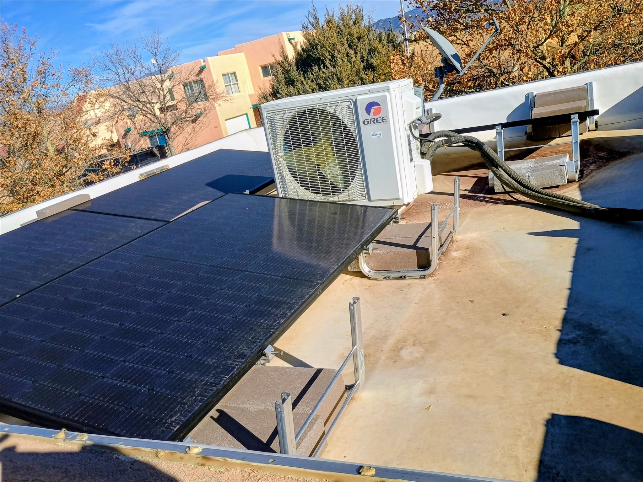 Affordable, updated, and in Santa Fe! This home boasts tile/porcelain floors throughout, freshly painted and updated interior, a swamp cooler supplemented by a living room mini split, and a new TPO roof (warranty conveys). Appliances and cooling are powered by the active solar system newly-installed. The home also features radiant heating, energy efficient windows and more! This single family home is walking distance from several elementary, middle schools, and Capital High School. A 15 minute drive takes you to the heart of downtown Santa Fe and the Plaza. 45 minutes to both Los Alamos and Albuquerque. Home ownership in Santa Fe is affordable and made manifest in this lovely adobe-style listing. Owner is a recent LANL retiree and an extremely motivated Seller.