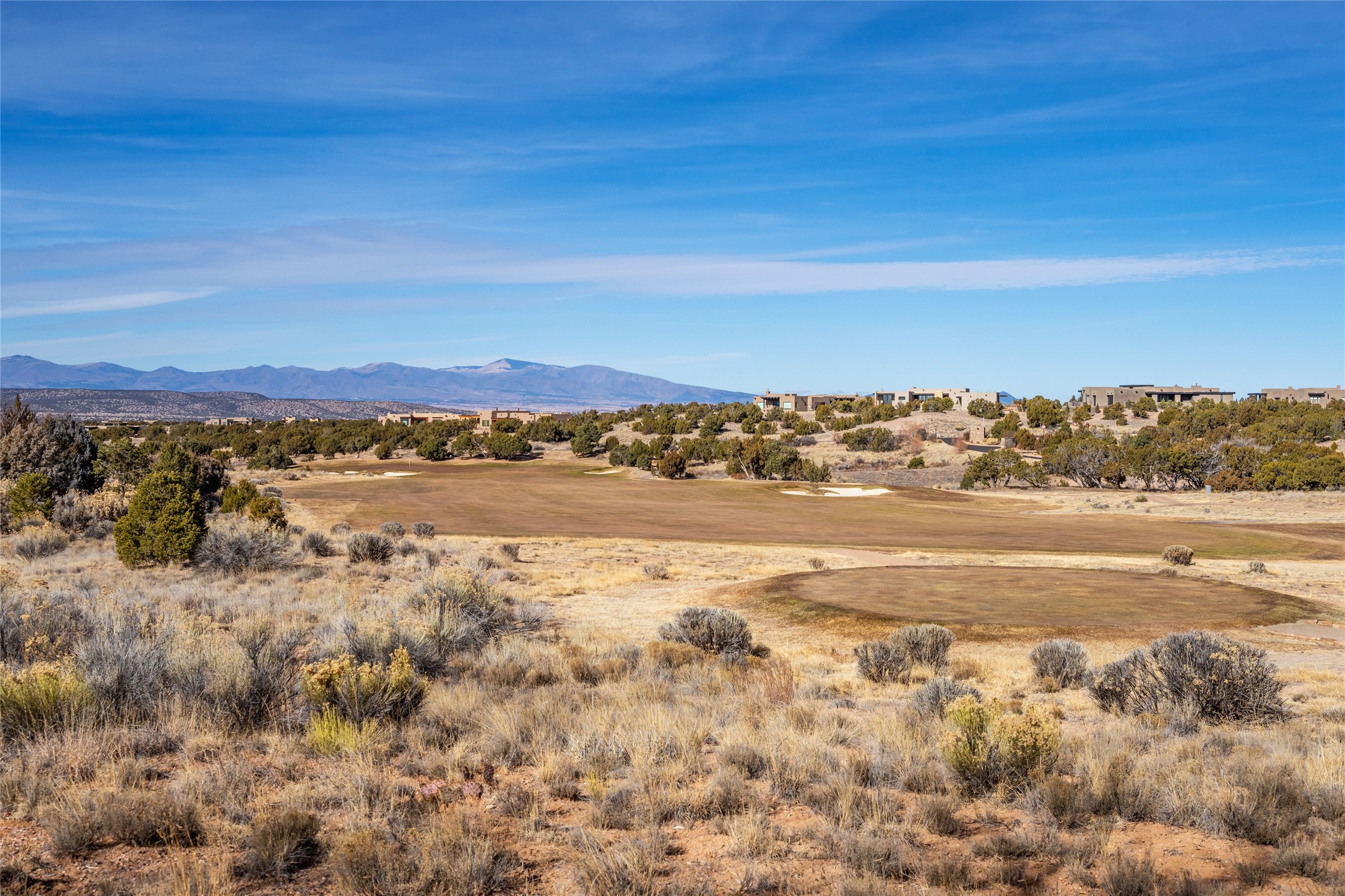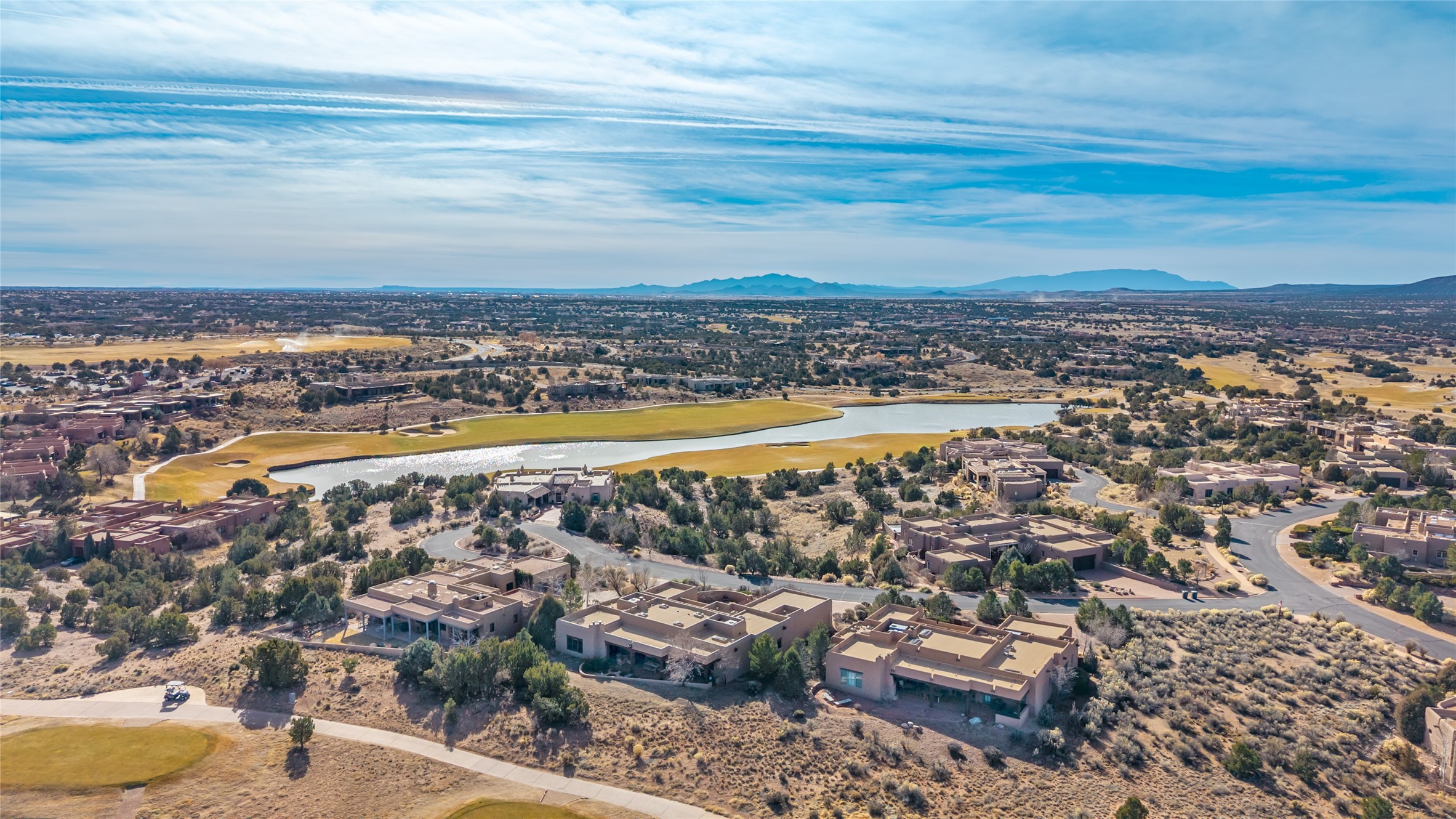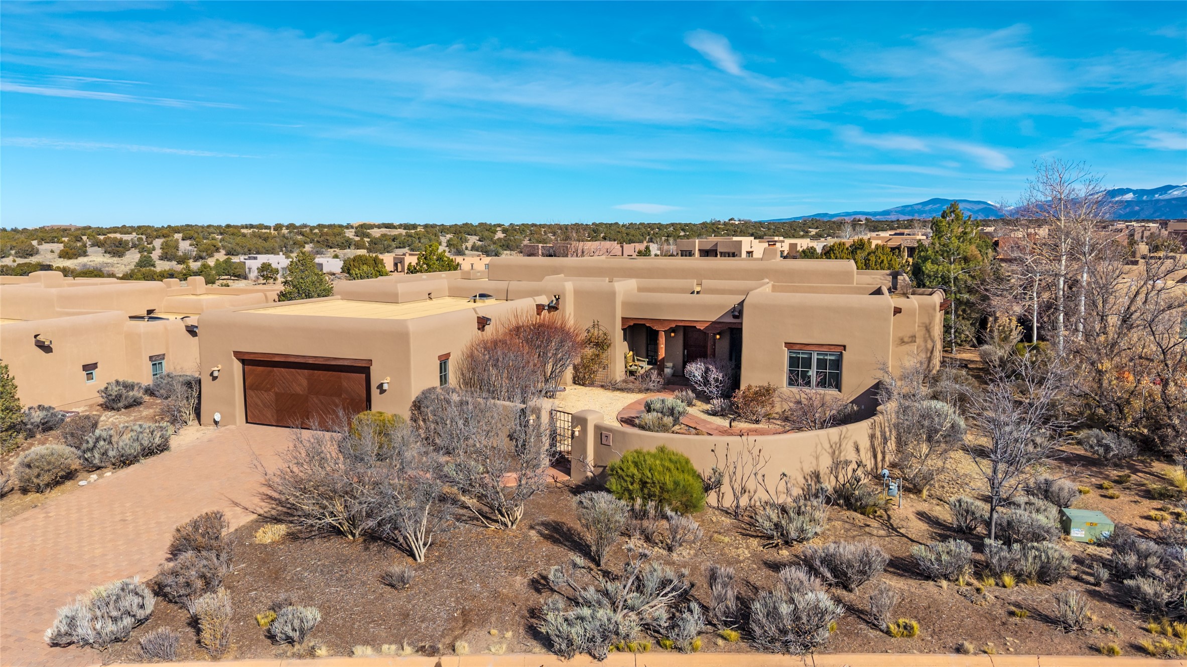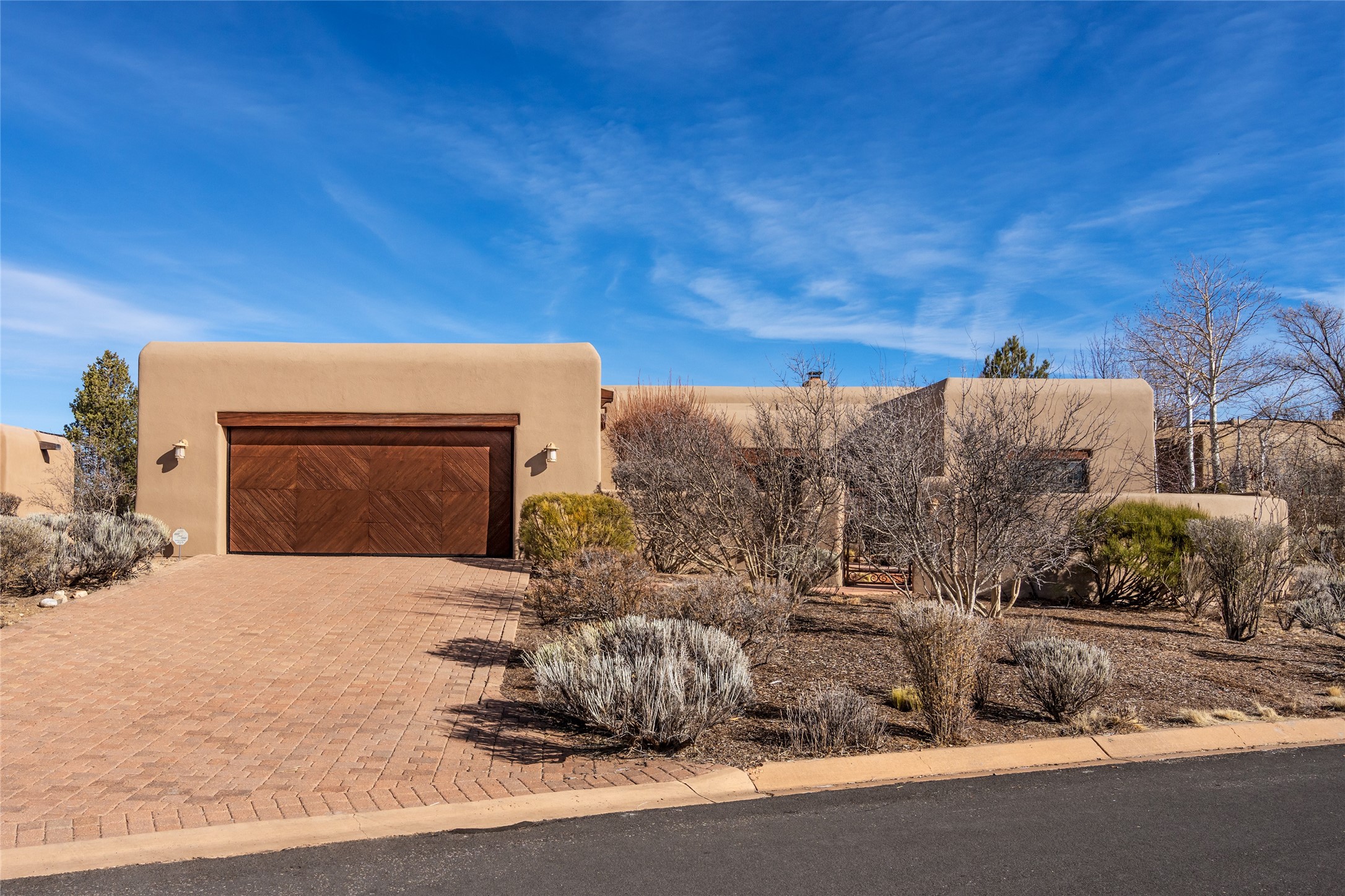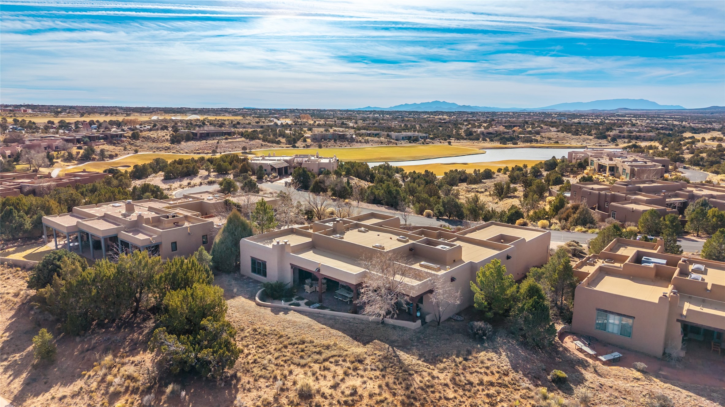 PERCHED ON A SLEEPY CUL DE SAC IN THE COVETED PUEBLOS ENCLAVE OF LAS CAMPANAS IS AN EXTRAORDINARY PROPERTY WITH HANDSOME SANTA FE TOUCHES THROUGHOUT, GREAT INDOOR/OUTDOOR ENTERTAINING SPACES AND ARCHITECTURAL DETAILS THAT ADD INTEREST AND TRUE COMFORT. Gleaming plaster walls, coved vigas, and warm wood floors anchor the residence. A spacious, cook's kitchen with center island, granite counter tops and high-end appliances - replete with a generous butler's pantry. Good sized laundry and a mud room area adjacent to entry from garage. The floor plan provides marvelous separation of spaces - including the 3 bedrooms and wide hallways that double as fine gallery space. New Stucco. Rare offering in a section of Las Campanas where homes seldom come to market.