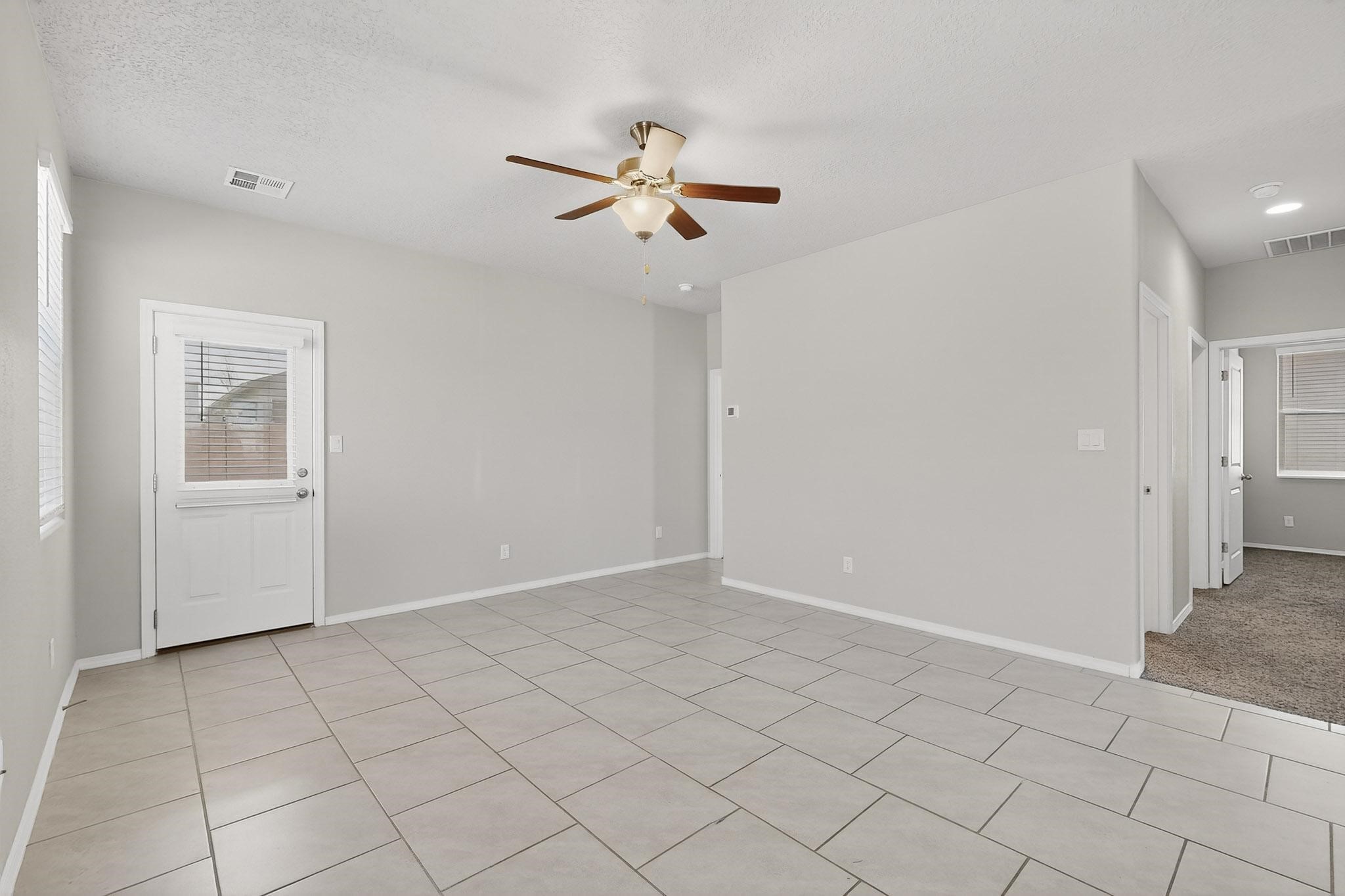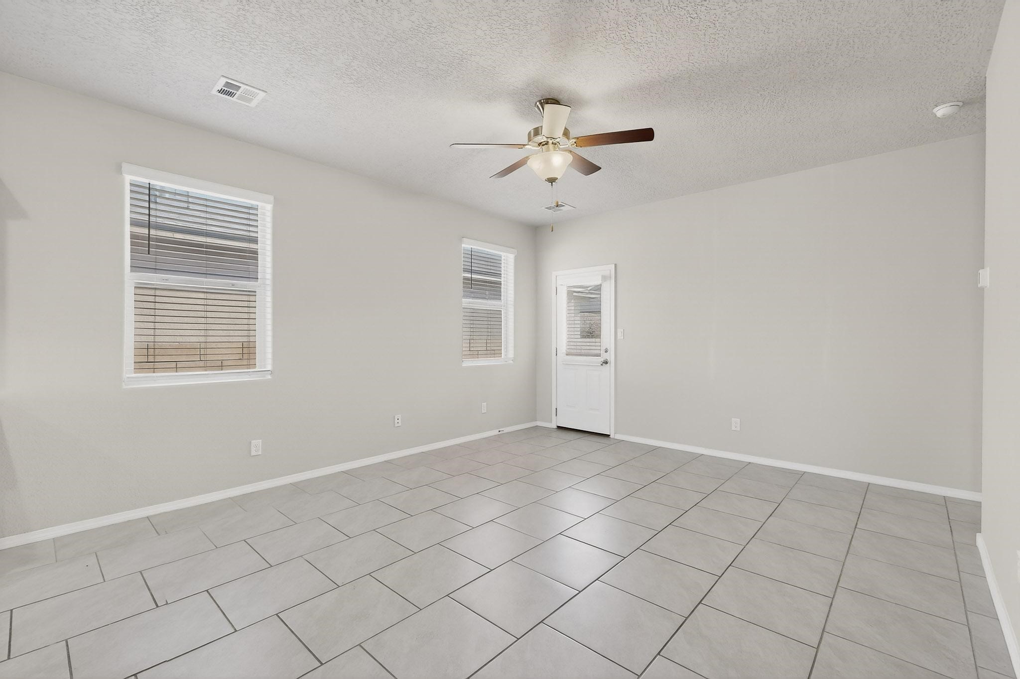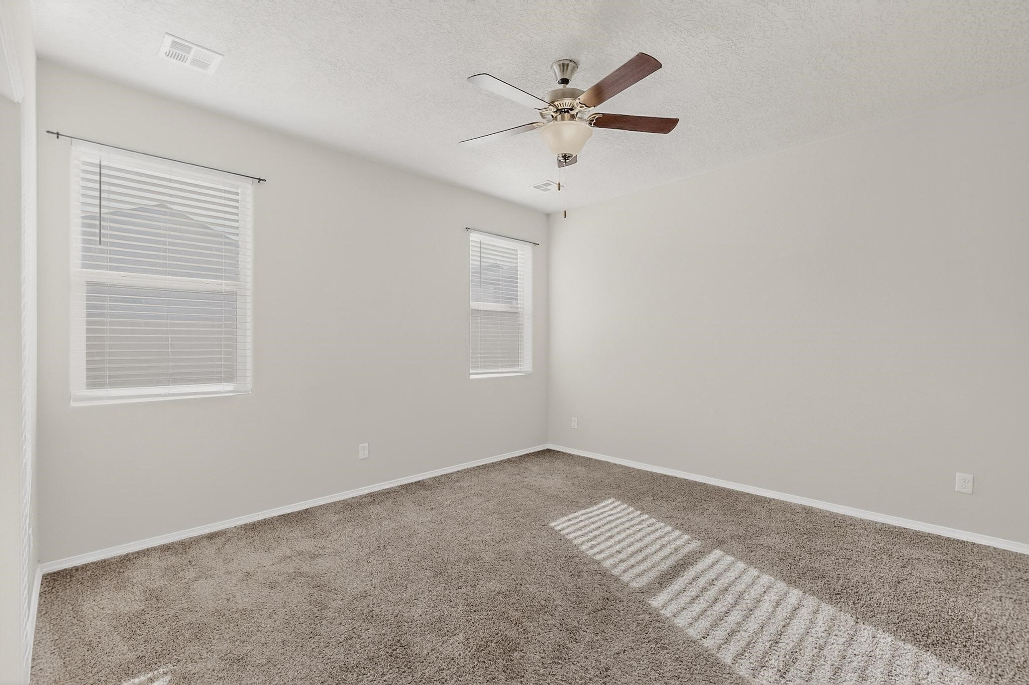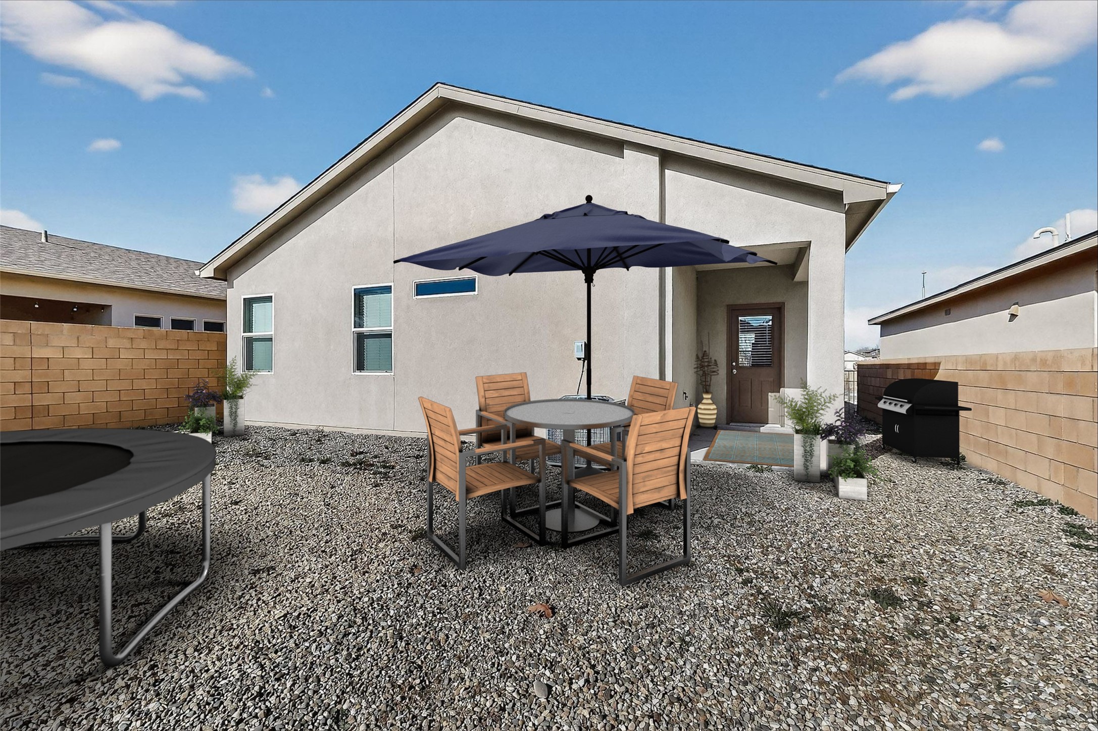 Opportunity is knocking with this 3 bedroom, 2 bathroom single level detached home in the completely sold out Cielo Azul Subdivision. Located across the street from the community open space you will be just steps away from daily walks/strolls, bike rides or walking your 4 legged loved one. Upon entry, the open concept kitchen and living area offer the perfect space to gather. The kitchen is sleek with granite counters, stainless appliances and lots of natural light. Casual eating can be enjoyed at the kitchen island or marvel in the separate dining area with great views of the community park. Wonderful separation of bedrooms allows the primary suite privacy with views to the walled back yard. Move-in ready with a finished garage, tankless water heater, refrigerated A/C, Washer & Dryer and matching stainless appliances. The backyard awaits your landscaping ideas and the location is great with easy access to 599 for both Los Alamos and Albuquerque commuters.