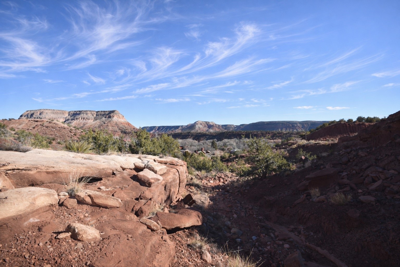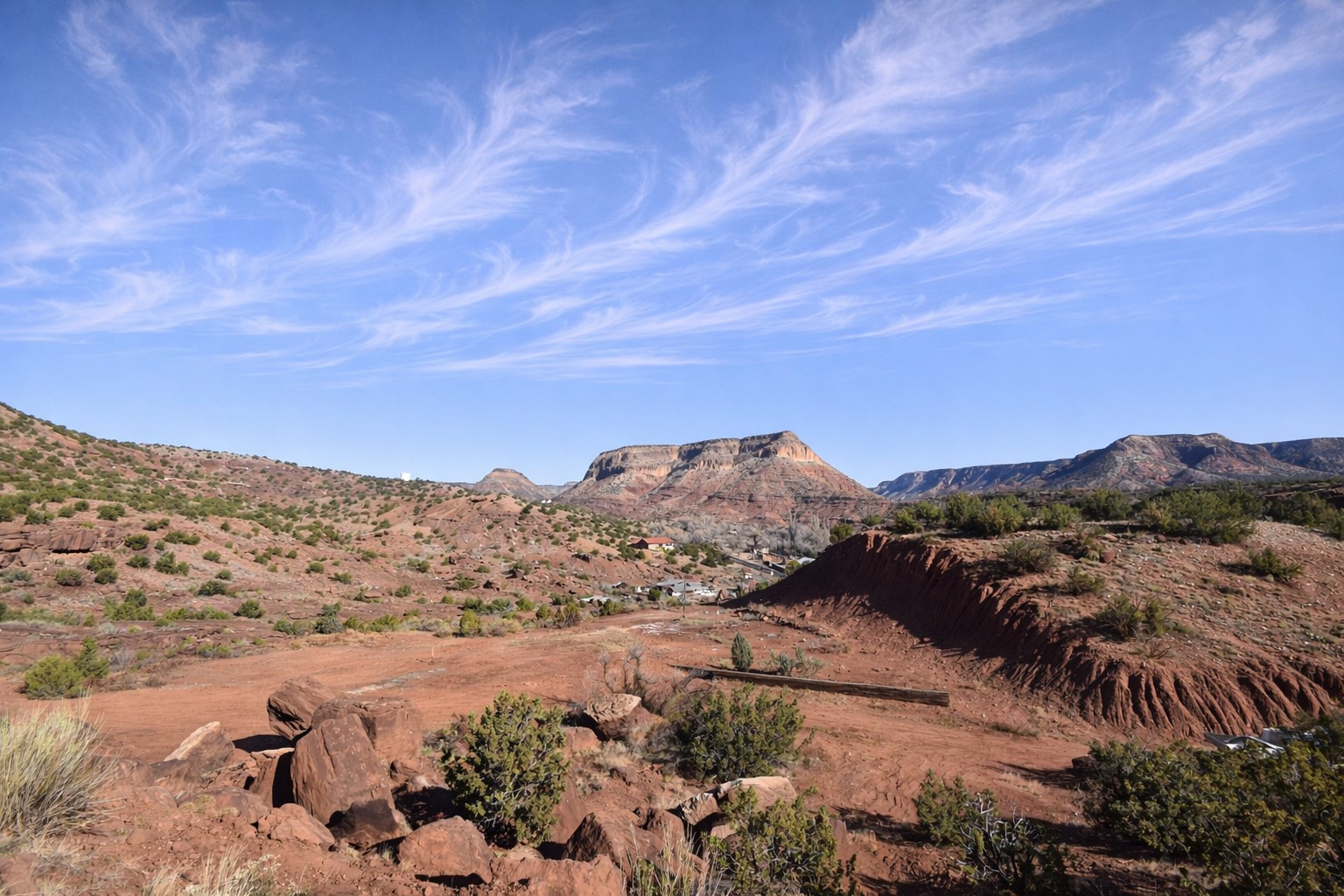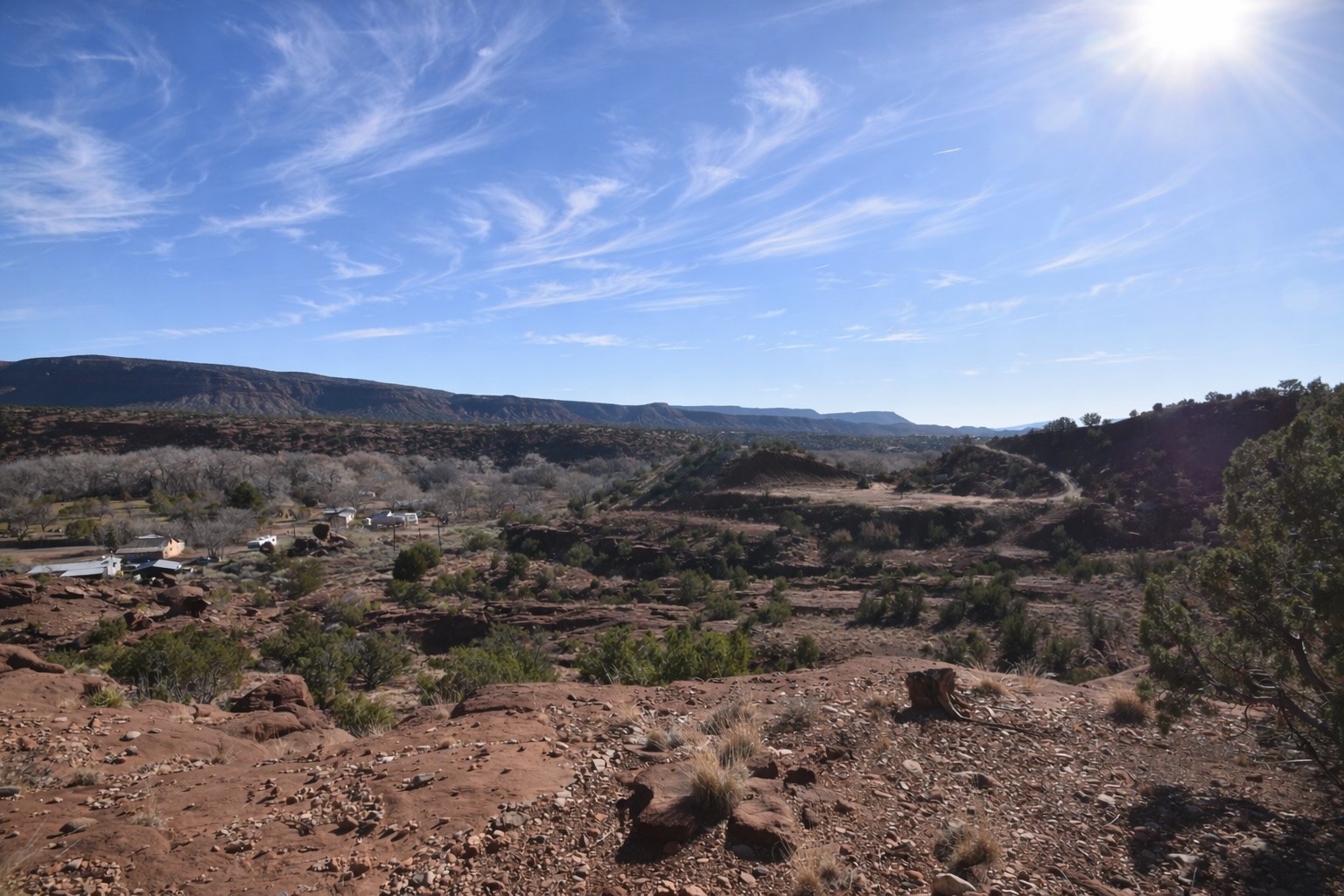 Build-Ready 10.4 Acres with National Forest Border & Mesa Views. Wide-open mesa views, National Forest access, and classic canyon country define this scenic 10.4-acre property. Enjoy sweeping views of Guadalupe Mesa and Garcia Mesa, with glimpses of the Guadalupe River just across the highway below. The lot is build-ready with a private well, electric meter on site, and a septic system permitted for a three-bedroom home--saving time and upfront development costs. The prior residence has been removed, offering a clean slate for a manufactured home or custom build. Located along Highway 485 in the Caon area near the Gilman Tunnels, with Santa Fe National Forest bordering the west. Ideal for a private residence, recreational retreat, or long-term land hold in the Jemez.
