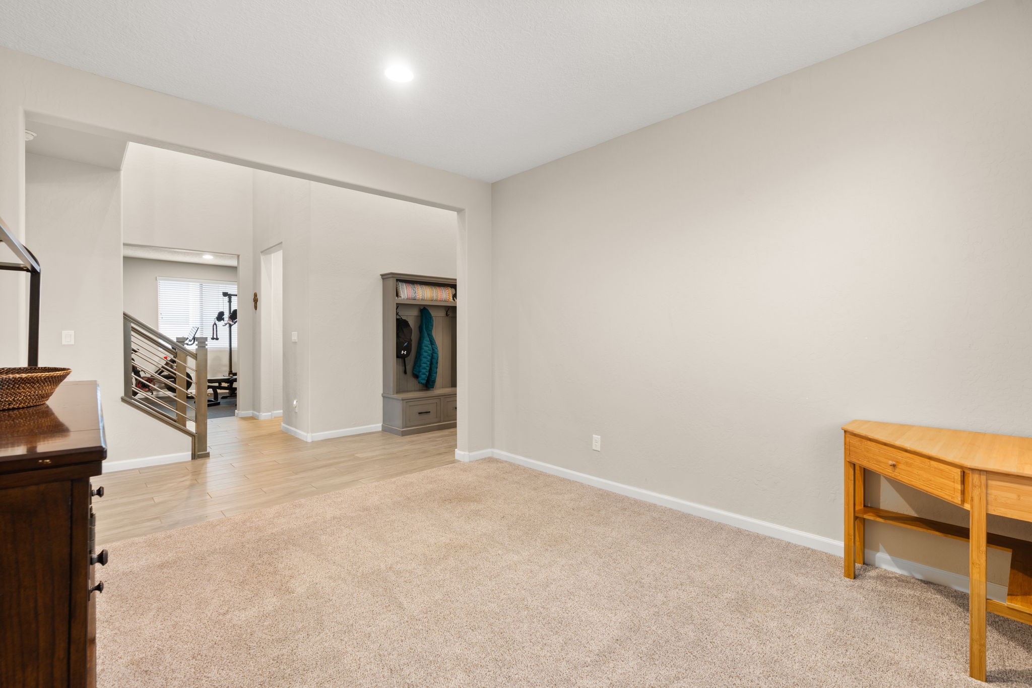 Welcome to this beautifully appointed 4-bedroom, 4-bath residence nestled within a private gated enclave of the sought-after Mariposa community, where comfort, flexibility, and scenic surroundings come together effortlessly. Thoughtfully designed for multi-generational living or hosting with ease, the home features two spacious owner's suites--one conveniently located on the main level and another upstairs--each offering privacy and a serene retreat. Two additional bedrooms and well-appointed baths provide ample space for family or guests. Gorgeous dream kitchen with a huge granite island, soft close doors and slide out cabinet shelves stainless steel appliances include double oven and 5 burner gas cooktop The versatile floor plan includes two distinct living areas, perfect for both everyday living and entertaining, along with two dining areas that accommodate everything from casual meals to formal gatherings. A flex space currently configured as a private gym offers endless possibilities home office, studio, or media room to suit your lifestyle. Set against the backdrop of beautiful mountain views, this home enjoys a prime location just a short stroll from the community pool and fitness center, making it easy to enjoy the active Mariposa lifestyle
