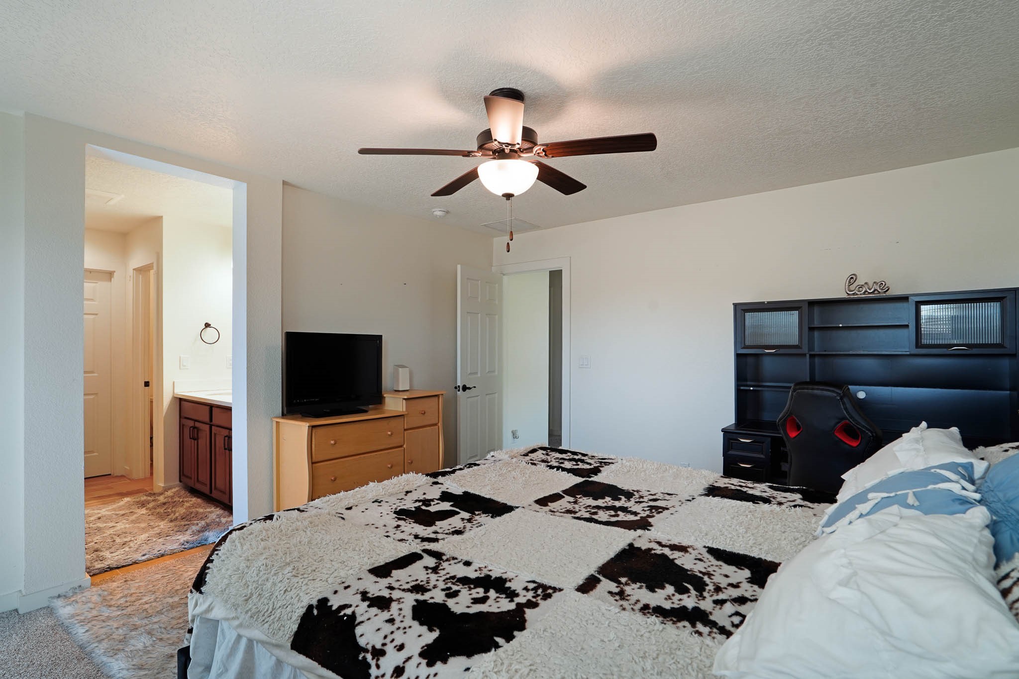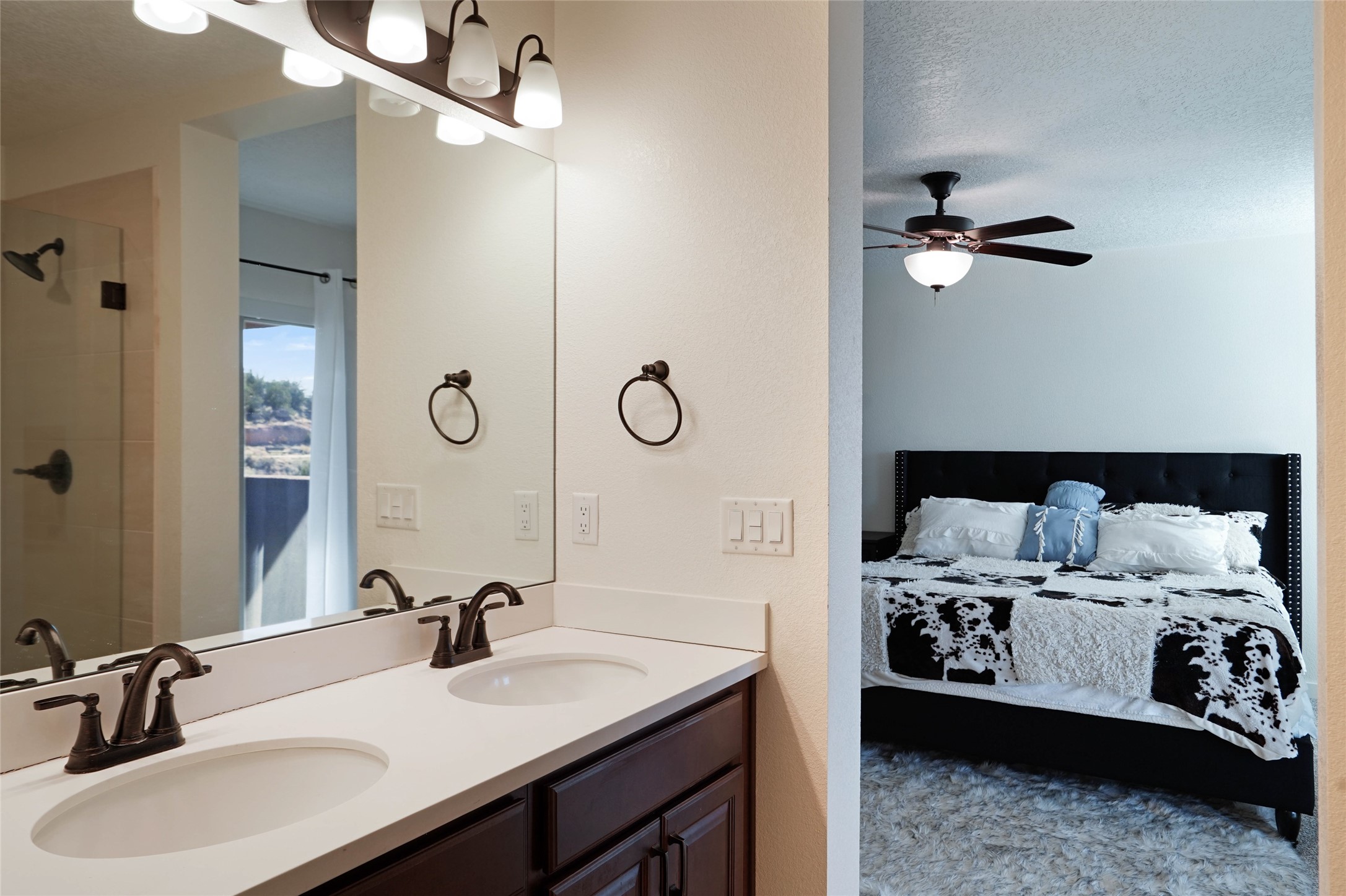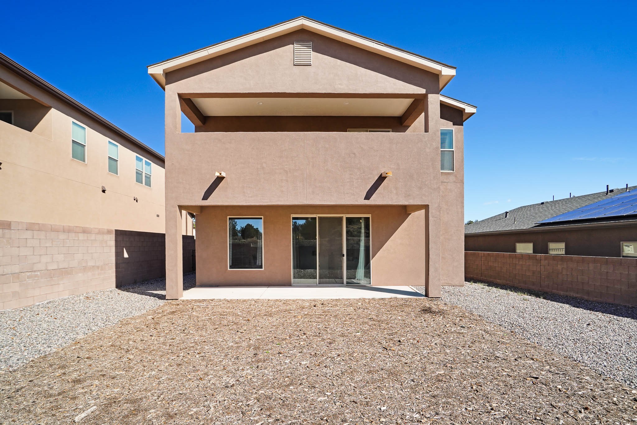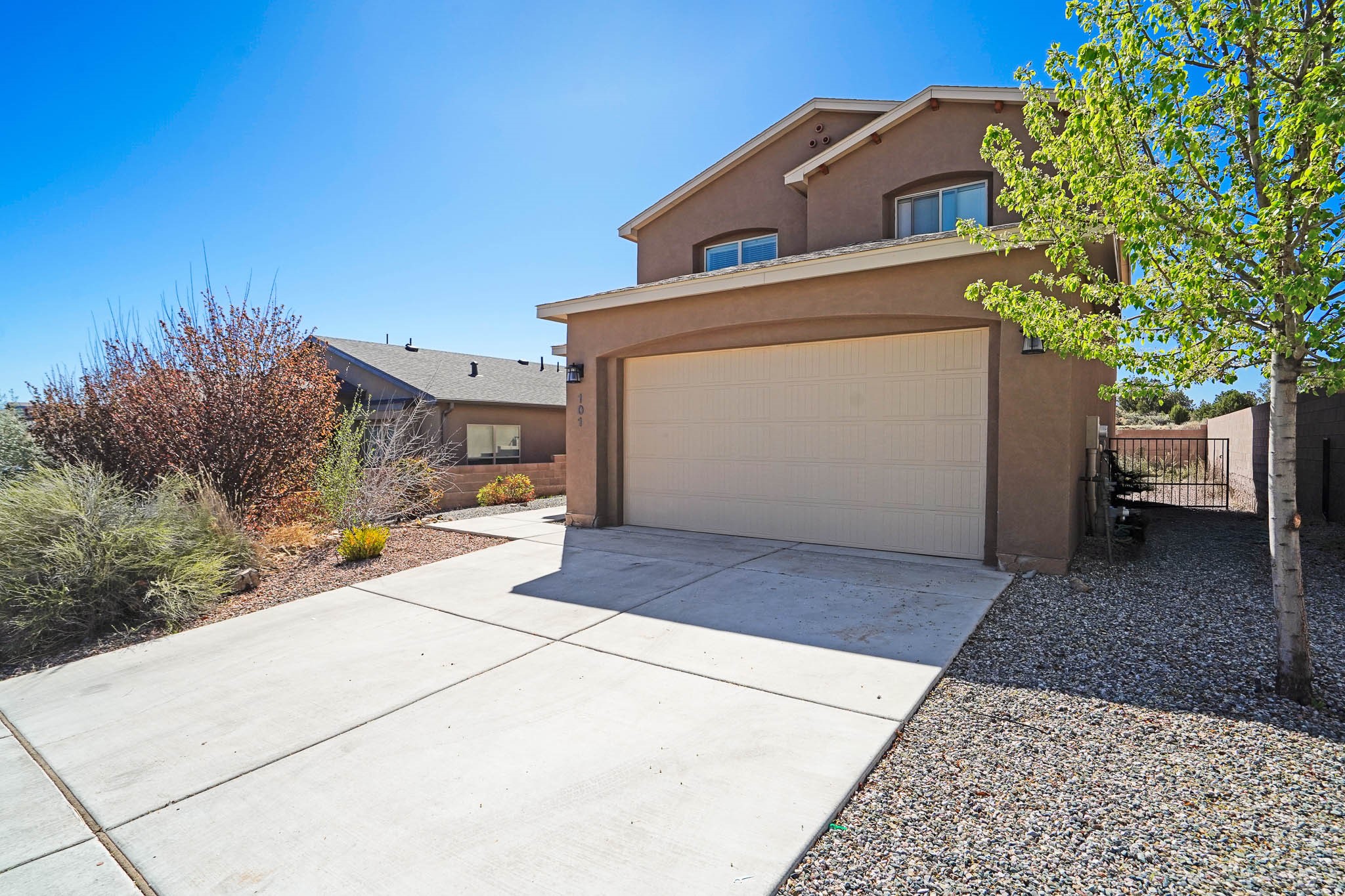 Deluxe 5 year new resale in desirable Mirador neighborhood in the heart of White Rock, close to Los Alamos National Laboratory! Step into comfort w/this thoughtfully designed 4 bed/2.5 bath ~1900sf "Cougar" layout on two levels of living space. Main level features sleek open eat-in kitchen w/marble counters, maple cabinets, stainless steel appliances, & generous walk in pantry. Also separate dining area, bright 'n wide living room w/South + East exposures, half bath, bonus storage room, and direct access to back portal + fully fenced backyard. All 4 bedrooms up w/primary suite featuring private balcony w/mountain views, double sink + walk in shower bathroom that leads to walk in closet. 2 car garage + driveway parking all on a quiet dead end street in a peaceful, scenic community close to parks, trails, & local amenities. Whether looking for a forever home, versatile investment property, or a part time in-town spot - this home presents an outstanding opportunity to own in a special location. Eligible veterans may qualify to assume current VA loan and realize significant savings at a low interest rate!