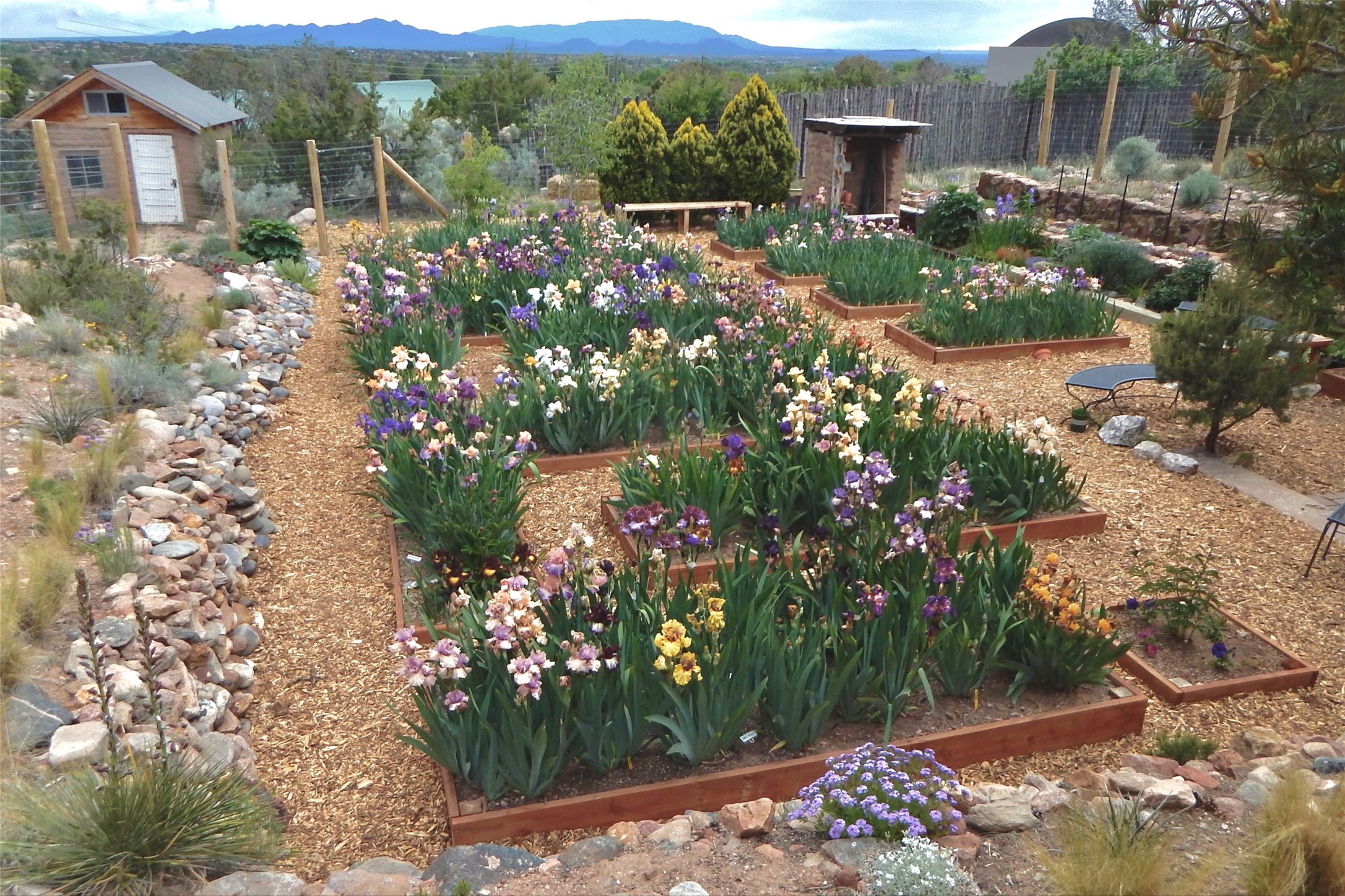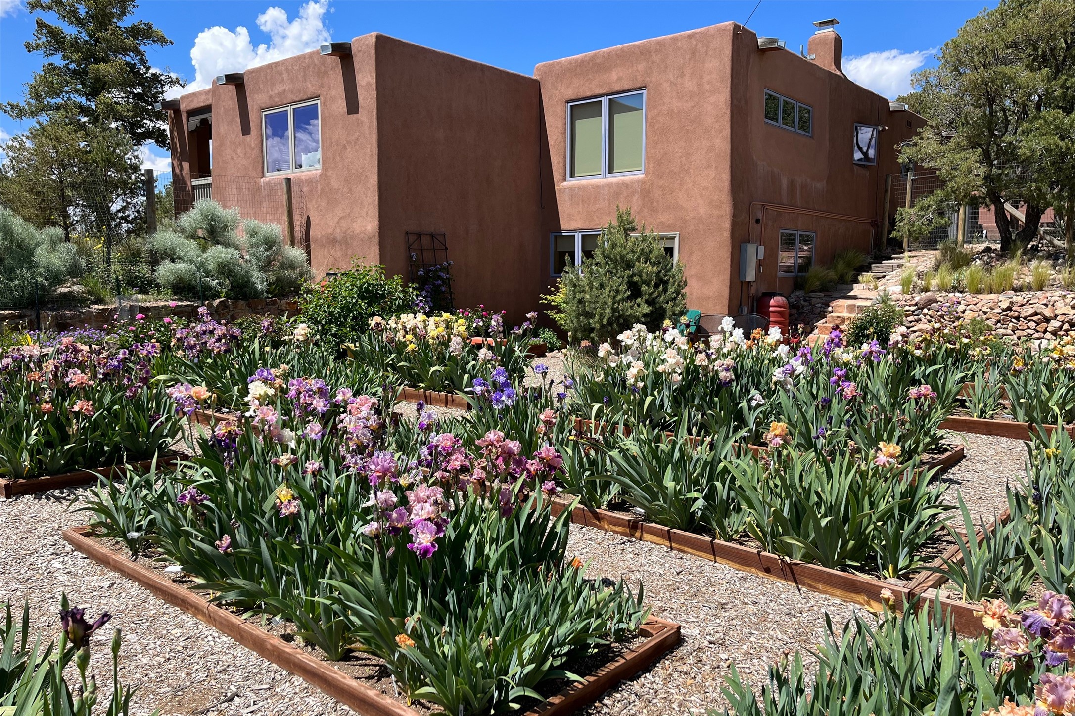 Centrally located in this quiet Museum Hill neighborhood with stunning mountain views from every room, this chic and updated 3,366 +/- sq.ft. home is situated on 1.1 +/- private acres with a fenced and gated backyard ideal for raised bed gardens and nature enthusiasts. There are are a total of 3 bedrooms and 3 bathrooms. All the bedrooms are situated on the main entry level. Downstairs, a third living area with a 3/4 bathroom and an additional washer and dryer, could function as a private guest quarters with its own access, or as a flex space/office - perfect for a growing family or professionals needing additional work space. A large kiva, wood-burning fireplace anchors this cozy space. Upstairs, the open-concept living/dining room look out onto maturely treed and landscaped views perfect for seasonal living with plenty of room for entertaining. A front entry portal inspires the senses with sunset views. The spacious kitchen with bar seating, stainless appliances, and granite countertops has another family room adjacent to it with a large wood burning fireplace and backyard access. The home is bathed in natural light and skylights. Wood and tile floors cascade throughout adding to the organic warmth of the home. The entire property has been lovingly maintained and updated with spa-like bathrooms and versatile functionality. Solar panels have been added and are owned by the Sellers. Forced gas heating and air-conditioning make this home very comfortable and affordable in all seasons. Accessibility to the downtown and South Capitol areas are what make this property an ideal location to call home.