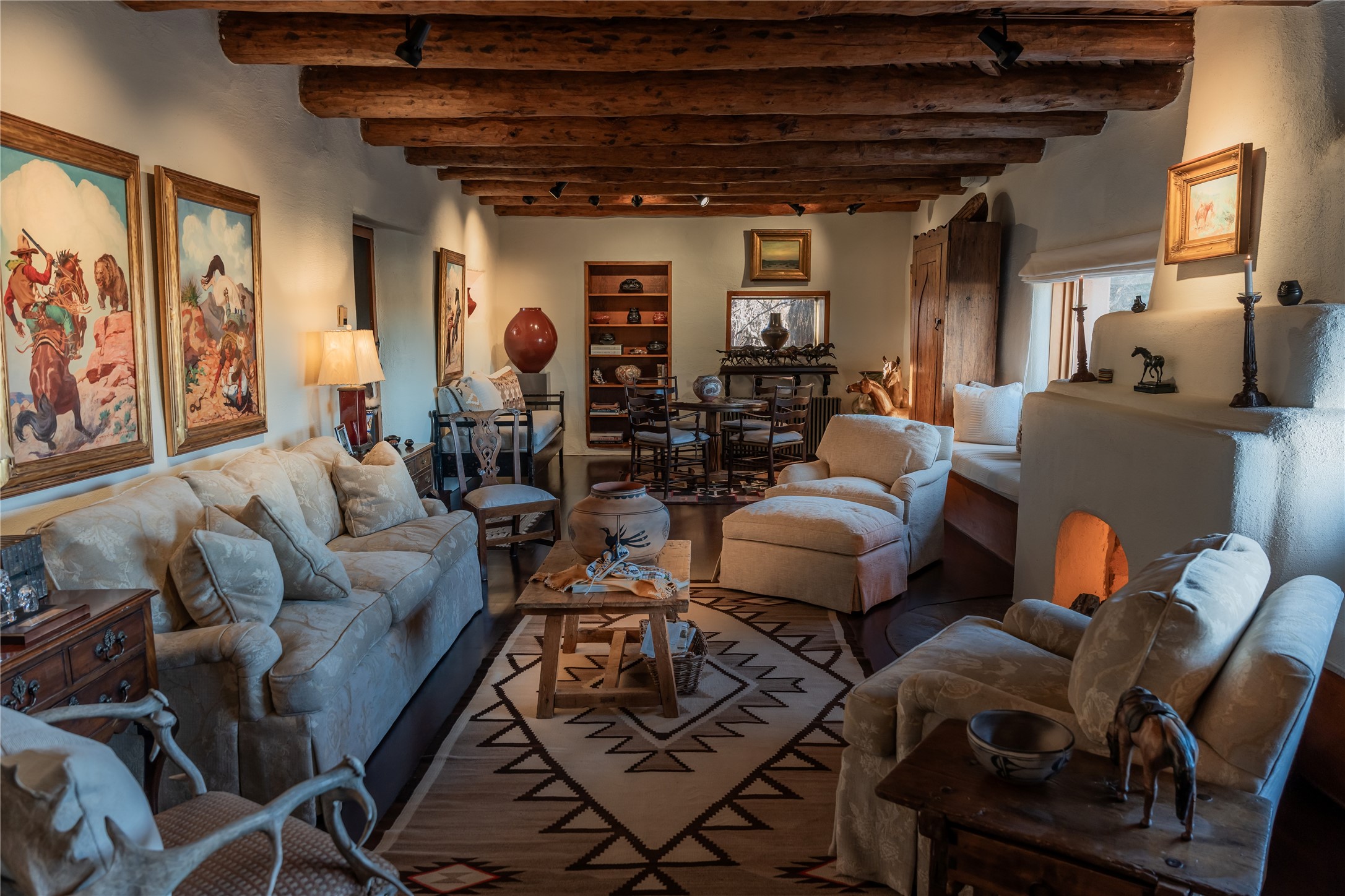 History, heritage, & the spirit of the West converge. Set against the backdrop of Rowe Mesa & Starvation Peak, nestled between Santa Fe & Las Vegas, New Mexico, this sprawling 6,100+-acre sanctuary has been shaped by over three decades of dedicated stewardship. With its original adobe structures, expansive equestrian facilities, & stunning vistas, the ranch is more than just land - it's a living story. From hosting legendary horsemanship clinics to starlit evenings spent at Pete's Supper Club, every corner of Dead Horse Ranch holds a tale worth telling. Dead Horse Ranch has always made a lifetime of memories, now, it awaits your arrival. Dead Horse Ranch features 4 residences, rustic log cabin, stone barn, a hay barn, an equipment barn, a wood shed, an office w/ bunk rooms, 11 wells, a natural spring, 2 ponds, water storage tank, & pipe fencing. & much more - all thoughtfully designed to blend rugged charm with functional excellence.Acreage6,100 total acres5,800 acres deeded320 acres state leaseResidential ImprovementsMain House & Pool: 3,594 sf + portals, 1 bed, 2 bath, basement, pool house, & landscapingGuest House: 1,887 sf + garage, 2 bed, 2 bath, portals, and landscapingHill House: 4,526 sf luxury home + patios, 4 bed, 5 bath, carport, & Mesa Vista areaLine House: 3,914 sf gathering & lodging facility, 6 bed, 6 bathForeman House 1: 1,292 sf, 2 bed, 2 bath, garage & portalForeman House 2: 2,295 sf w/ portal, 3 bed, 2 bathLog Cabin: 1,994 sf + 2 bed loft, 2 bath, & porchGym: 1,415 sf, 1 bathBunk Room / Shop / Break Room: 1,502 sf + shop, storage, & baysEquestrian FacilitiesMain Barn: 6,903 sf + 2,025 sf finished heated areas, 2 bed, 2 bathIndoor Arena: 31,250 sf, 2 bathOutdoor Arenas, Round Pens & Pipe-Fenced AreasBoarding Stables: 17,080 sf, 88 stallsHay/Equipment Barn: 9,362 sfOld Barn w/ Apartment & Stalls: 3,298 sf, 1 bed, 1 bathWood Shop: 3,465 sfMaintenance Barn w/ Fire Garage & Mechanical Shop: 6,275 sf