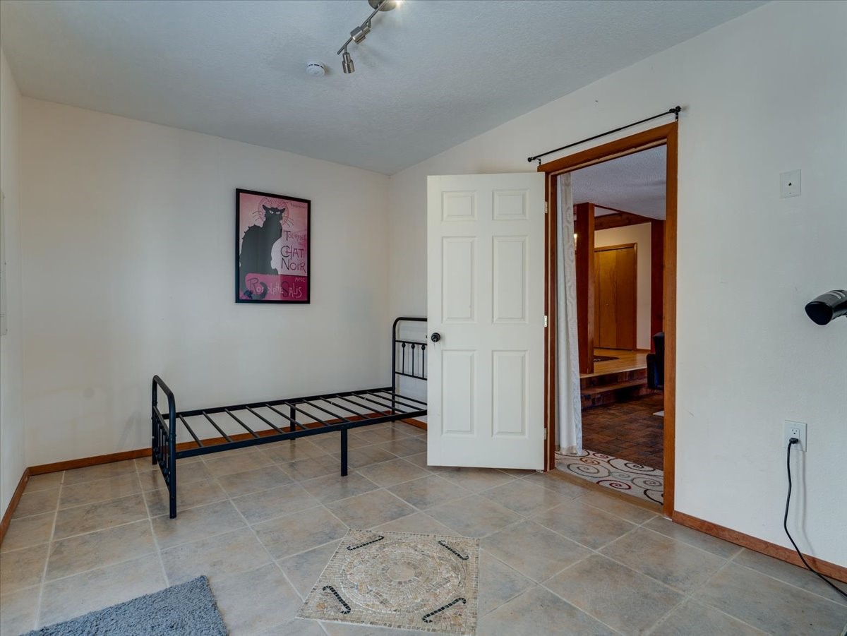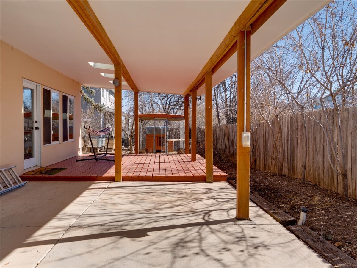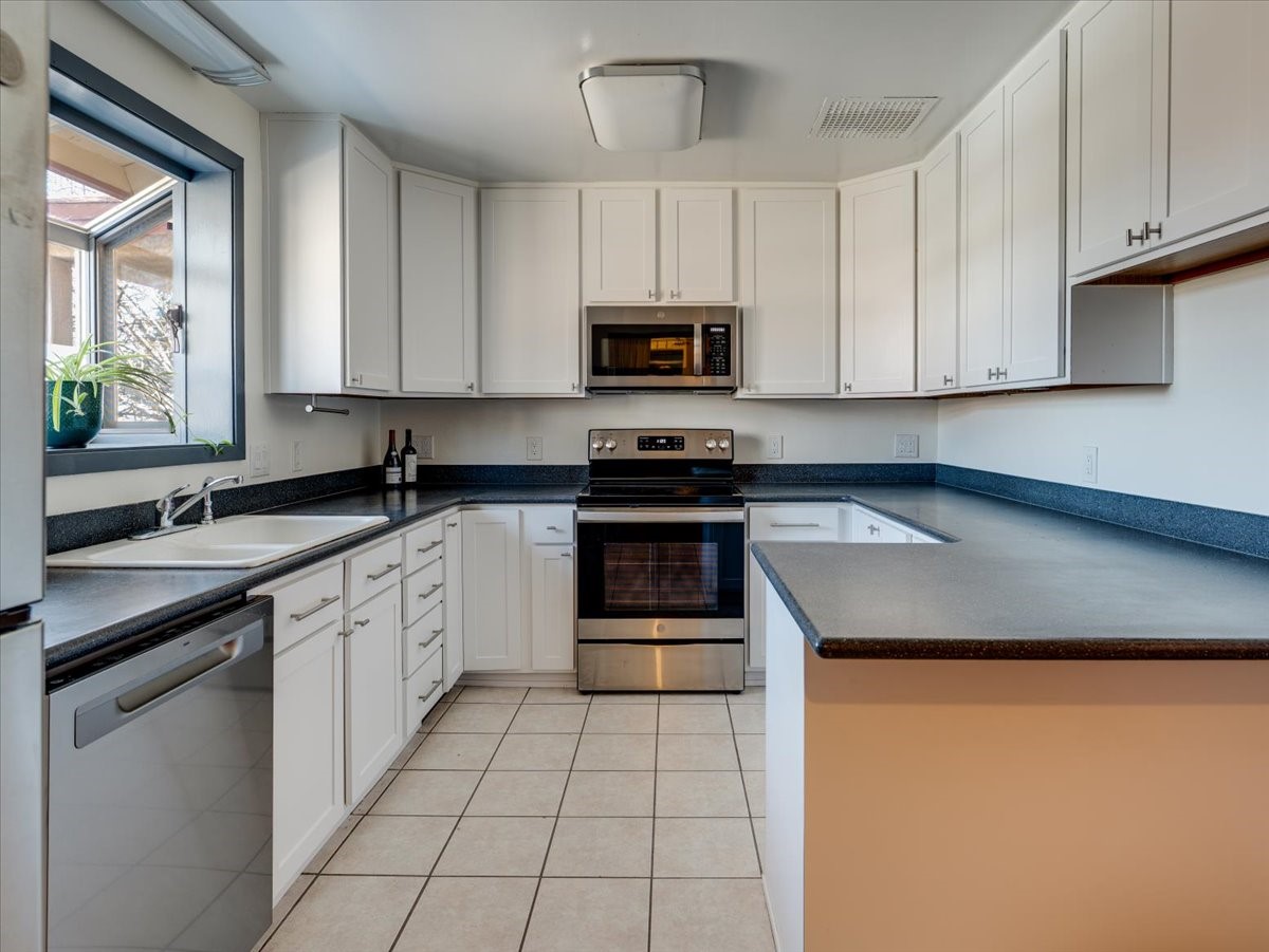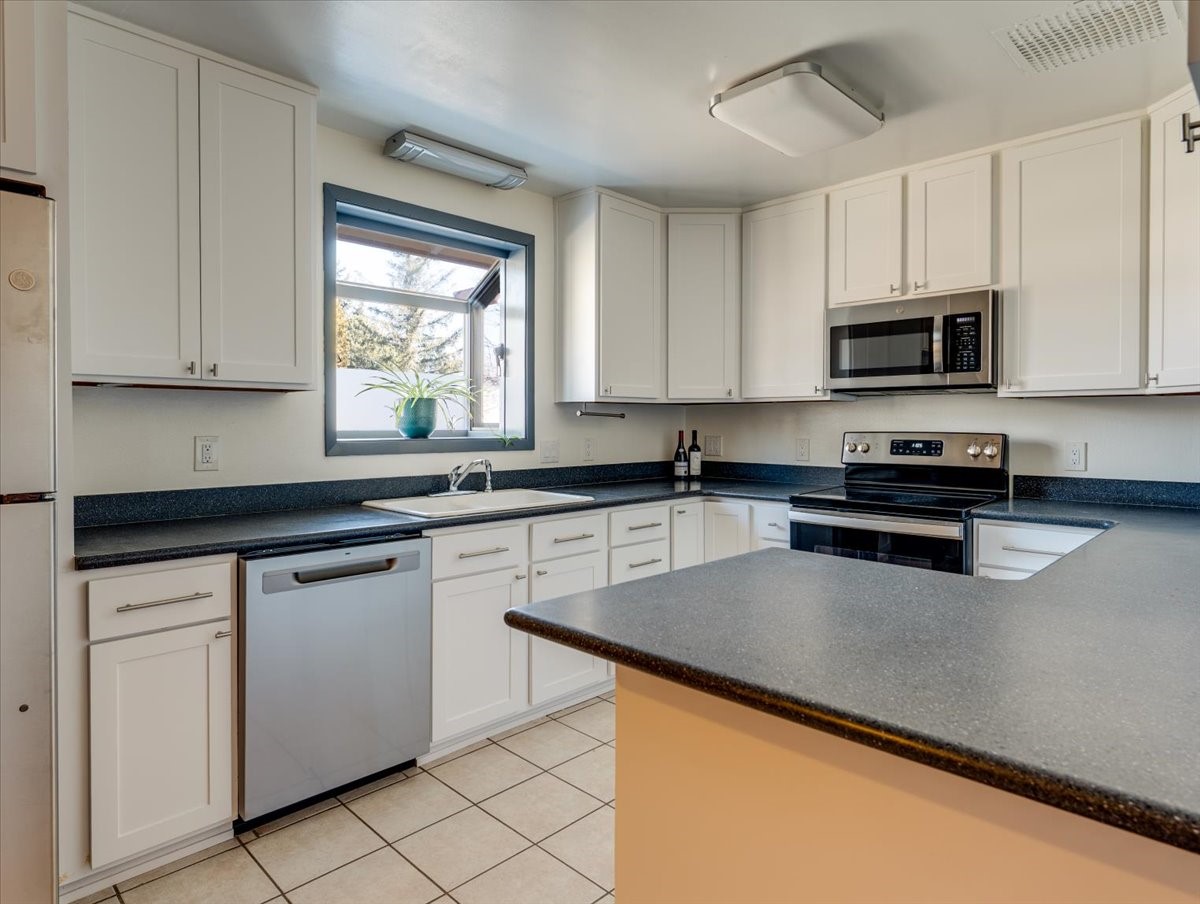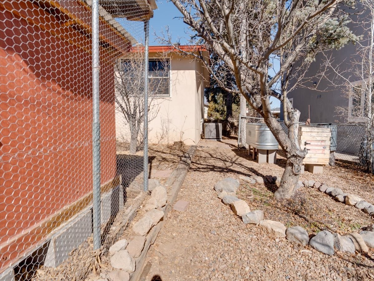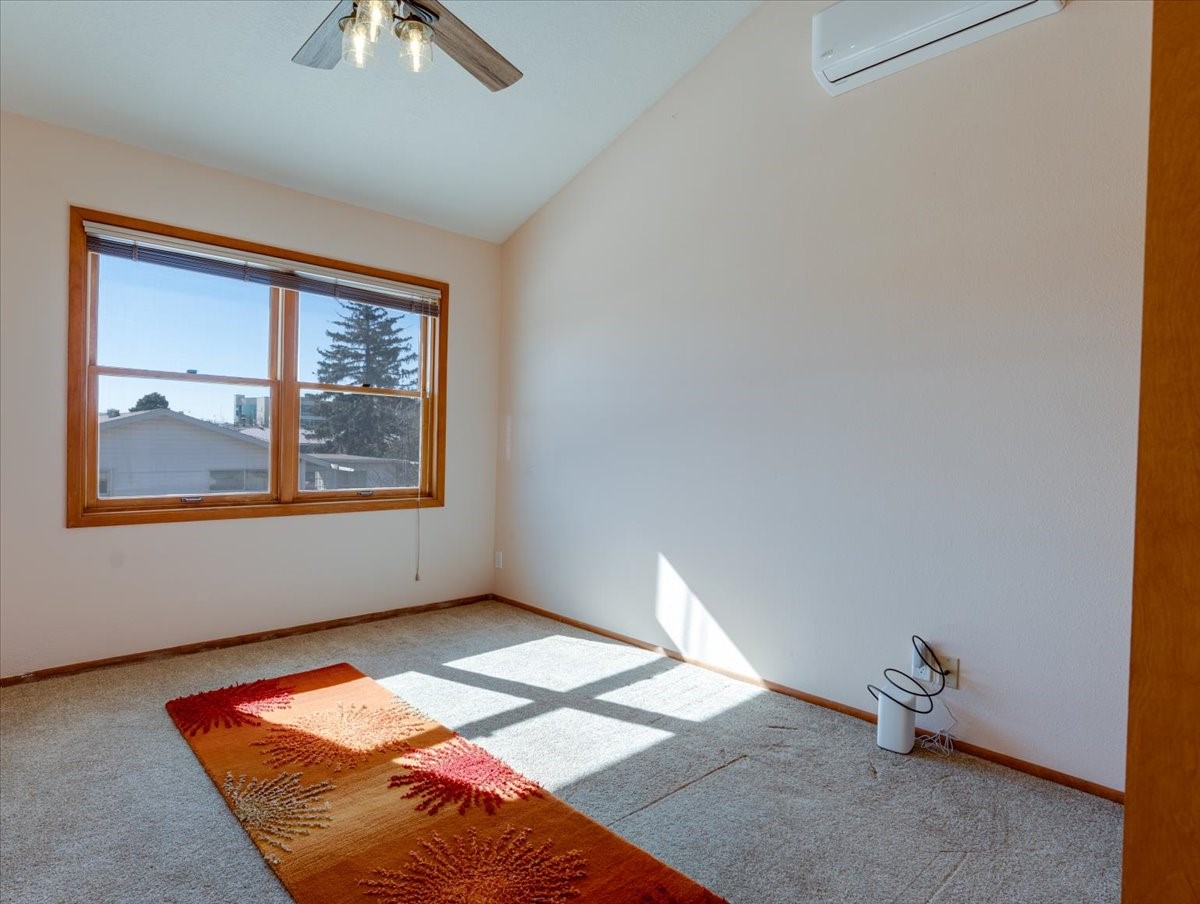 Charming Eastern area home that has been lovingly maintained and thoughtfully upgraded throughout. A beautiful wood front door with stained glass greets you setting the tone for the character found inside. Original hardwood floors lead into a spacious dining area open to the second level, creating a warm and inviting atmosphere. The kitchen sits at the front of the home and features a garden window, eat-in bar, refaced cabinetry (2019), and updated appliances replaced between 2020 and 2022. Laundry room and access to the attached heated garage with 240 volt outlet for EV charging are conveniently located just off the kitchen. The sunken living area offers beautiful windows, brick flooring, and a cozy corner wood-burning stove -- perfect for chilly months. A bright bonus room off the living room with lovely tile work and separate entry makes a perfect office, gym, yoga studio, or playroom. Two generously sized bedrooms on the main level share an updated full bath with solid-surface countertop and tiled tub surround. Upstairs, the primary suite features vaulted ceilings and a full ensuite bath. An additional upstairs bedroom with vaulted ceilings provides flexible space for guests, family, or a home office. The fenced backyard is a pollinator's dream with apple, pear, blue spruce and aspen trees -- plus a charming chicken coop that could easily be converted into a dog run. Major updates provide peace of mind, including a full electrical rewire with EV charging receptacle (November 2019), water heater with recirculating system (November 2019), refinished hardwood floors (November 2019), updated ceiling fans (November 2019), solar panels installed in August 2020, and HVAC. This beautifully updated home offers timeless charm, modern efficiency, and a fantastic location -- truly move-in ready and a must see!