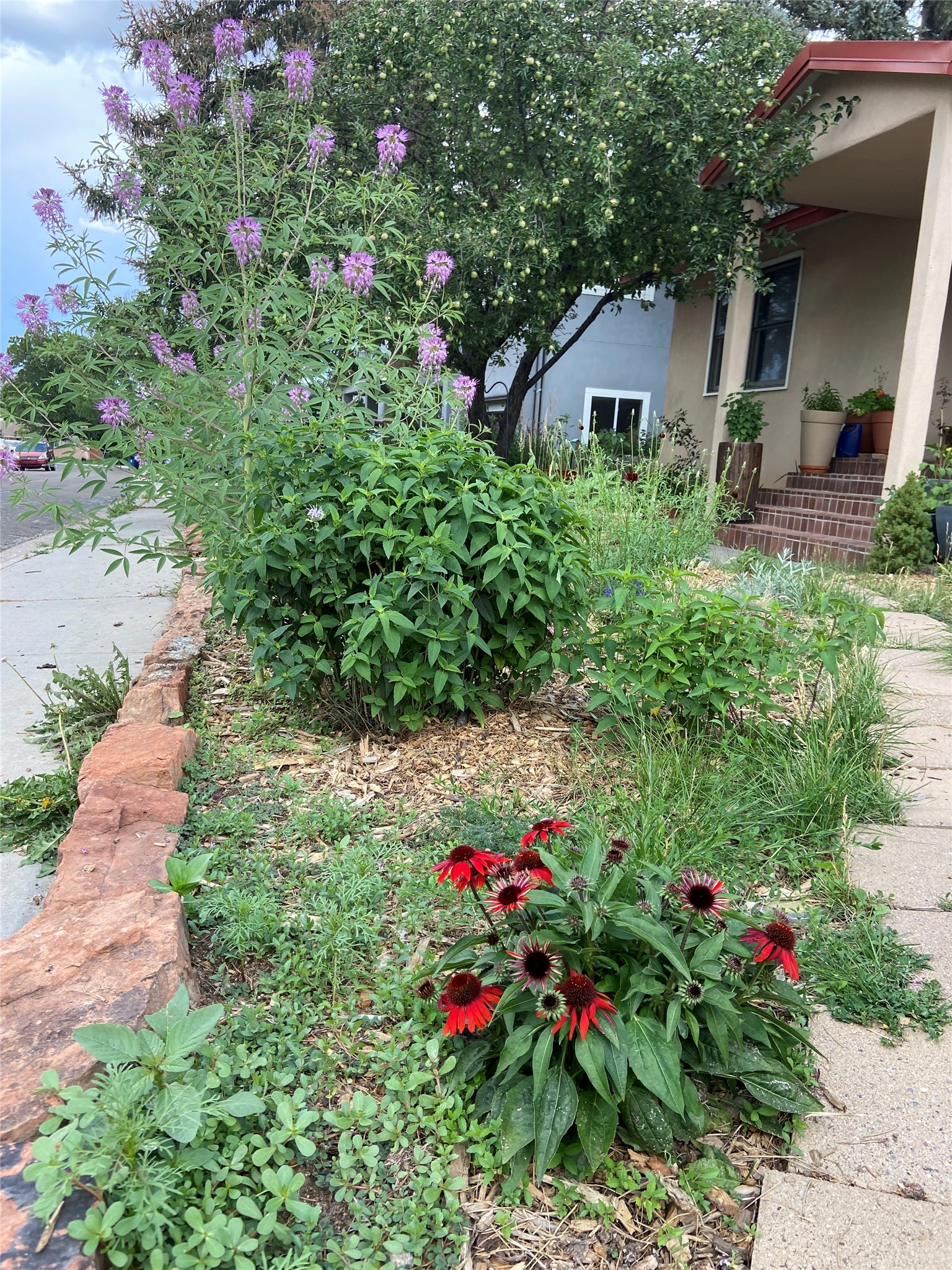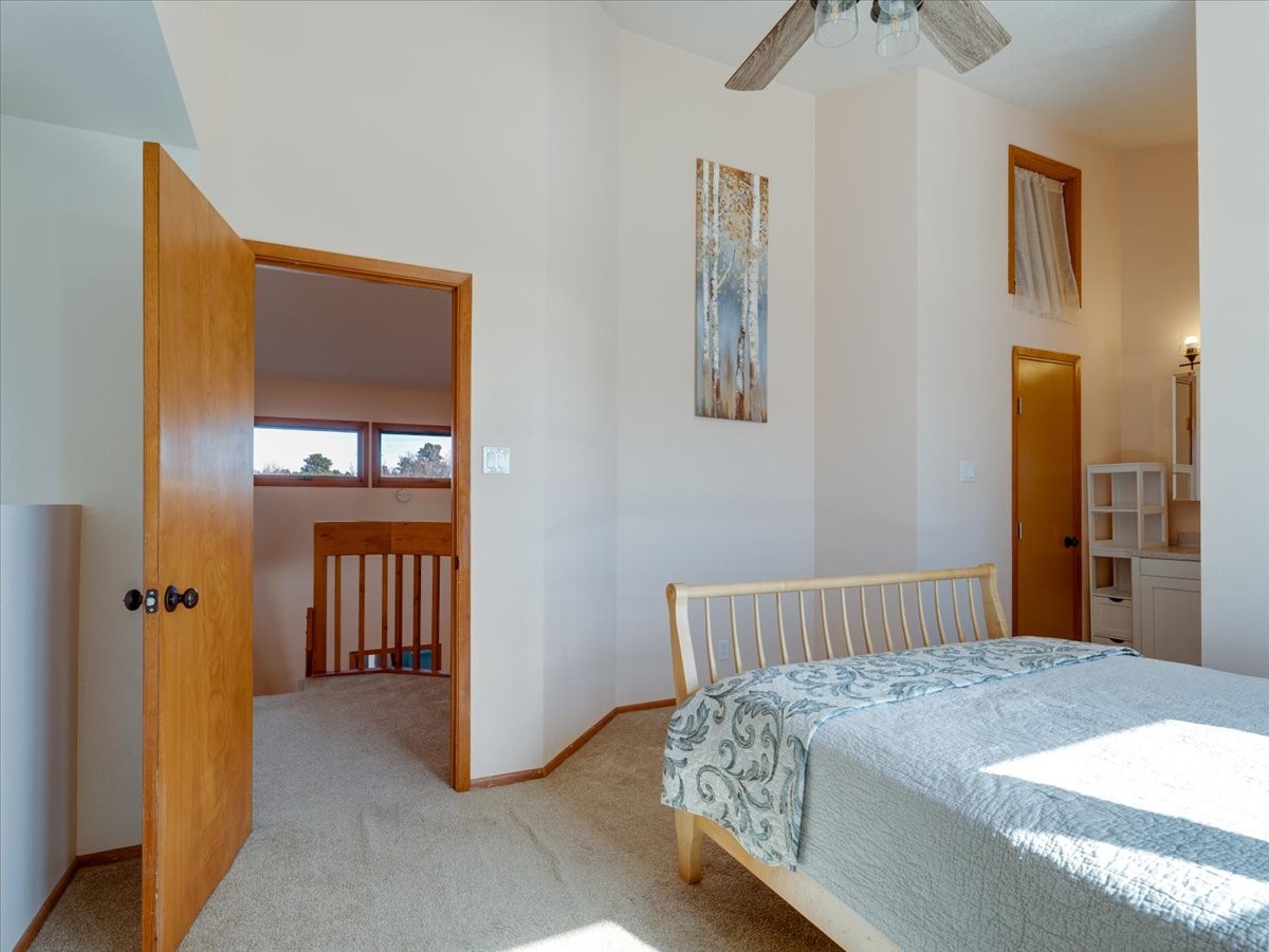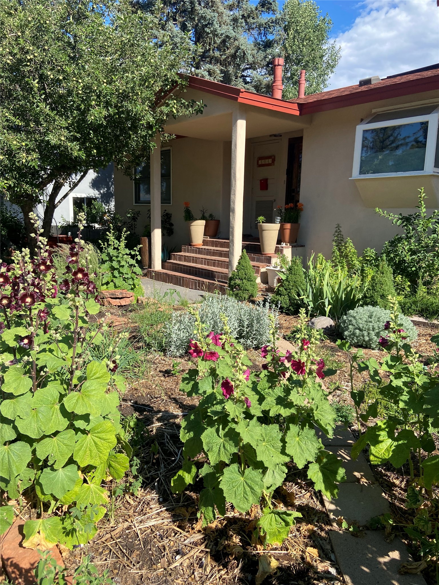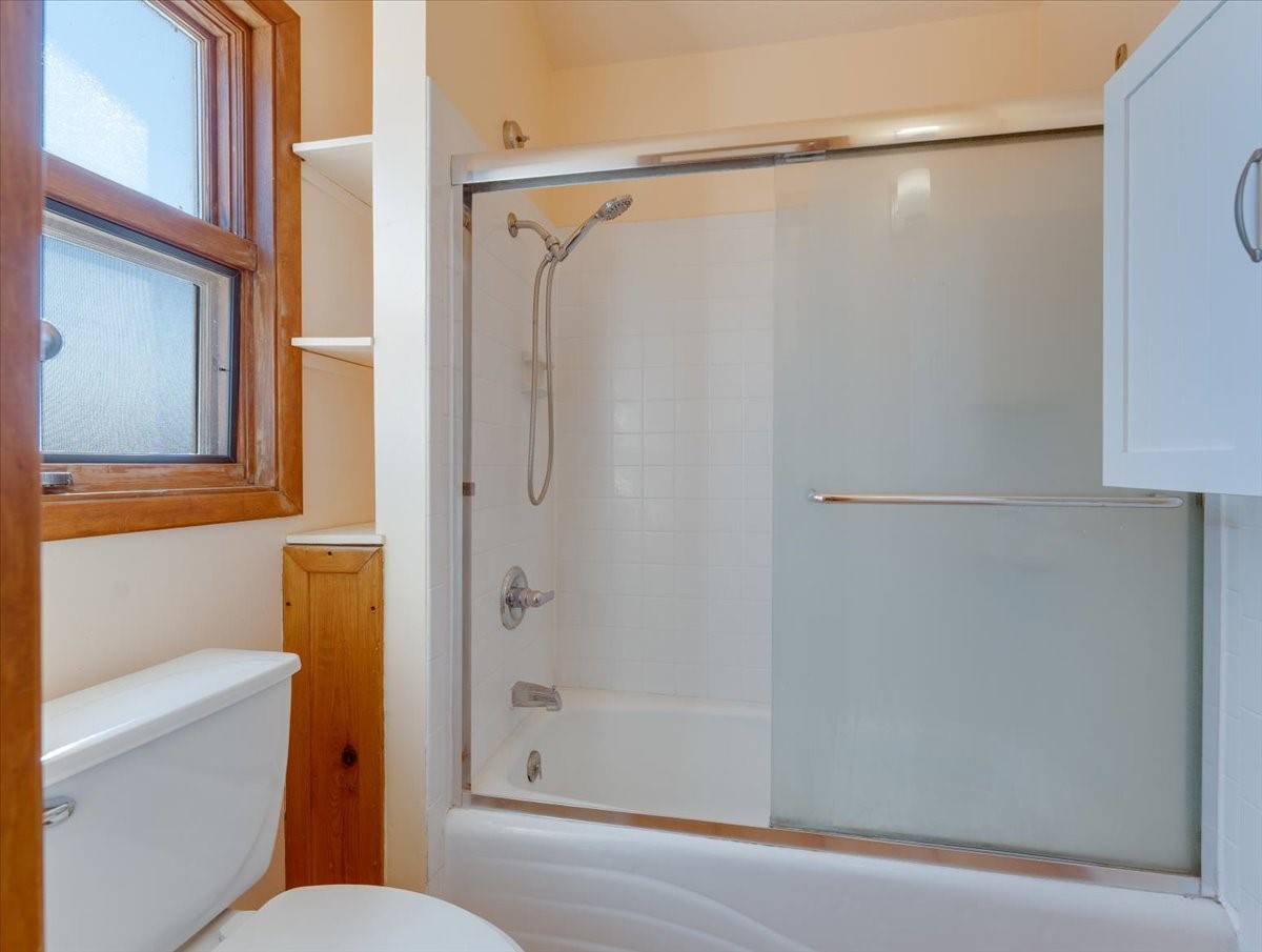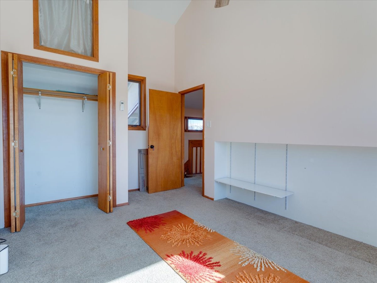 Charming Eastern area home that has been lovingly maintained and thoughtfully upgraded throughout. A beautiful wood front door with stained glass greets you setting the tone for the character found inside. Original hardwood floors lead into a spacious dining area open to the second level, creating a warm and inviting atmosphere. The kitchen sits at the front of the home and features a garden window, eat-in bar, refaced cabinetry (2019), and updated appliances replaced between 2020 and 2022. Laundry room and access to the attached heated garage with 240 volt outlet for EV charging are conveniently located just off the kitchen. The sunken living area offers beautiful windows, brick flooring, and a cozy corner wood-burning stove -- perfect for chilly months. A bright bonus room off the living room with lovely tile work and separate entry makes a perfect office, gym, yoga studio, or playroom. Two generously sized bedrooms on the main level share an updated full bath with solid-surface countertop and tiled tub surround. Upstairs, the primary suite features vaulted ceilings and a full ensuite bath. An additional upstairs bedroom with vaulted ceilings provides flexible space for guests, family, or a home office. The fenced backyard is a pollinator's dream with apple, pear, blue spruce and aspen trees -- plus a charming chicken coop that could easily be converted into a dog run. Major updates provide peace of mind, including a full electrical rewire with EV charging receptacle (November 2019), water heater with recirculating system (November 2019), refinished hardwood floors (November 2019), updated ceiling fans (November 2019), solar panels installed in August 2020, and HVAC. This beautifully updated home offers timeless charm, modern efficiency, and a fantastic location -- truly move-in ready and a must see!